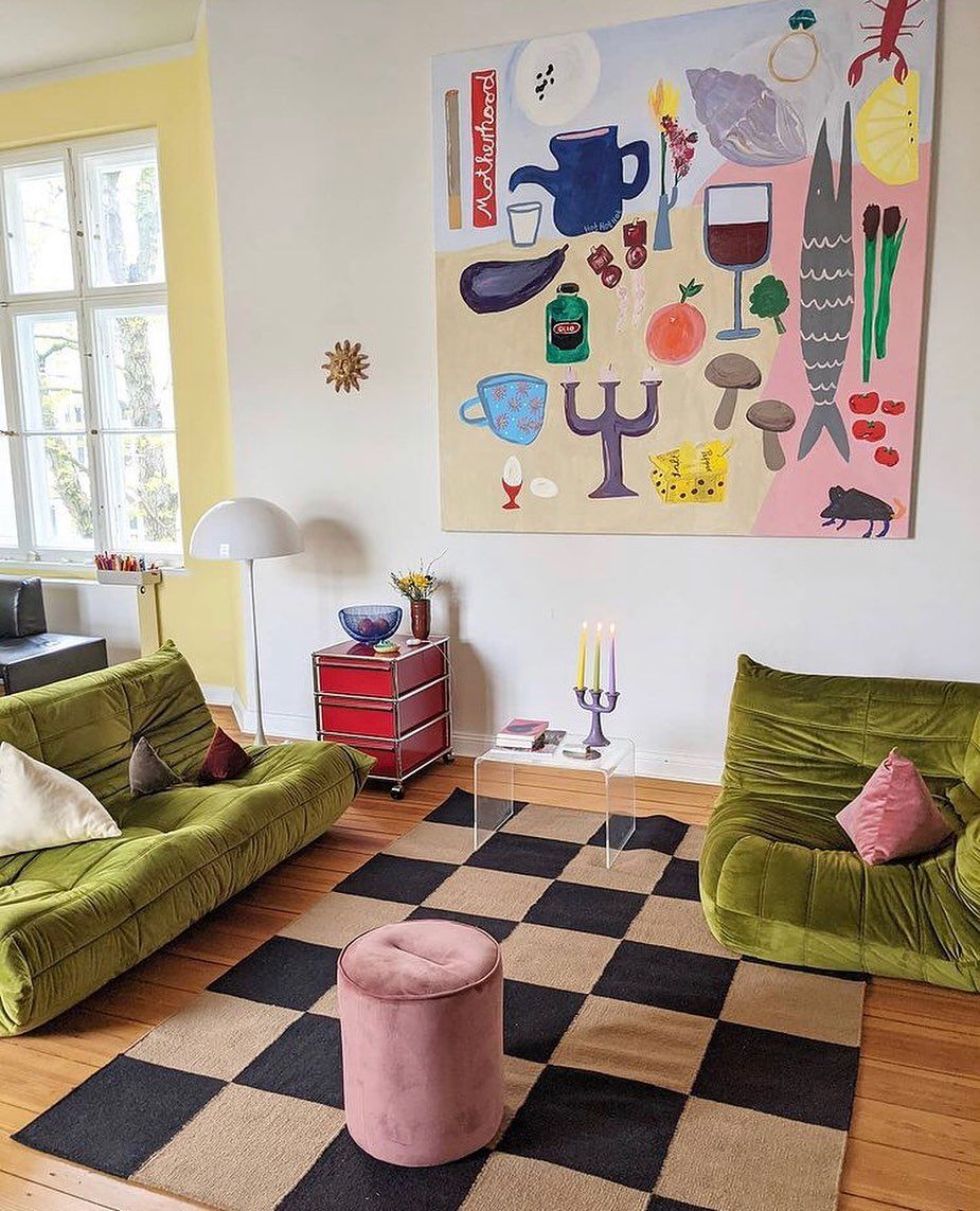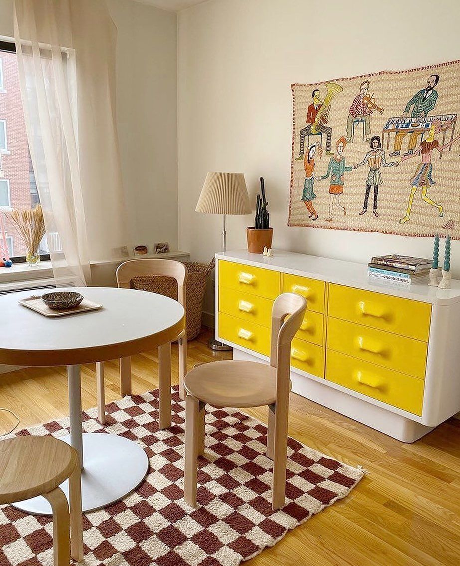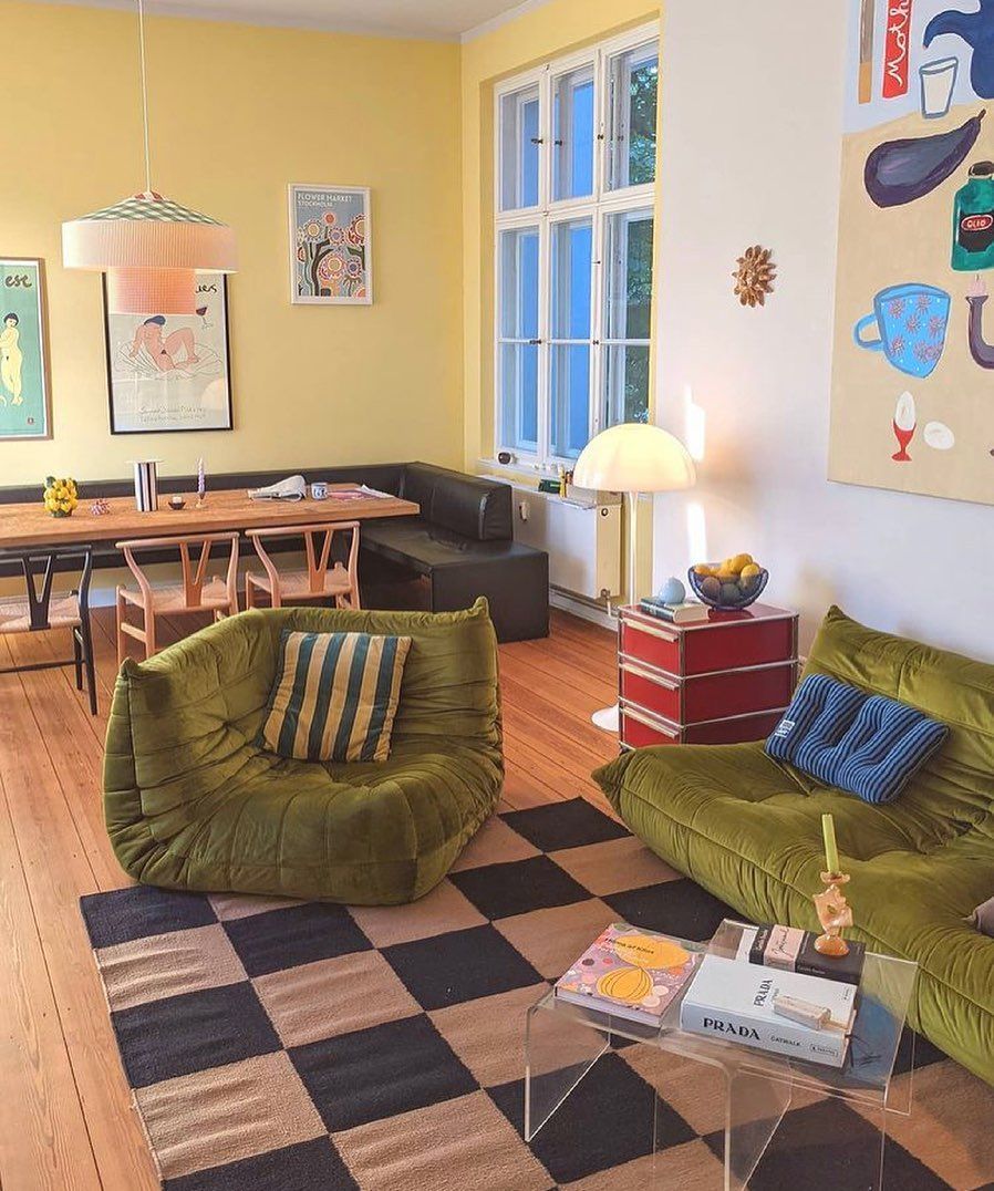 Blame it on cottagecore or on picnic-frenzy, but checked interiors are so back en vogue! Carpets, blankets, pillows but even tables and mini-chairs are decorated in the fun duo-chrome pattern and are able to spice up every possible athmosphere. Get yourself that Brooklyn apartment vibe and thank us later!