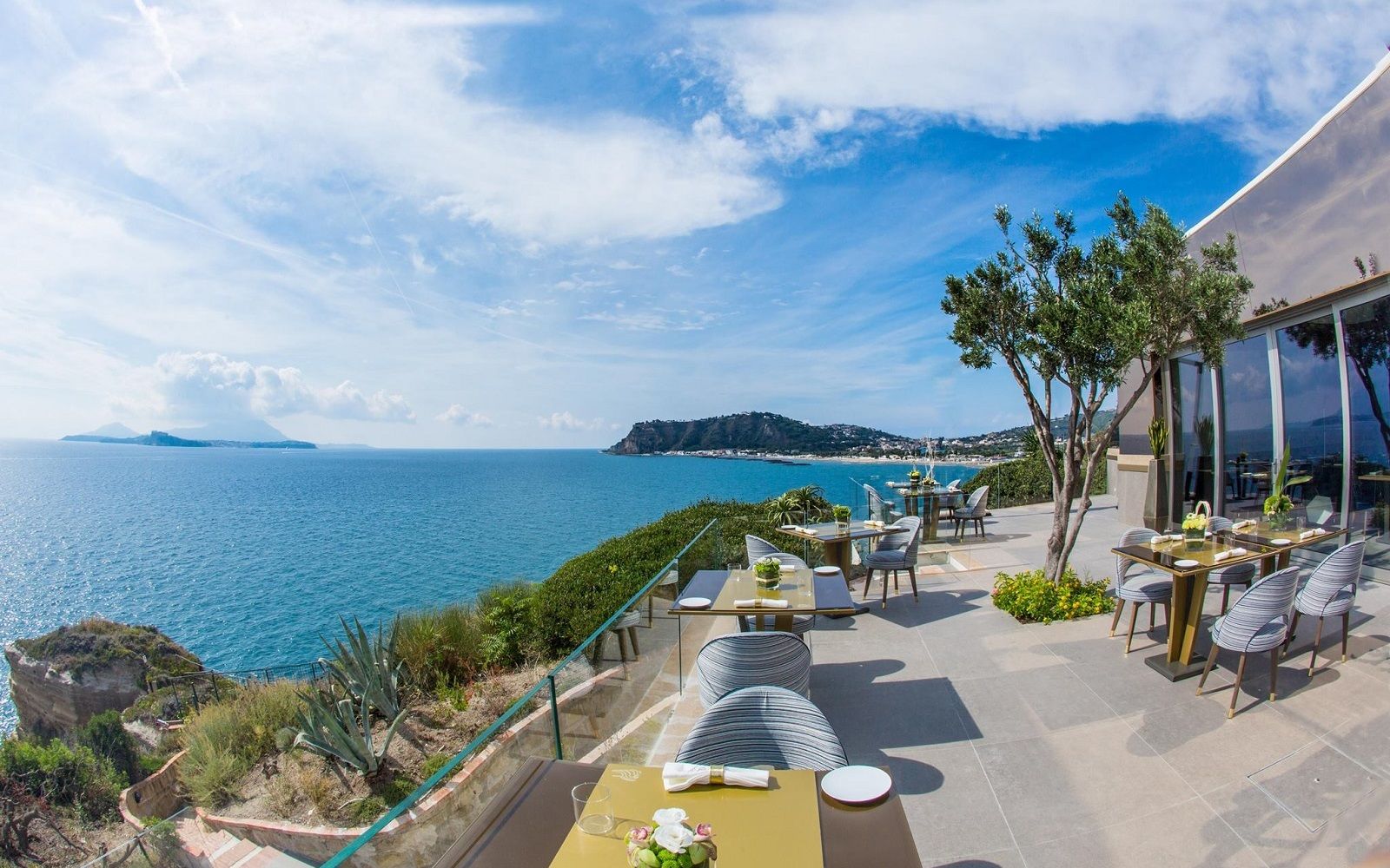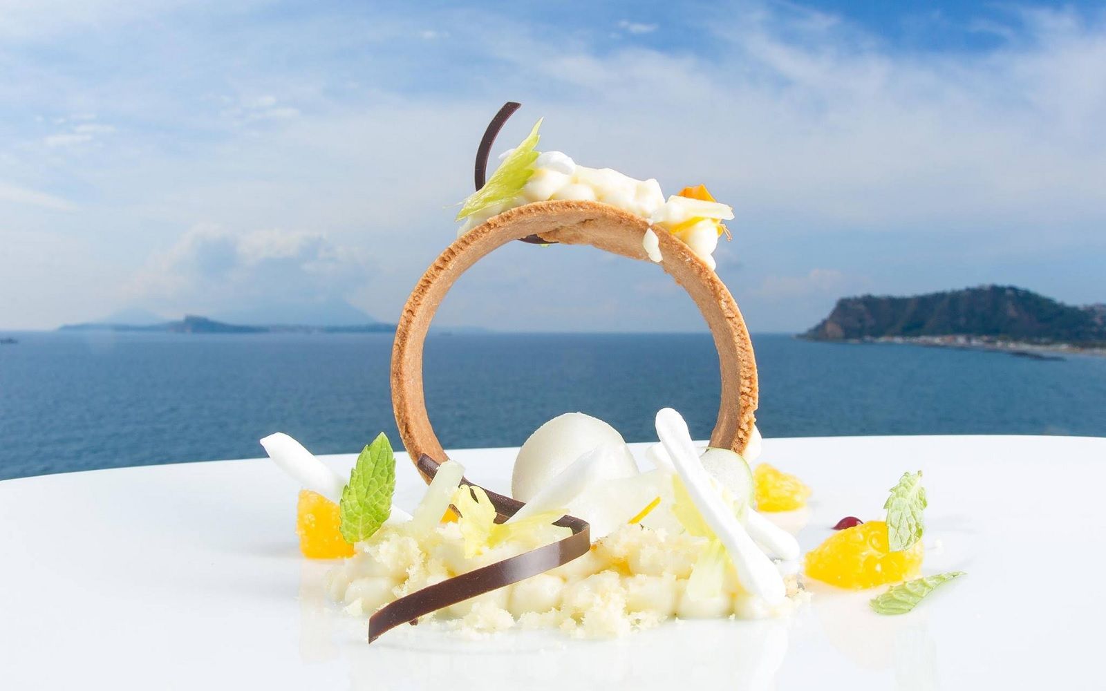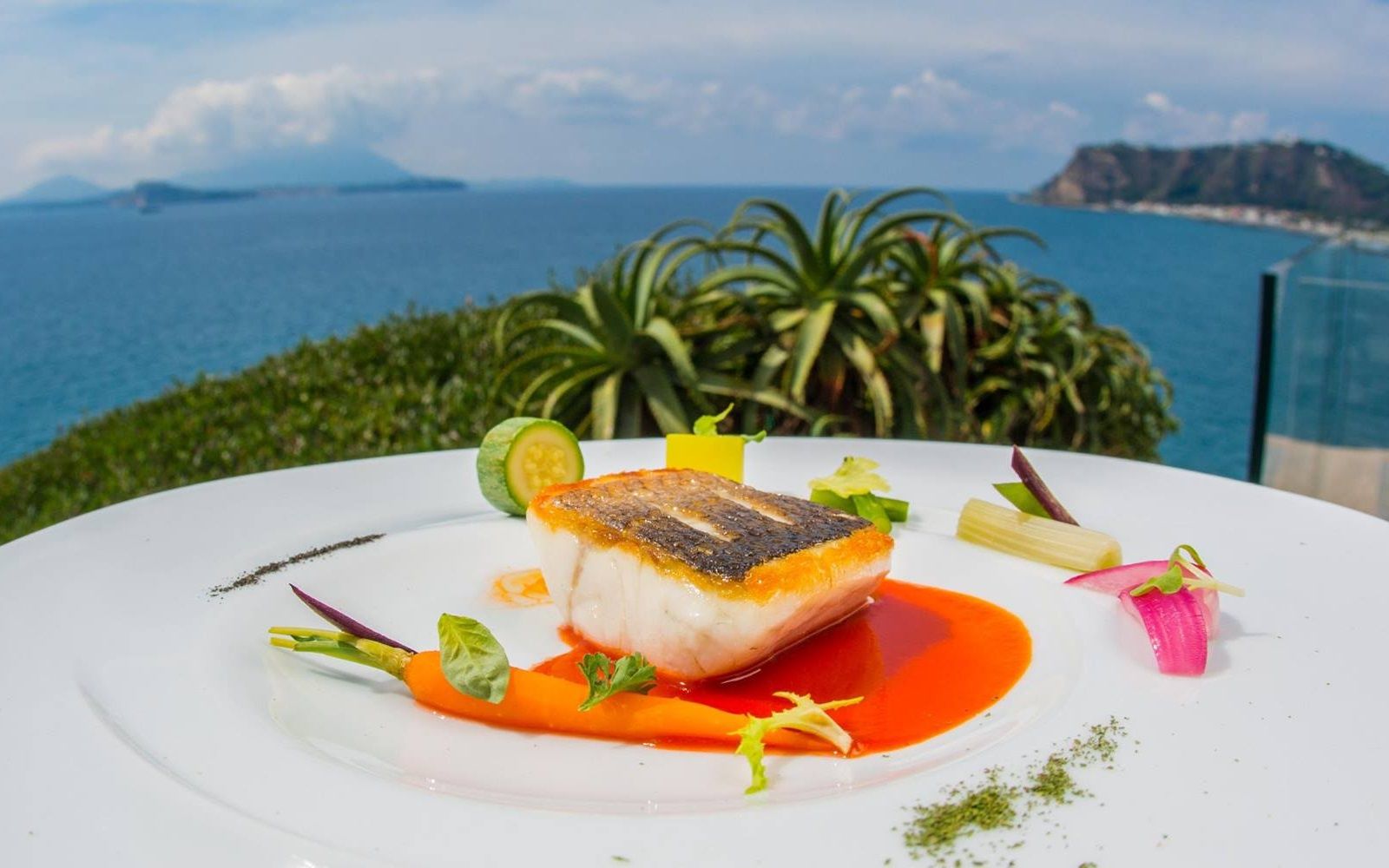 Location: although there is a cozy interior with wooden walls, blue velvet armchairs and a skylight recalling the spiral shape of the Caracol shell, the real highlight of this one Michelin star restaurant is the panoramic terrace. Just take a look at the pictures to dream of spending a romantic evening on this slice of land that almost unites sky and sea and offers a breathtaking view of Ischia and Procida. So what could be more beautiful than tasting good food in the moonlight, lulled by the sound of the waves breaking on the rocks?