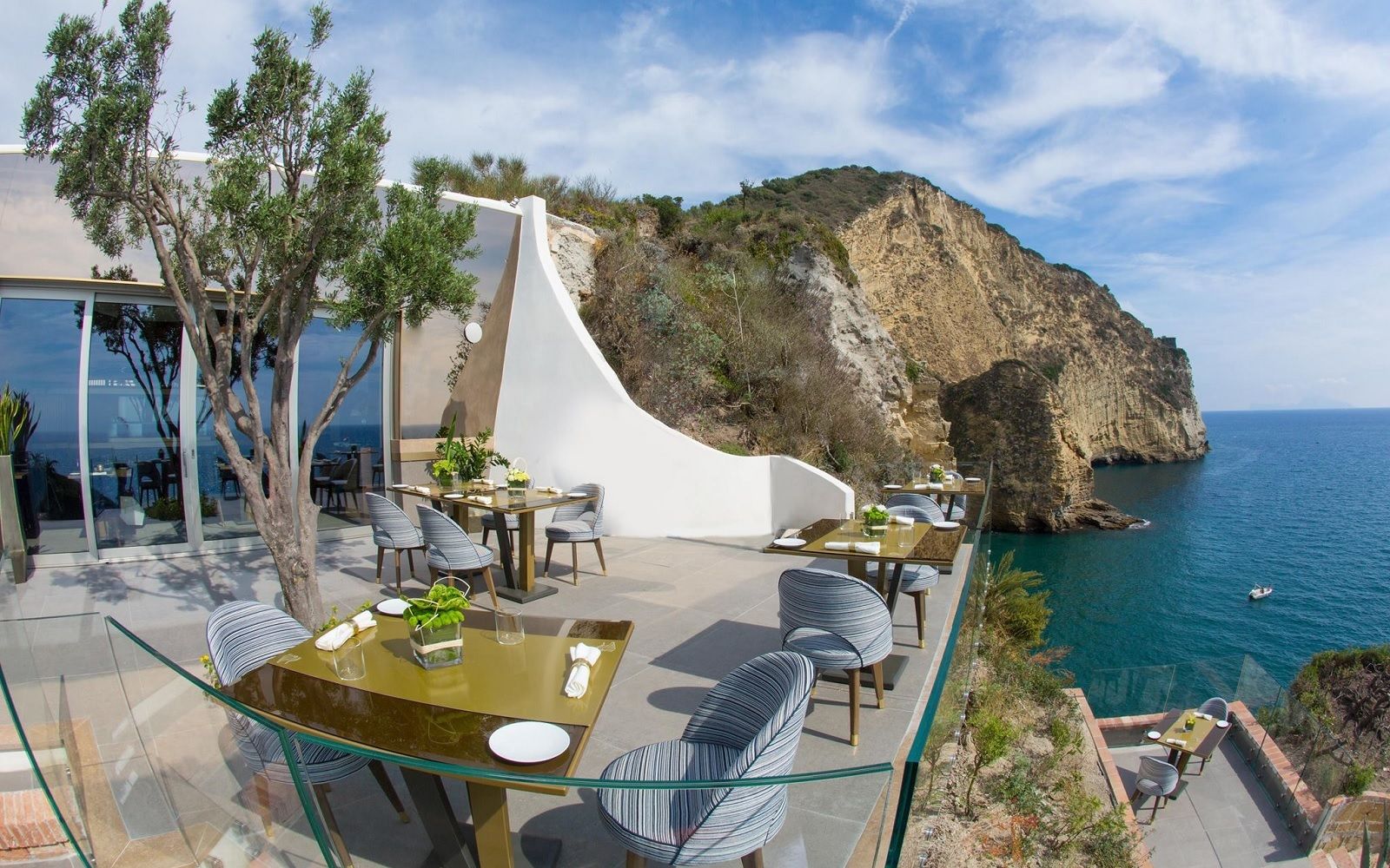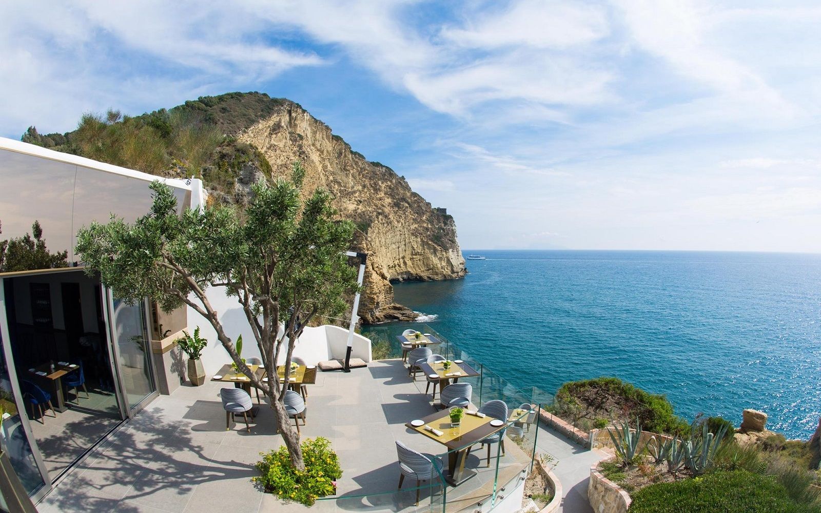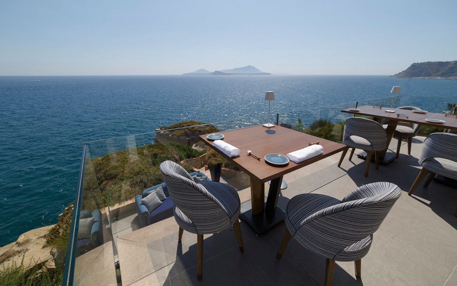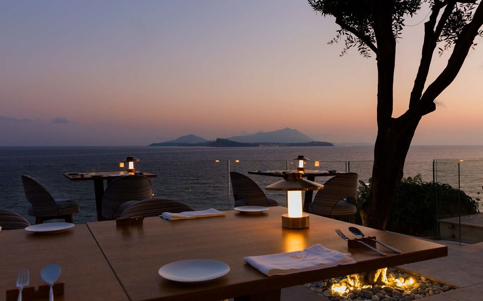 Location: although there is a cozy interior with wooden walls, blue velvet armchairs and a skylight recalling the spiral shape of the Caracol shell, the real highlight of this one Michelin star restaurant is the panoramic terrace. Just take a look at the pictures to dream of spending a romantic evening on this slice of land that almost unites sky and sea and offers a breathtaking view of Ischia and Procida. So what could be more beautiful than tasting good food in the moonlight, lulled by the sound of the waves breaking on the rocks?