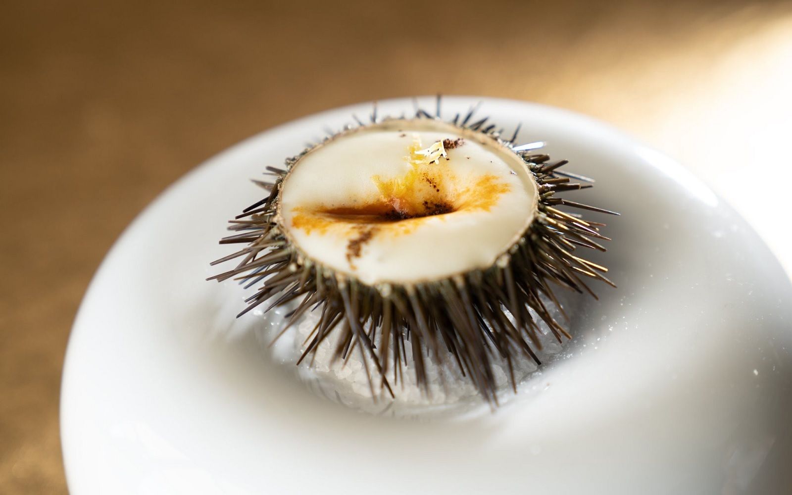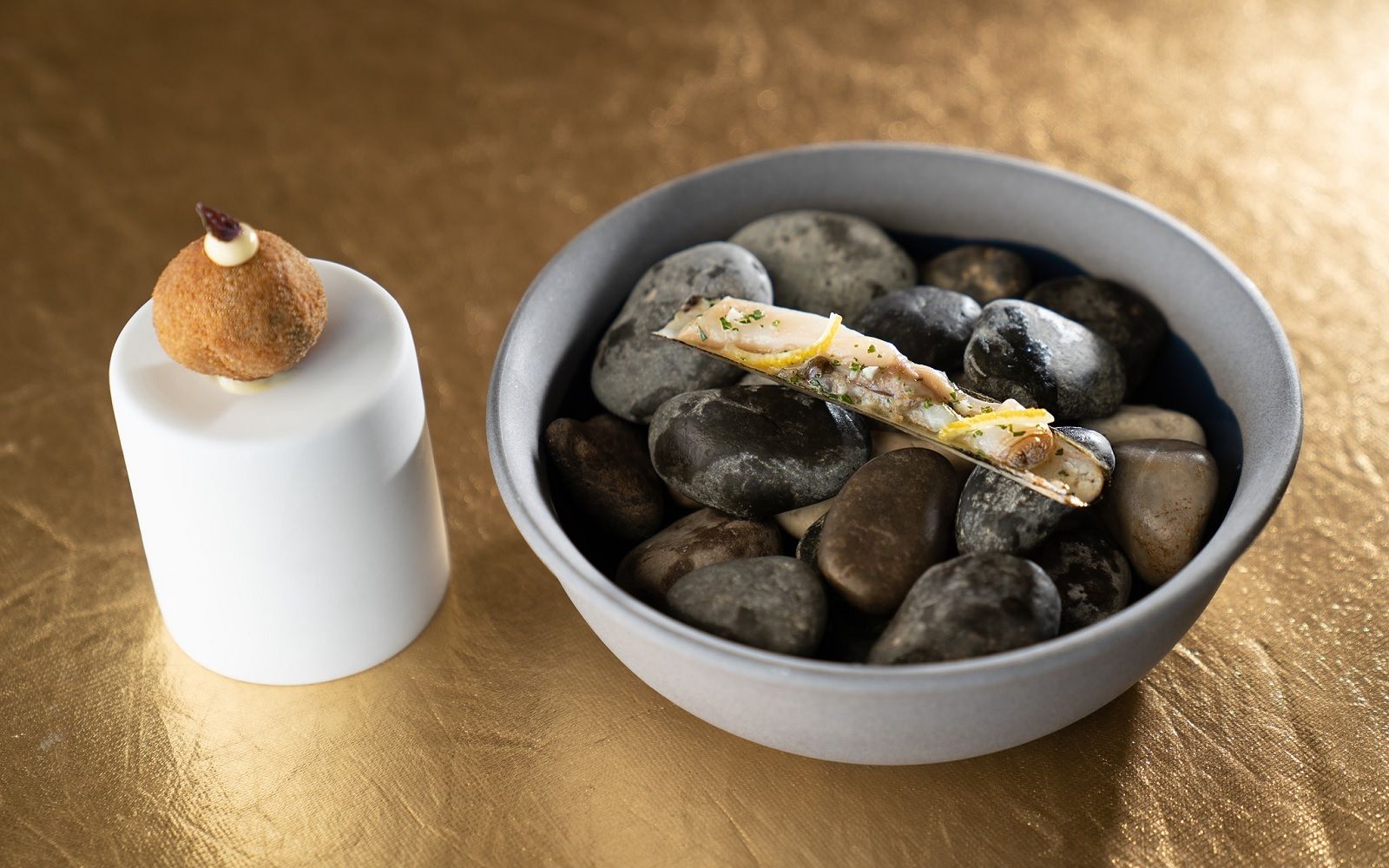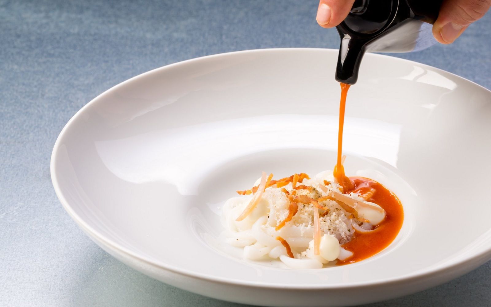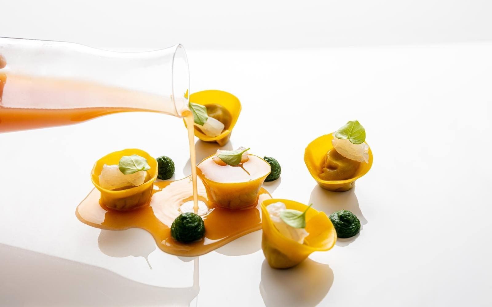 Food: Spaghetto iodato; Scampi with almond milk; Caracolato