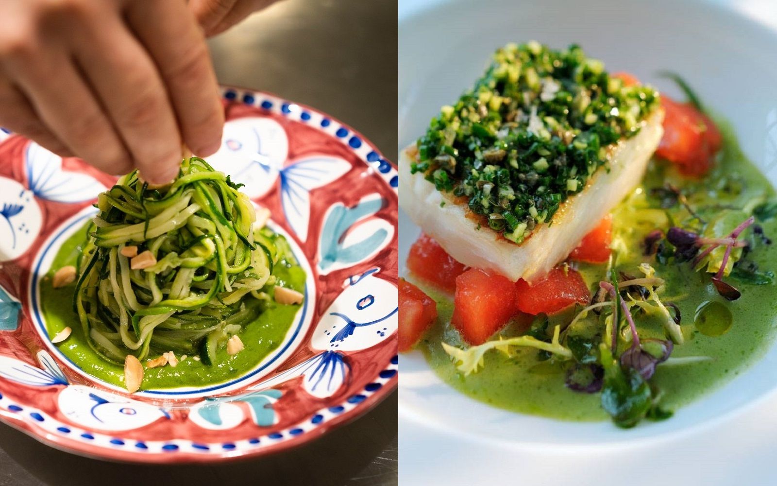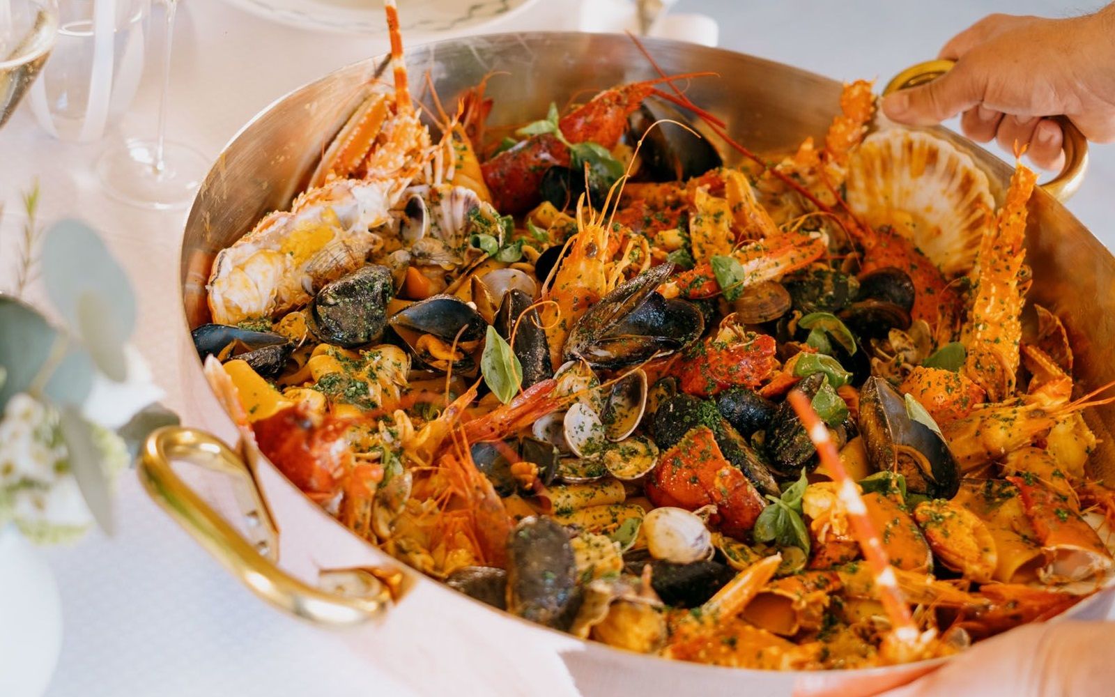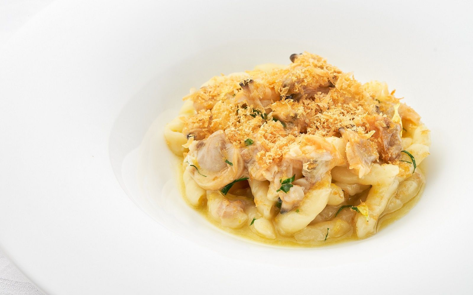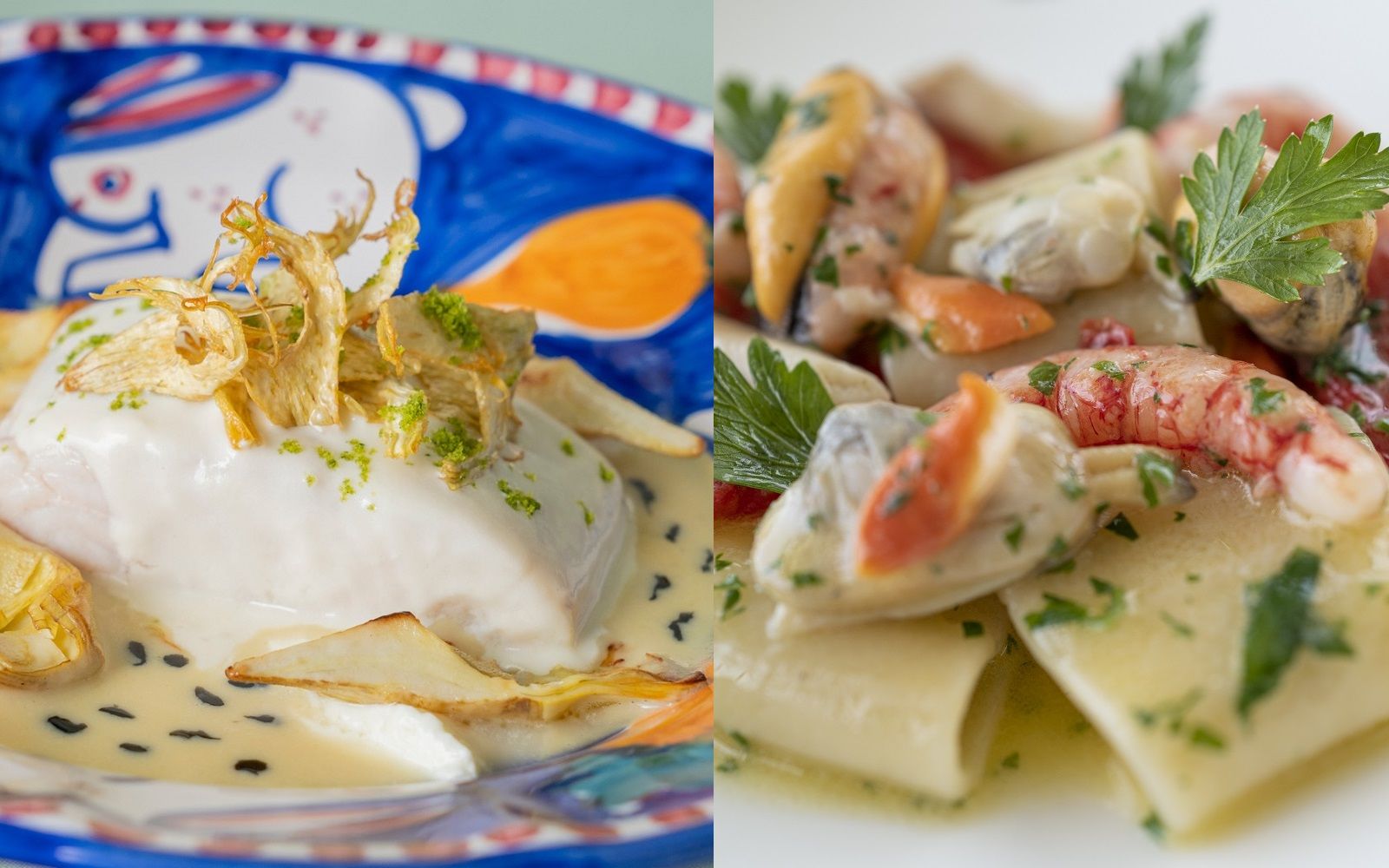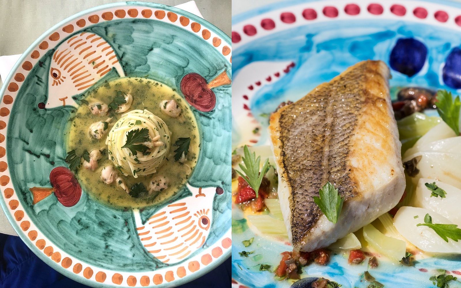 Food: Paccheri alla Vittorio; Ricciola spaghetti with anchovy cream from Monterosso: Crustacean Bouquet