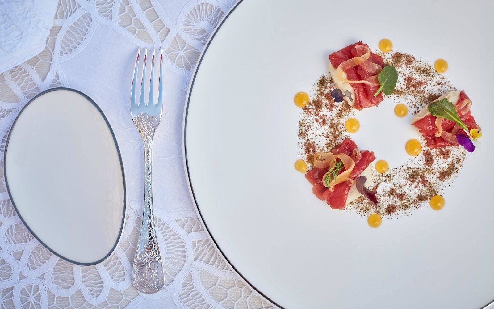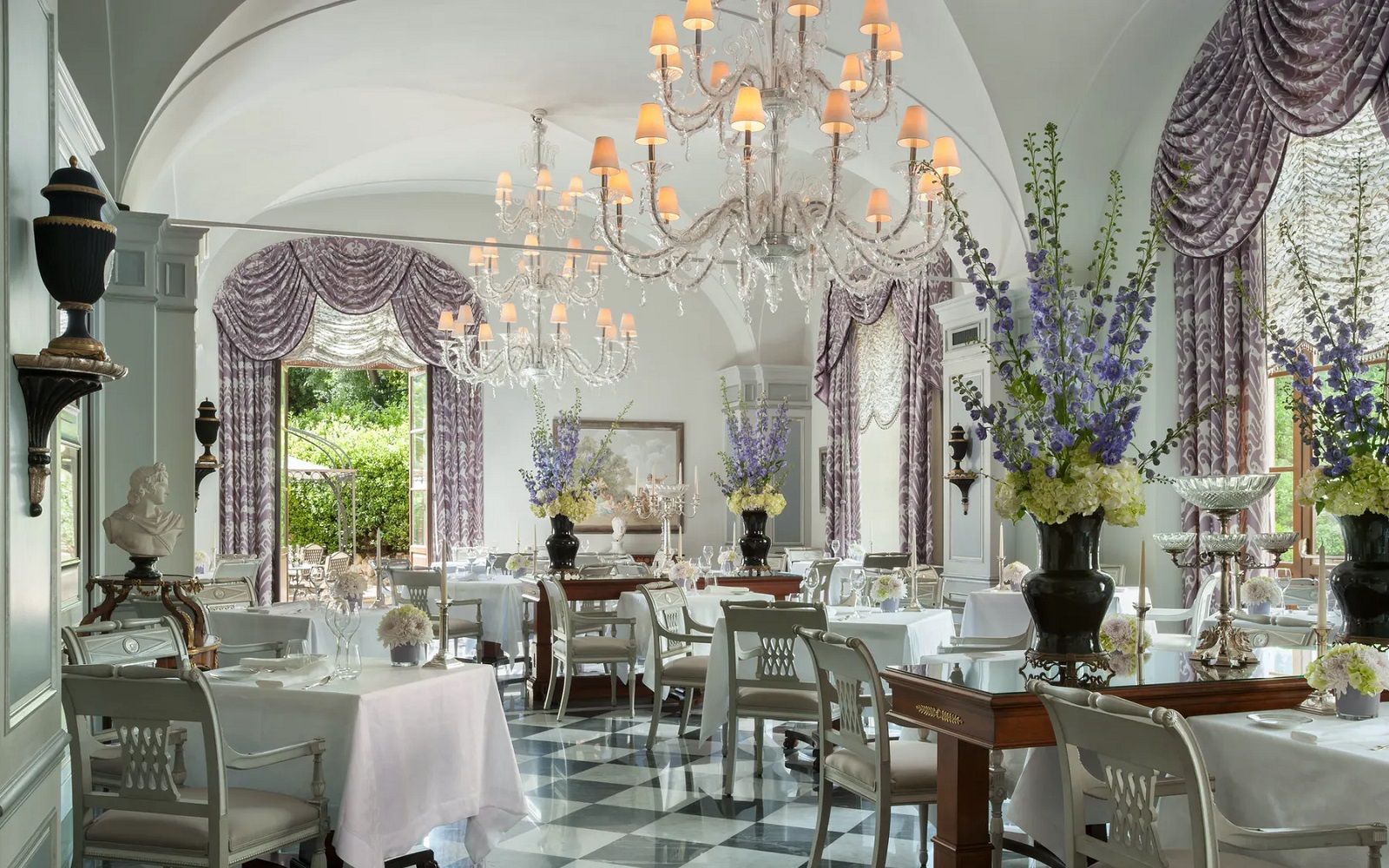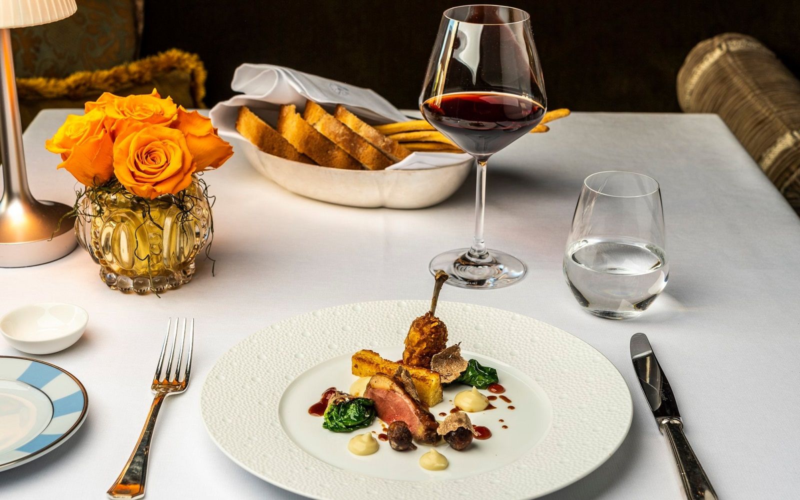 Location: on the ground floor of the Palazzo della Gherardesca which houses the Four Seasons Hotel in Florence there is the one Michelin star restaurant Il Palagio. The location is very chic. Outside you can eat on the terrace overlooking the large private park, among century-old trees, gazebos and fountains; while inside the neoclassical rooms are furnished with marble busts, flowers blooming everywhere and lilac-colored details. The plus? Il Palagio organizes different types of secret dinners off and on-site: from the exclusive romantic table on the rooftop terrace of the hotel, where you can share one of the chef's specialties with your partner by candlelight to the majestic foliage of a Pendulo Beech tree dating back to 1850 while a pianist plays the perfect soundtrack to make the evening even more special; from the private chapel, entirely decorated with frescoes from the 1400s, to the unique private terrace on the Ponte Vecchio, with a breathtaking view of the Arno.