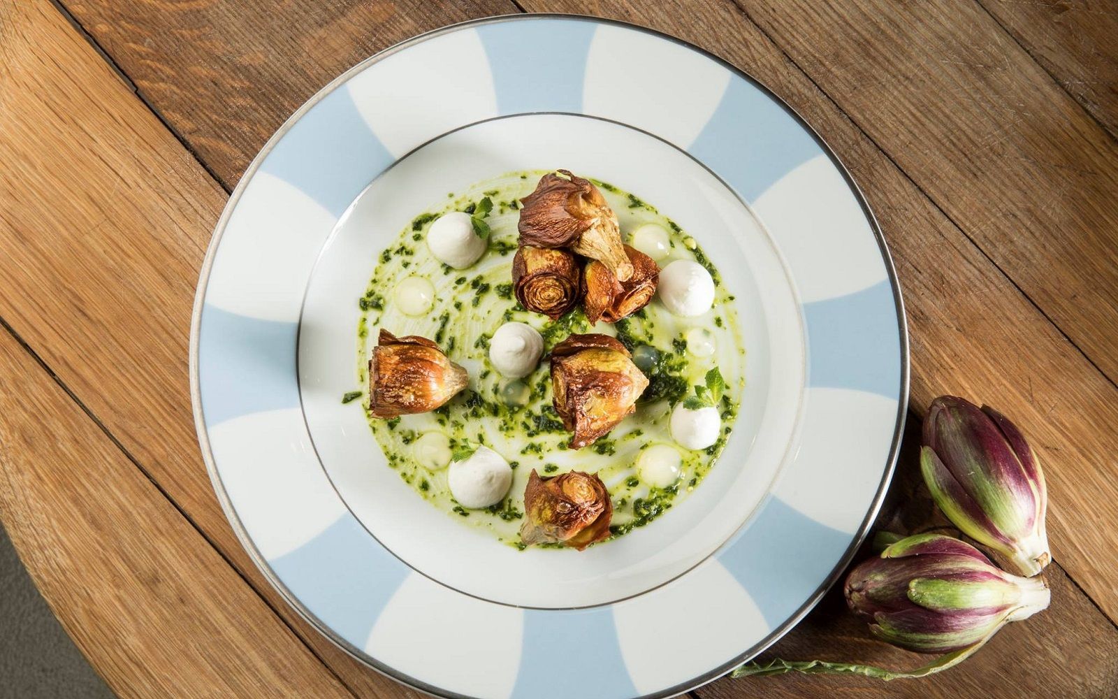 Food: Linguine di Gragnano with clams and lemon zucchini pesto; Octopus from Roccia confit and artichokes barigoule style; Citrus meringue, lemon crumble and grapefruit sorbet