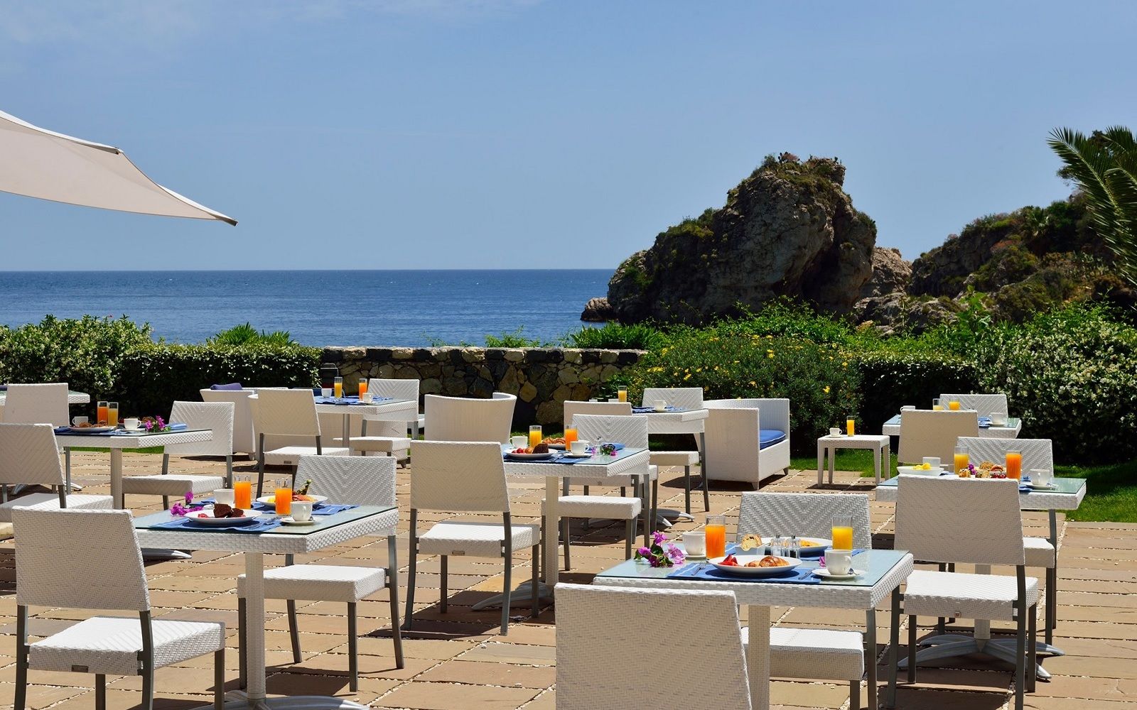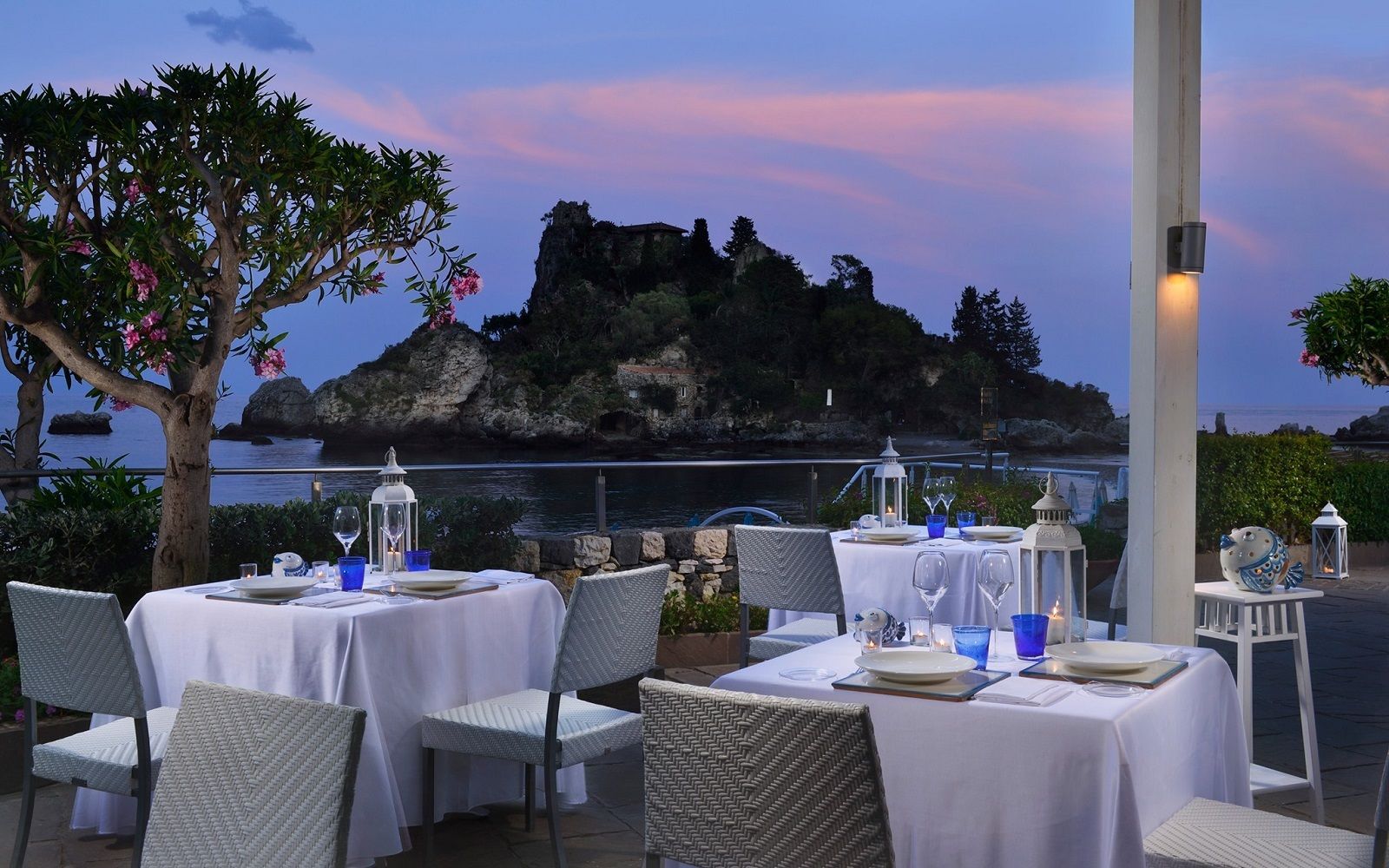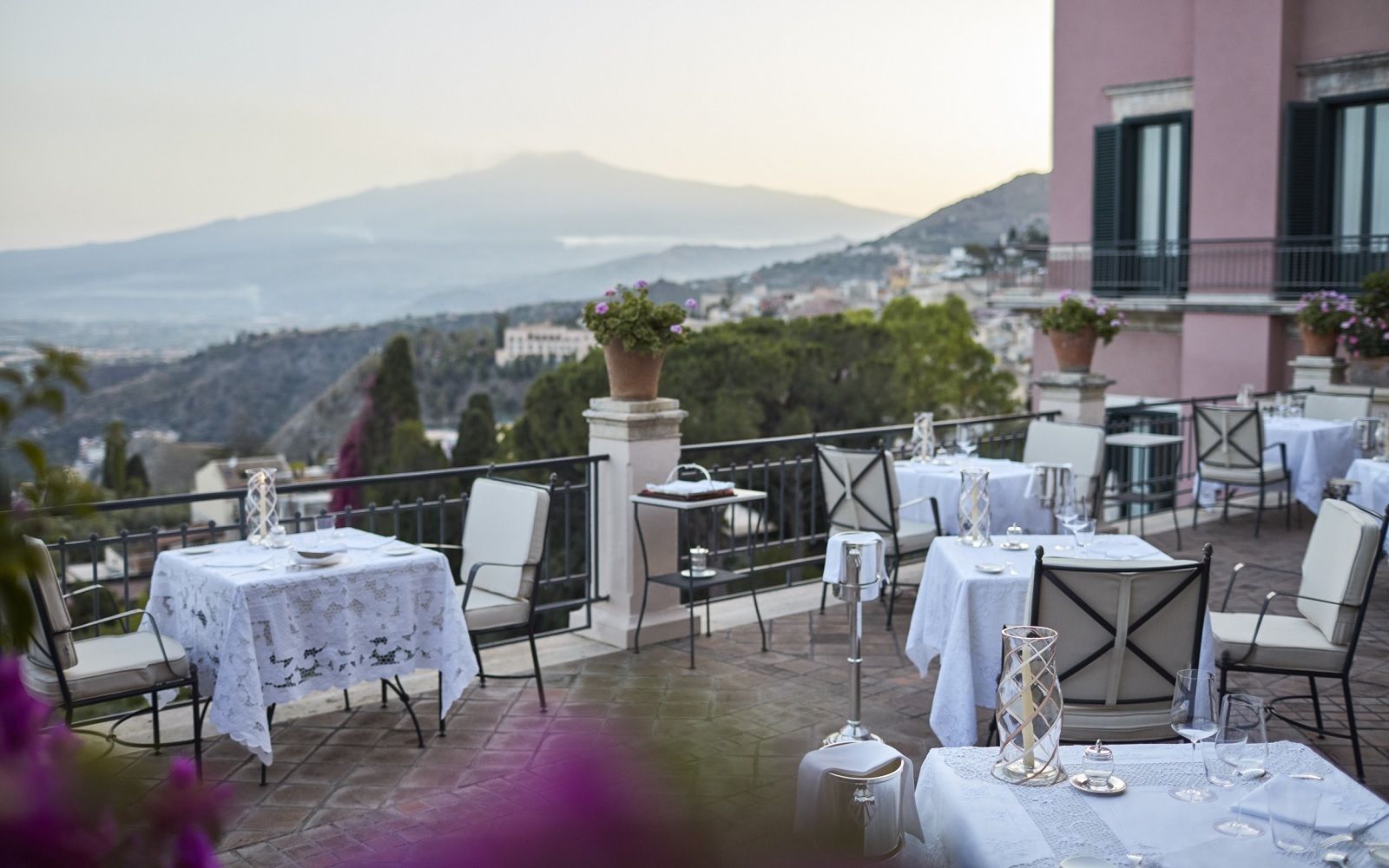Location: only eight tables arranged on a terrace full of bougainvillea overlooking the bay of Naxos and Mount Etna. The Otto Geleng restaurant with its romantic, Mediterranean and old-fashioned mood is part of the Grand Hotel Timeo.