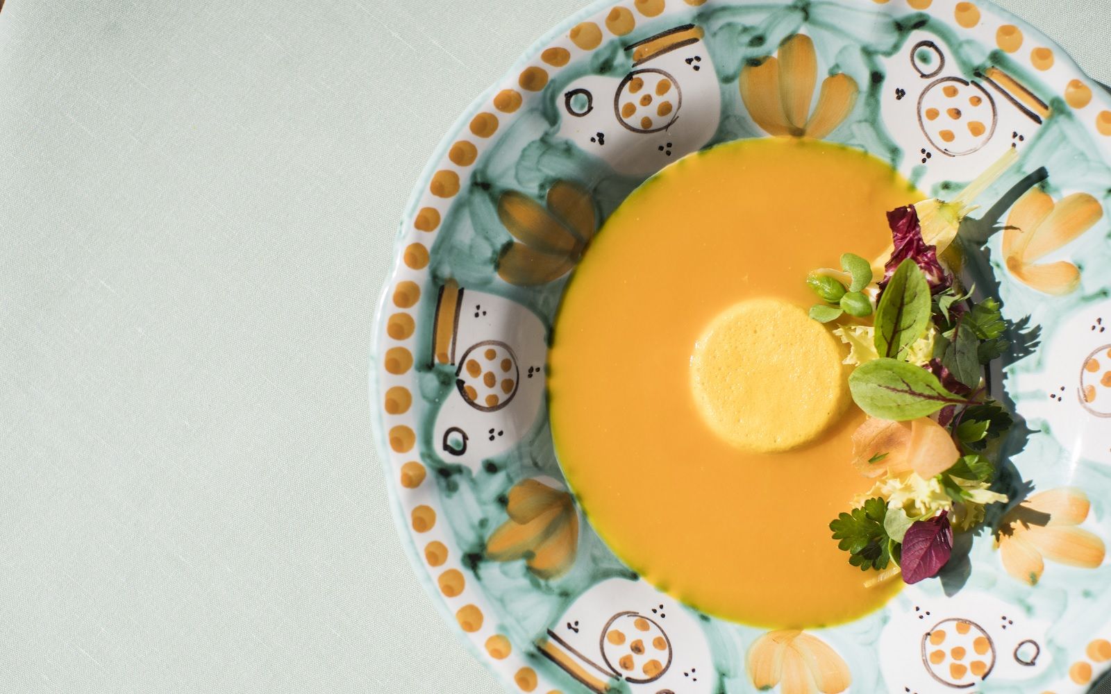 Food: Crab with mint, coriander and its soup; Hemingway-style risotto; Turbot on the bone on a shellfish stew