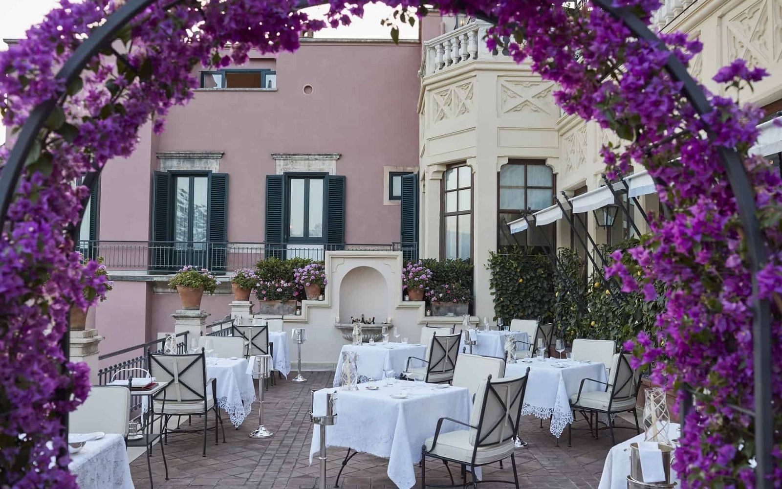 Location: the restaurant of The Corner Townhouse Hotel with its elegant winter garden, made of lush plants, gazebo and colorful chairs, reveals itself to visitors as a well-kept secret in the heart of Rome and is perfect for an aperitif or a romantic dinner for two.