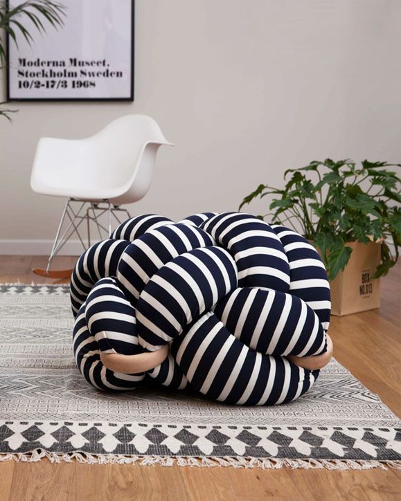 Lately, large and soft knot-shaped cushions have been a trend on social media: fun and super colorful, these pillows have become modern pop-art style design items. The idea comes from the Icelandic designer Ragnheiður Ösp Sigurðardóttir, a scout girl knots passionate, who back in 2011 presented her Knot Pillow during the Stockholm design week; but only this year they have become a must-have for the upcoming fall/winter season. The Danish studio of designer Neta Tesler also proposed them, creating some knotted cushions on stools with Scandinavian wooden legs. The thing that makes them unique is that, at first glance, they don't look like pillows at all, on the contrary they look more like twisted balls; so strange and unusual that we decided to replicate them.
