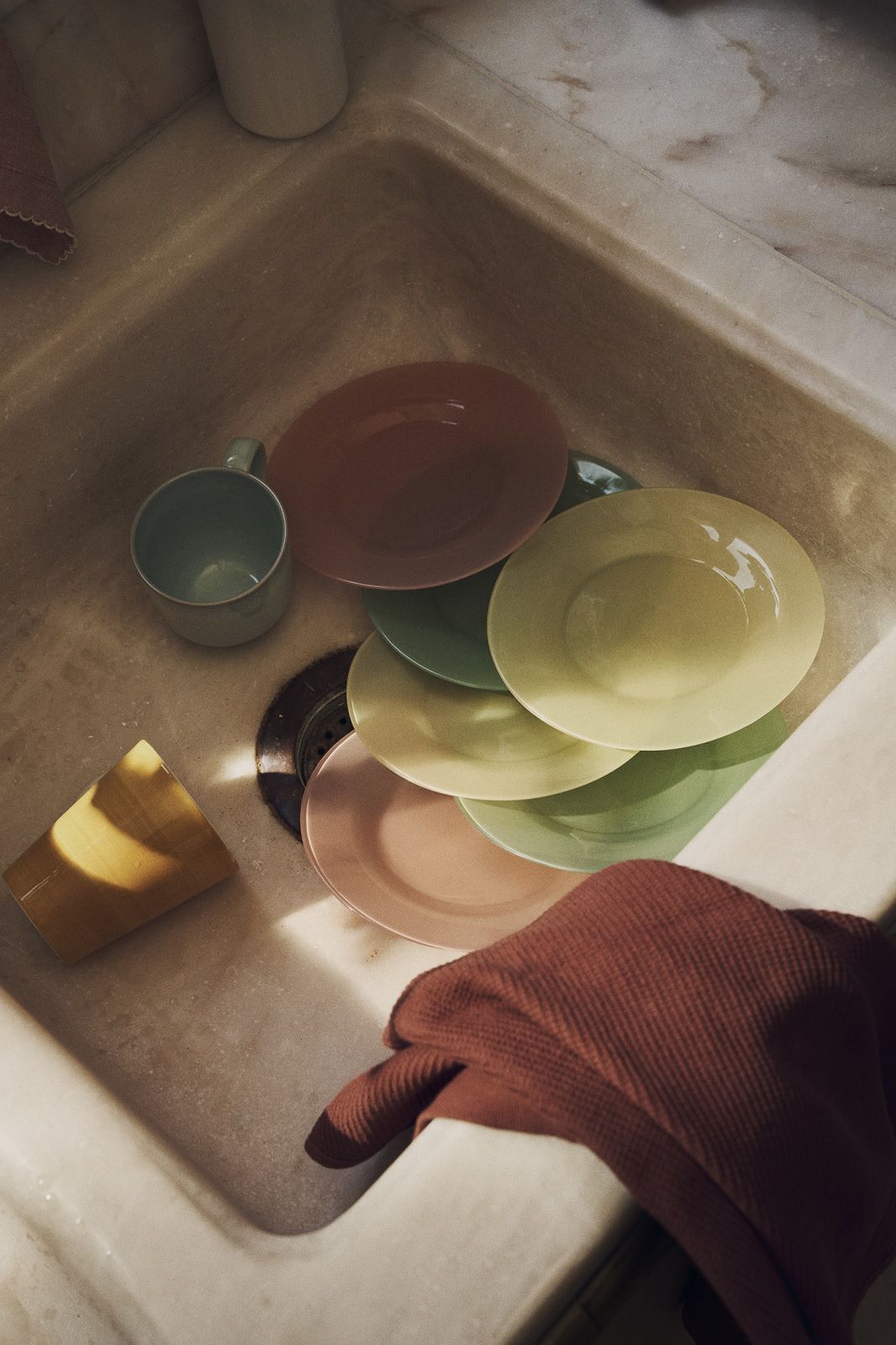 The other star beside the coolest of American actresses is the beautiful Casa de Serralves, a masterpiece by architect José Marques da Silva located in Porto, Portugal, and decorated with Zara Home's fall-winter 2021 items. Elegant, minimalist, the new items have raw looks and textures, neutral and earthy nuances, perfect for adapting to different environments and styles: from a rough stone pitcher to white or multicolor ceramic plates, from linens in shades of gray to the round mirror, from crystal glasses to the Scandinavian-style armchair, ending with mushroom-shaped lamps and vases.