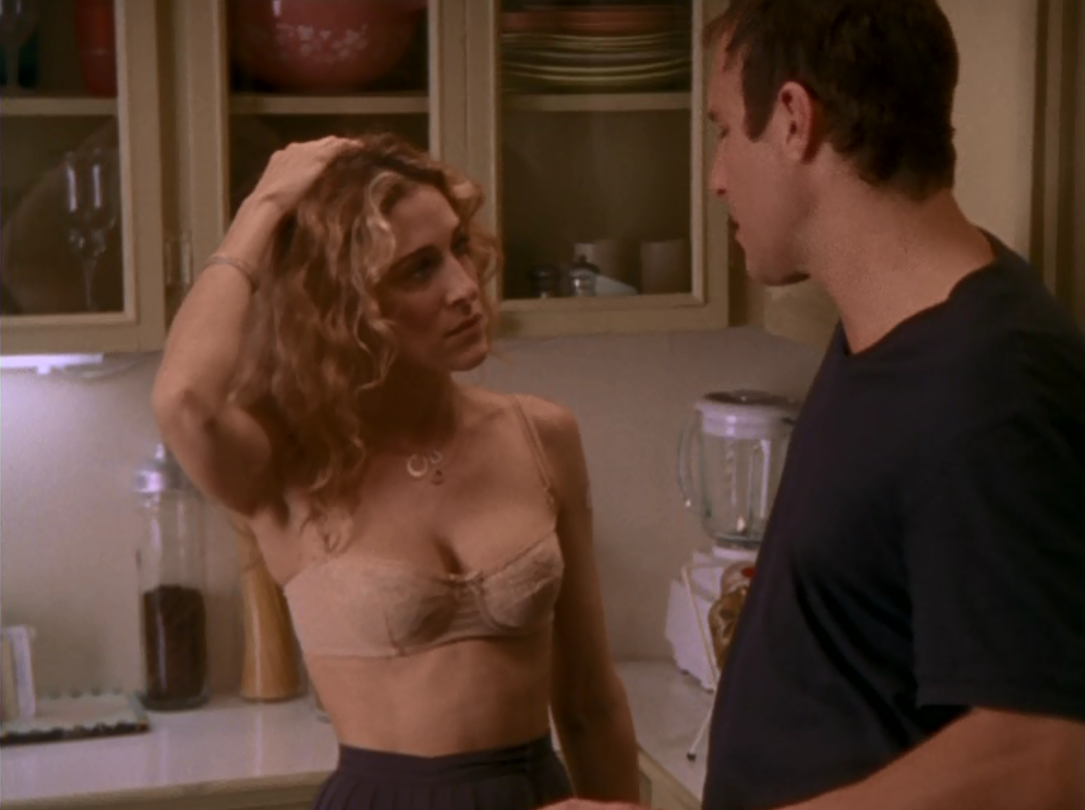 Carrie loves to give, from time to time, a change of look to her apartment: it happened for the walls, first egg-shell color and then sky blue, and it happened also for the arrangement of the paintings in the first movie after the TV series. That said, however, in some scenes it seems that even the walls have been demolished. Small details make it clear, like the headboard of the bed that moves, and pictures that are not always in the same position.