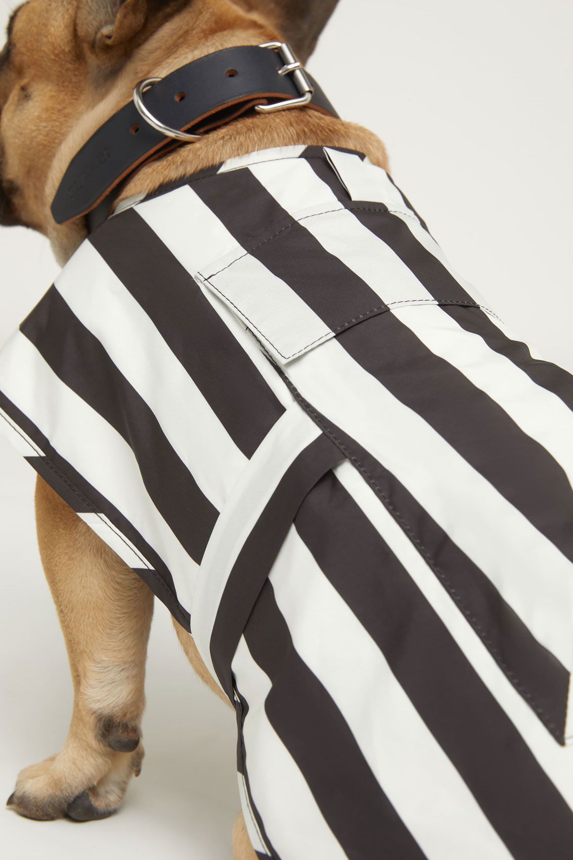 There is nothing cuter than a dog in a striped trench, if not his owner in a matching outfit with the logo and the aesthetic codes of the same brand well in sight. The collection in fact brings the minimal but avant-garde aesthetics of Sunnei on trench coats, t-shirts and sweatshirts for dogs in different sizes, striped and in different colorways. There is also the logo of the brand, printed on the knitwear for dogs and imprinted on leather elements such as leashes and collars to make the collection a treat and be given away to make each walk a catwalk in which to show style and attitude.