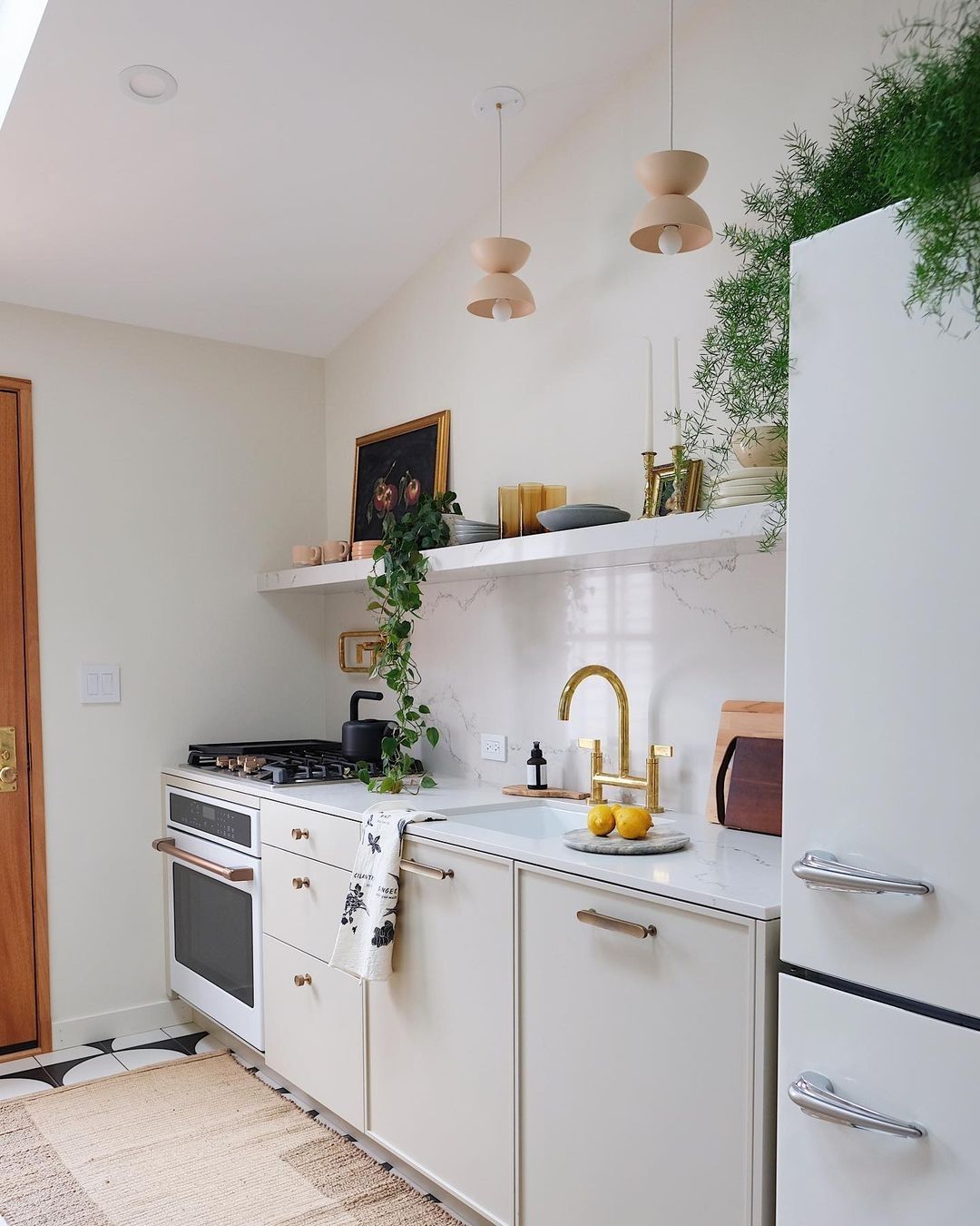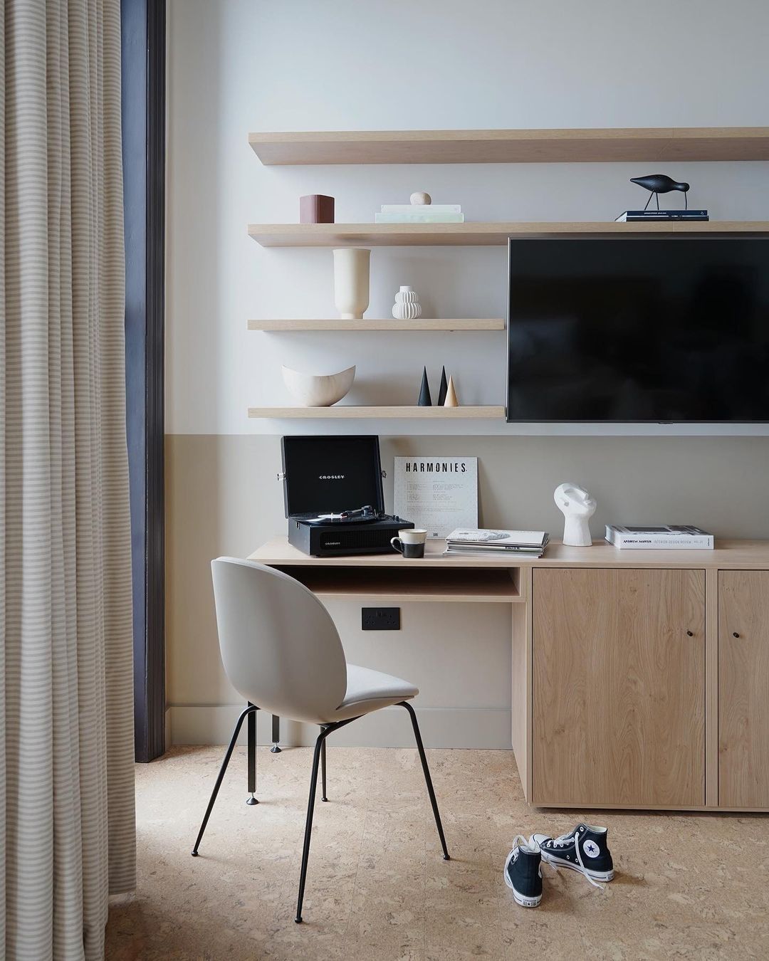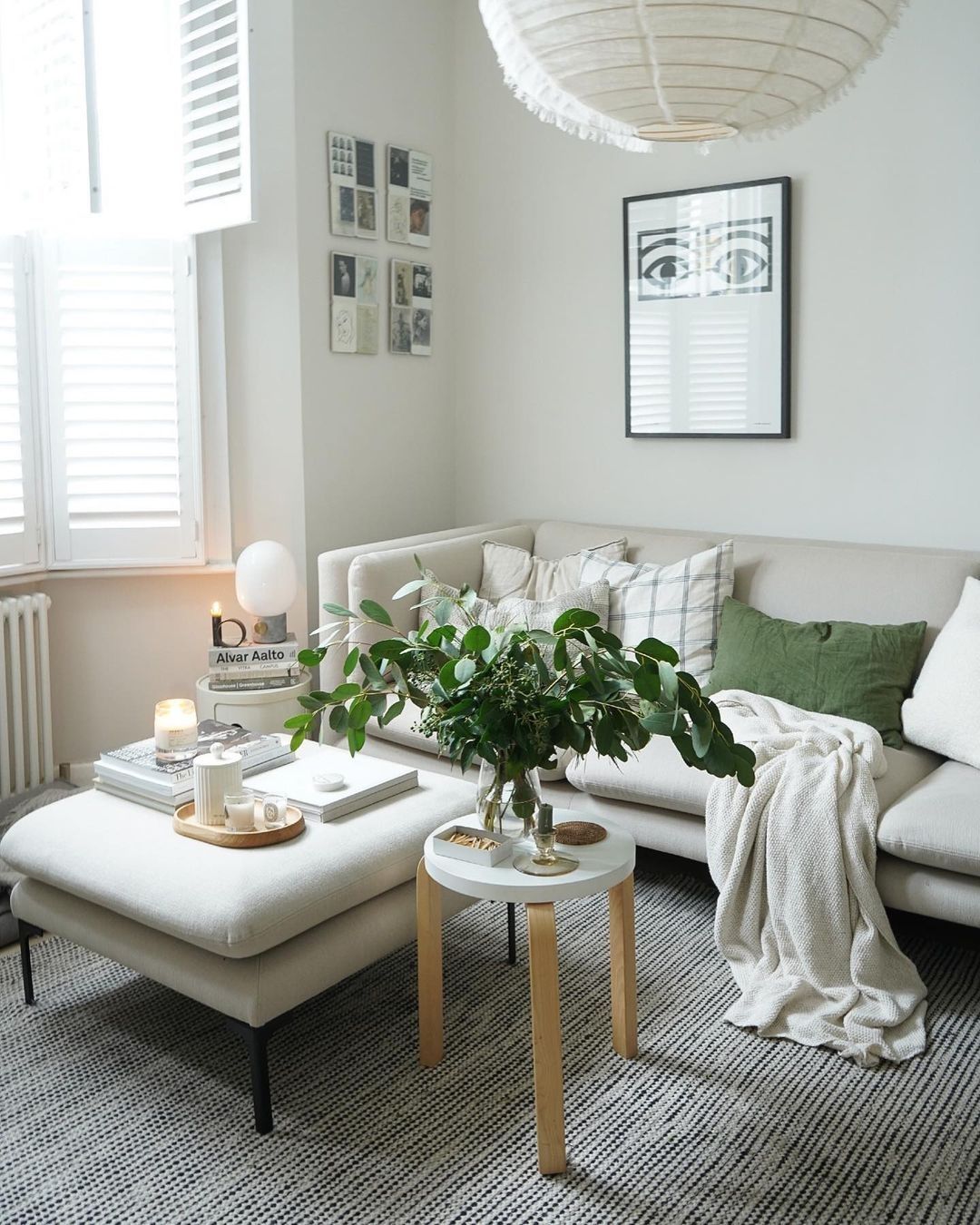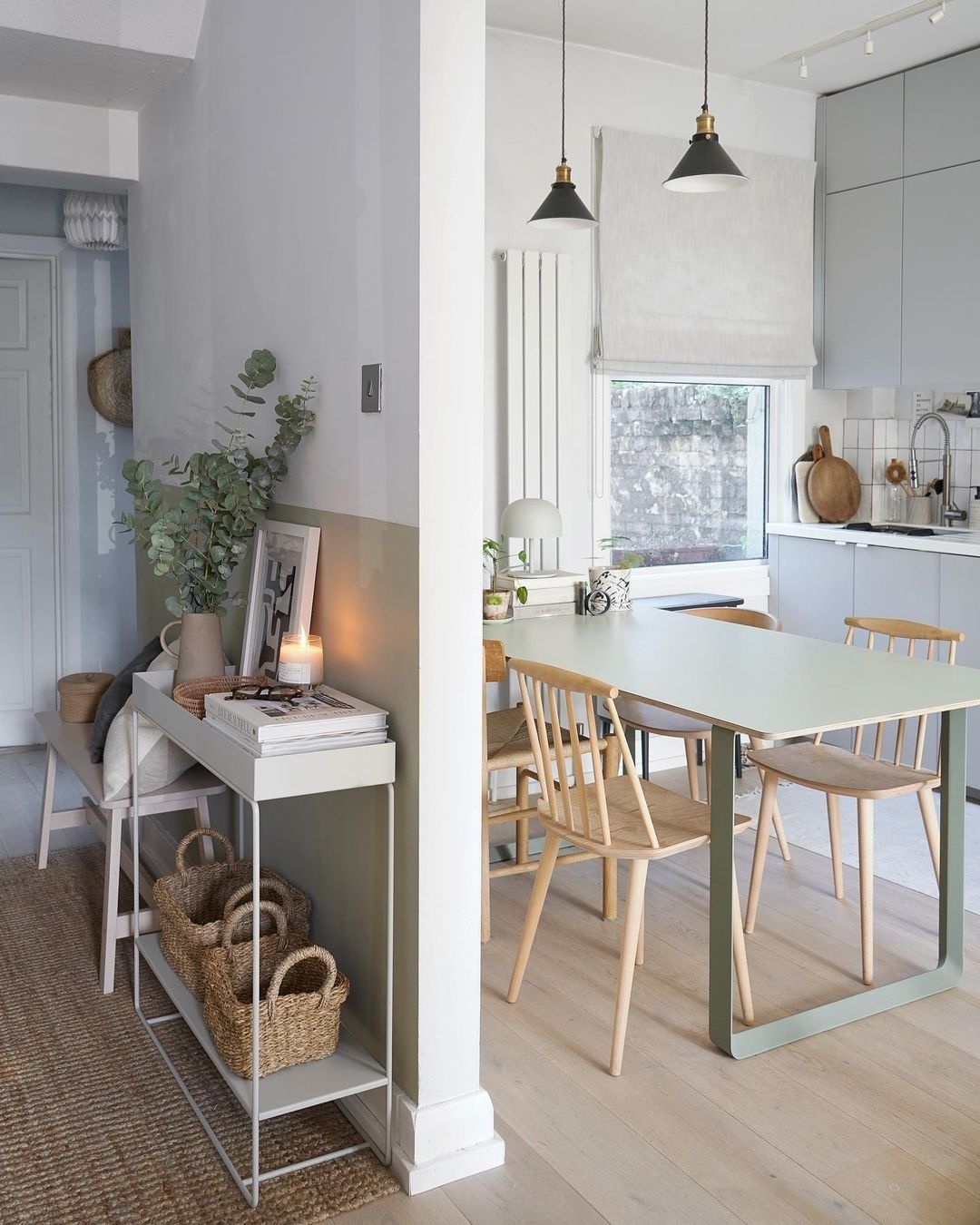 Cate St Hill is an interior design journalist, stylist and talented designer based in London. Her style reinterprets Scandinavian minimalism with a contemporary flair, as demonstrated in her home, all done in neutral tones broken up by a touch of sage green. A continuous inspiration for those who are decorating their first apartment.