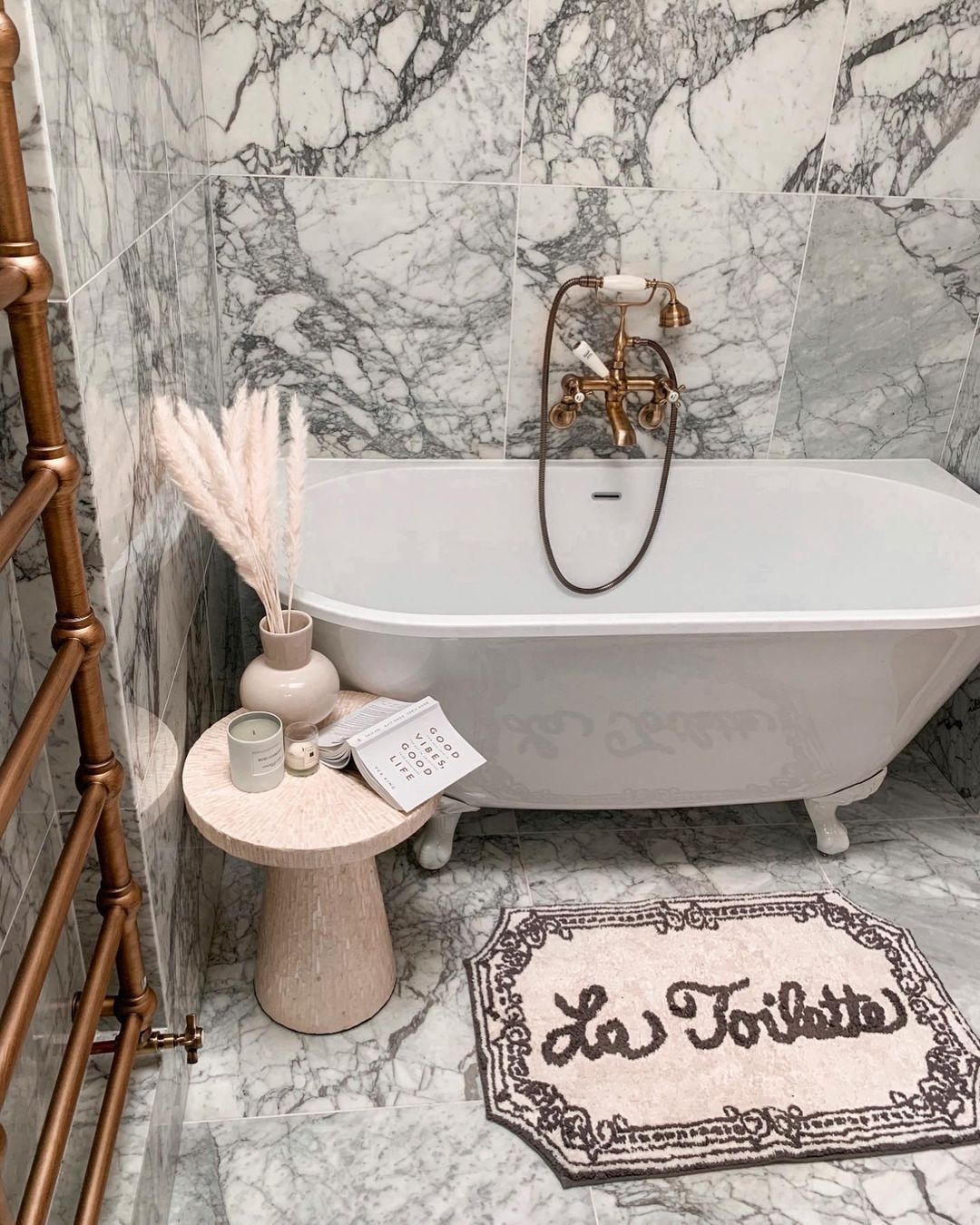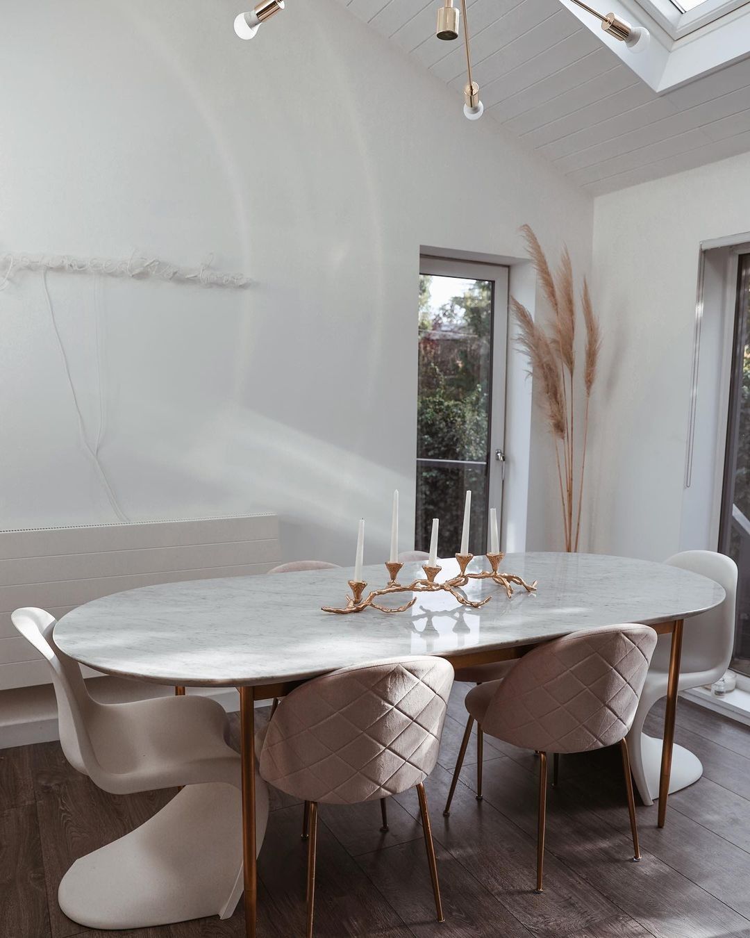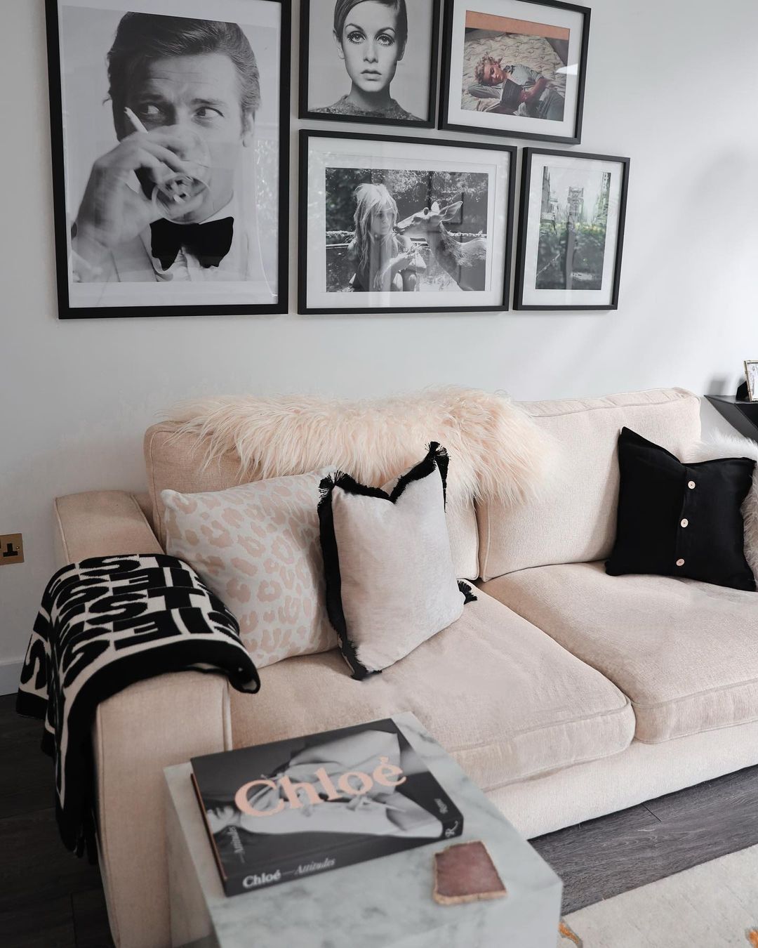 Model and influencer Chloe Lloyd has turned her home in the English county of Surrey into a hyper-feminine temple of the Paris touch: powder tones, feathers, marble, furry pillows, black and white posters of Brigitte Bardot, rattan chairs and fashion tablebook in plain sight. Everything is like living on a Pinterest board.