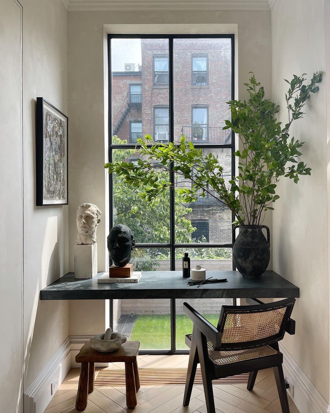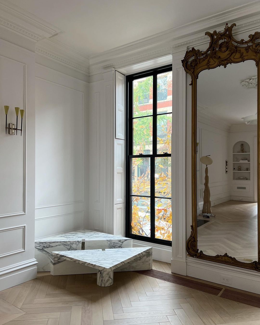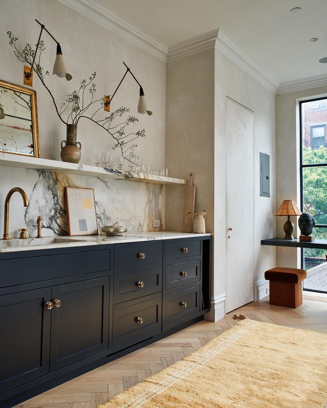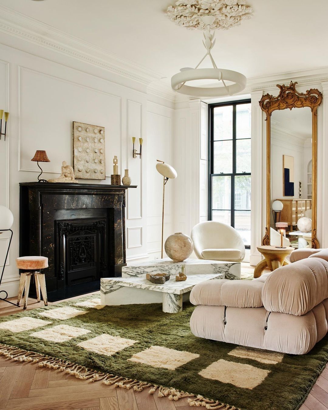 Food expert, Eyeswoon lifestyle blog founder and interior designer Athena Calderone opens the doors of her beautiful home in historic Cobble Hill, Brooklyn to her followers. A stunning Greek Revival style townhouse that the eclectic American has decorated based on her personal mantra: "Design connects us with beauty". And beauty abounds here, with warm, neutral tones, marble alternating with wood, artwork and the must-have Camaleonda sofa in the center of the living room.