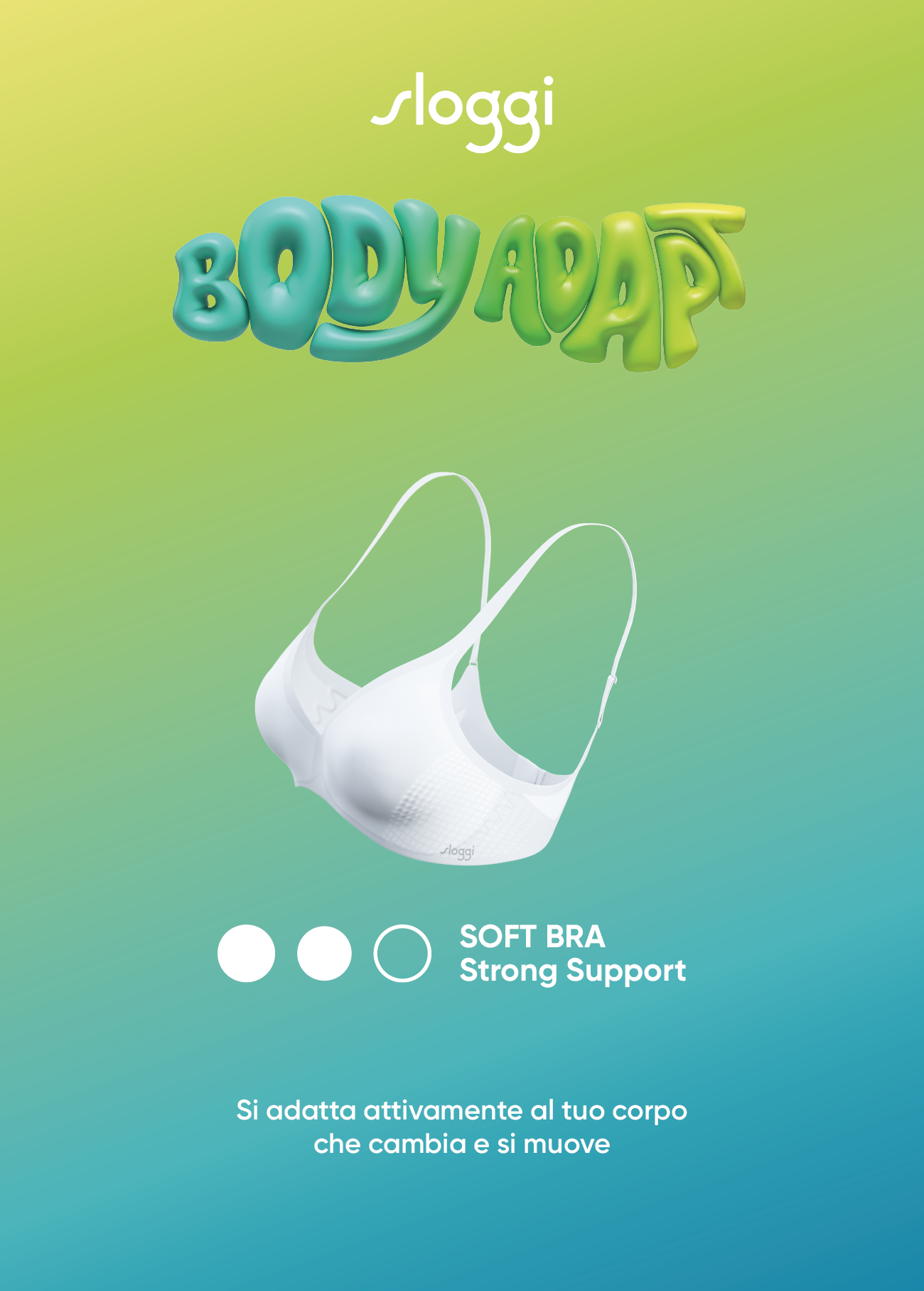 Women's bodies are constantly changing at every stage of life: between menstrual cycles, maternity, gain or loss of muscle mass or weight, the skin we wear is protagonist of these metamorphoses, especially in the breast area. This is why sloggi, a company that has been in business since 1979 with the mission of providing maximum comfort with its garments, has combined its expertise with research to create the first bra that adapts to all these moments providing active support to all types of breasts from XS to XXL+, sloggi Body Adapt. Available in three models, T-Shirt Bra, Bralette and Soft Bra, it intelligently adapts to the body emphasizing the shapes without marking, celebrating all forms of female physique to free them from all stereotypes. The 3D Gel Body Adapt Technology thanks to a line of gel injected between two sides of the fabric creates an imperceptible feel and gives support as a bra with underwire, without the annoying feeling of constriction, to promote the daily well-being as a form of self-love.