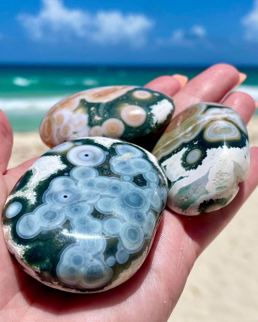 Used since ancient times as a protective and lucky stone, it is a symbol of rebirth. As its name suggests, ocean jasper is associated with water, from which it derives its calming power, the ability to let thoughts flow like the tides, and the strength to face new beginnings as impetuously as waves crash on rocks. In crystal therapy, it is believed that wearing ocean jasper as jewellery or carrying it in your pocket helps you feel strong and confident in social interactions and offers protection when travelling. So why should not we carry a small stone with us this summer? At worst, it gives us a little security for the new adventures that the coming weeks hold.