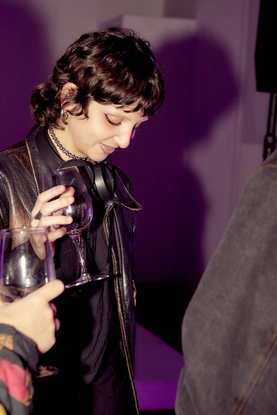 There is no music without someone to listen to it. And wine and DJ sets also play a role. When the workshop was over, the doors of the nss room opened for dancing. With the support of Pioneer and the Poche collective, Han, Futura Cimice, Elasi and Plastica got us dancing. One hand to the sky to mark the time, in the other a glass of wine from Donnafugata, the Sicilian winery that curated the entire selection of wines for the Future Producers light aperitif.