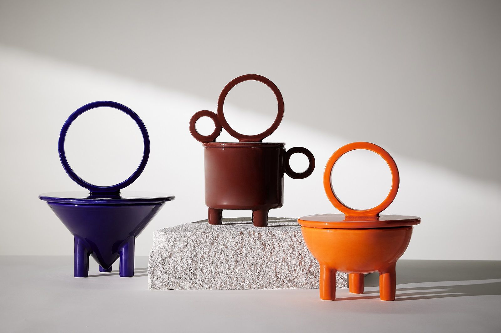 The olfactory path of C'ERA begins where saltiness mingles with the sea, leads to the autumnal notes of persimmon and ends with the woody composition of earth. These are the images and sensations evoked by the brand's first three candles, which are available on the website and in selected shops around the world such as Antonioli in Milan and La Ferramenta in Bologna. There is Cachi, a sweet and delicate fragrance with notes of ginger, eucalyptus and white flowers, reminiscent of the rich aroma of a ripe persimmon. Salsedine is a salty fragrance that, thanks to sweet vanilla and floral notes of lily of the valley and ylang-ylang, is reminiscent of the sea when it comes out of the water. Finally, there is Terra, a woody fragrance with notes of leather, musk and orange, reminiscent of the scent of the earth after a summer rain. In March, Erba will be added to the collection, which is reminiscent of a freshly mown lawn in the countryside. Each of the three candles is encased in a handcrafted ceramic made in collaboration with Paolo Santangelo. The colours and patterns of the ceramics are also three: Wok, Drop, Cup and khaki orange, brown and blue. The plus? The candles are refillable, but if you don't want to refill them, the ceramic still remains a design object that enhances the style of our interior.