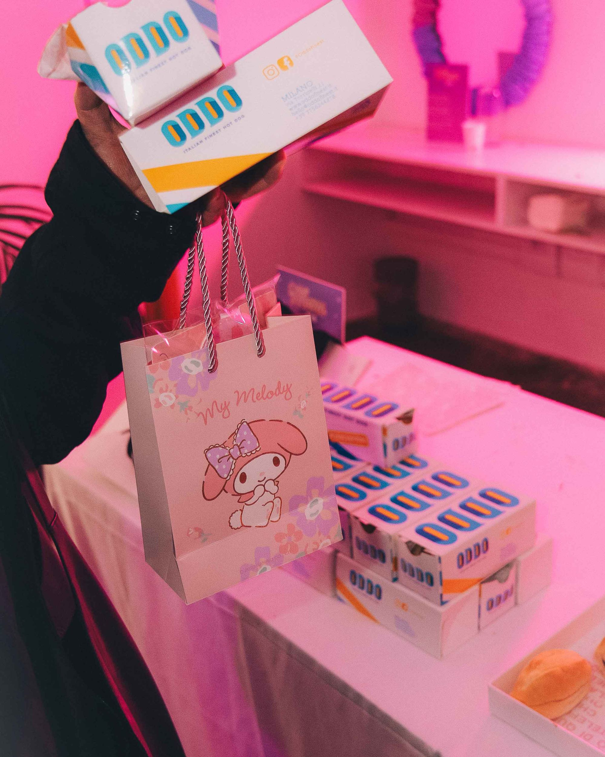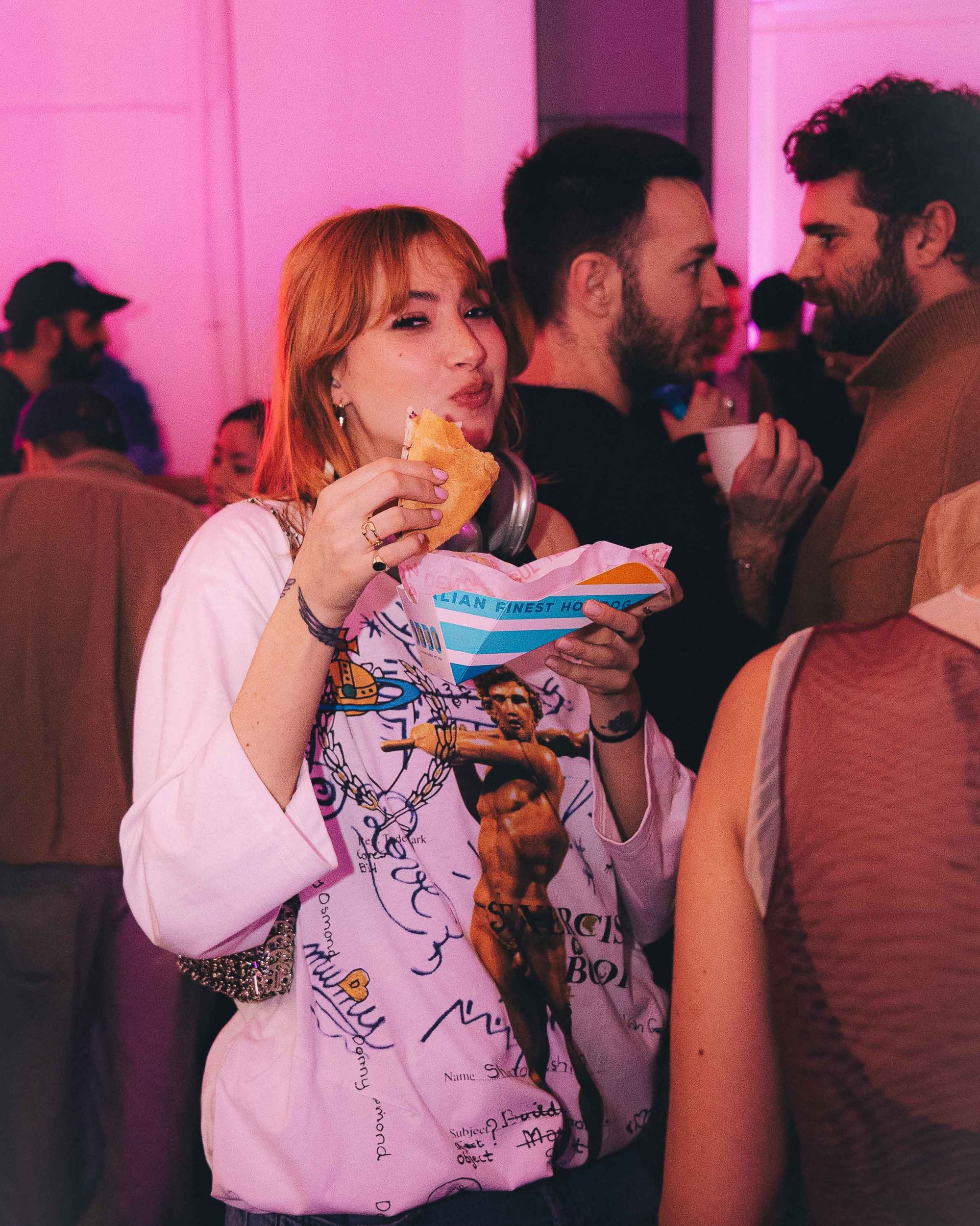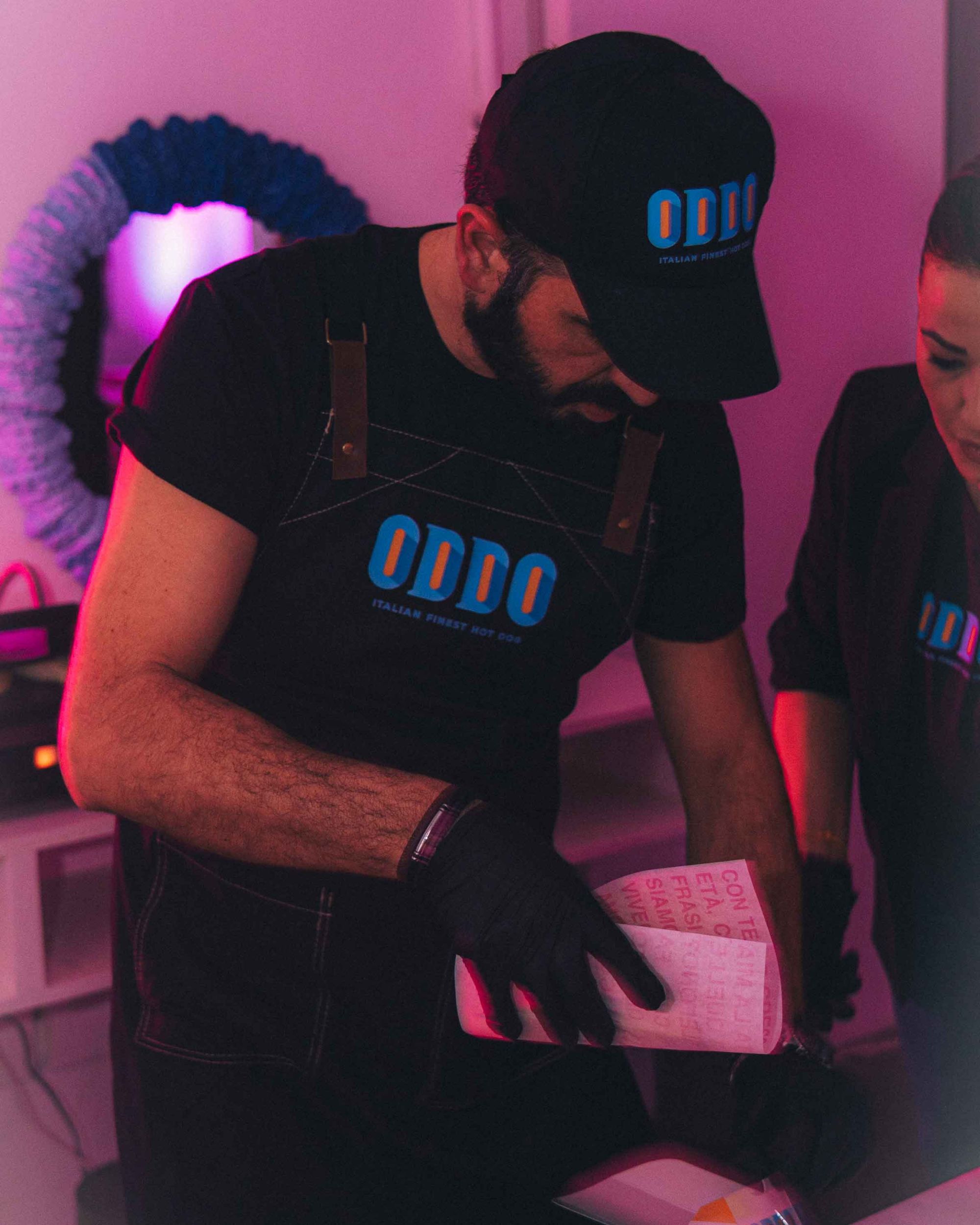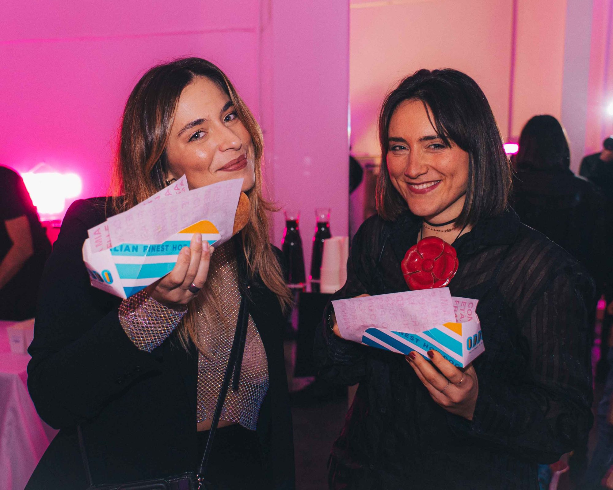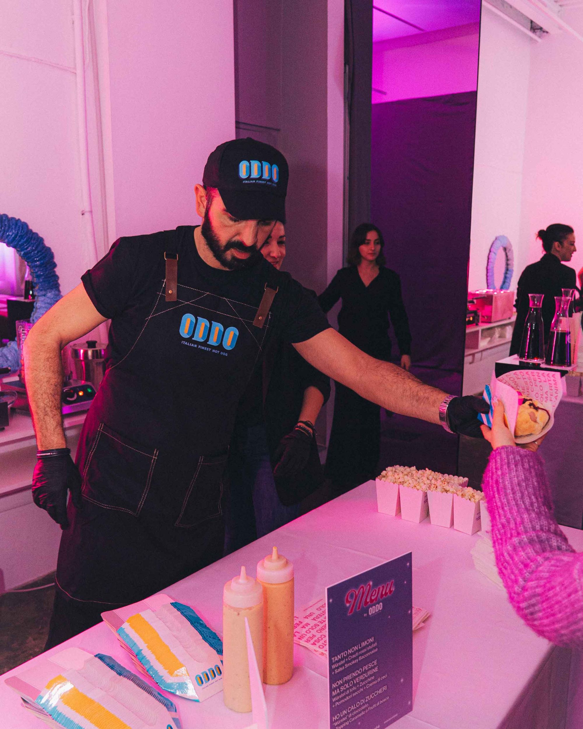 In one hand, the heart-shaped sticker "You're alone," and in the other, the gourmet hot dog by Oddo, which significantly contributed to the overall experience. Oddo delighted participants with unique and customizable gastronomic options, perfect for every palate. Oddo's flexible and adaptable catering proved ideal for such a dynamic and engaging event.