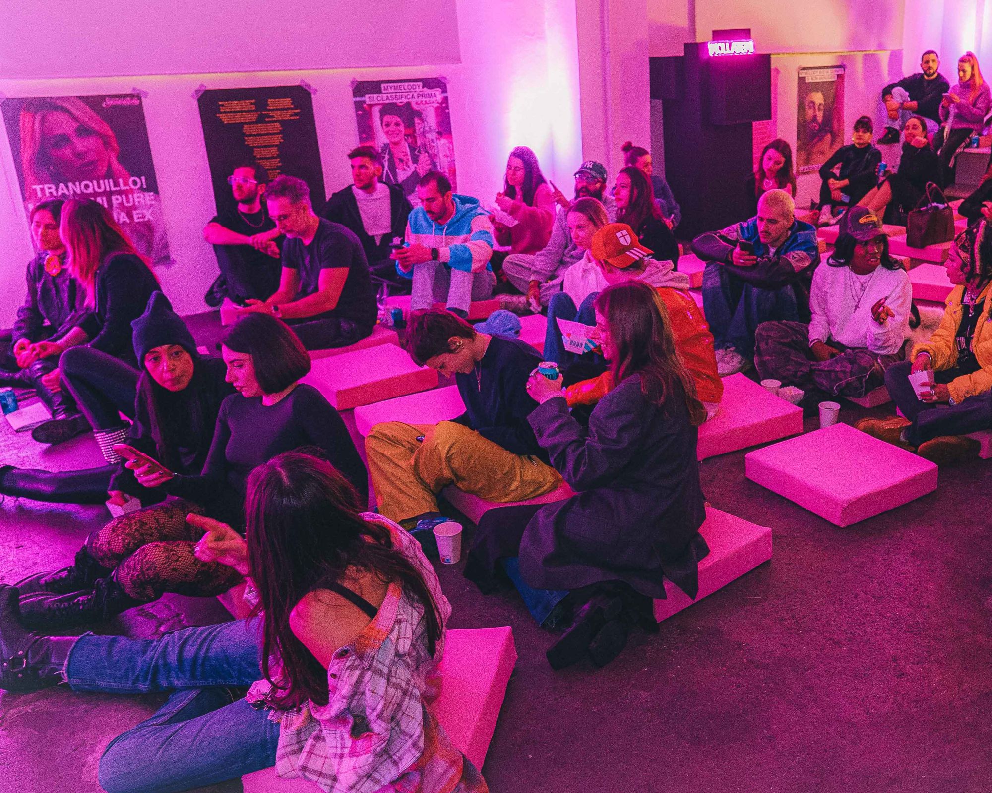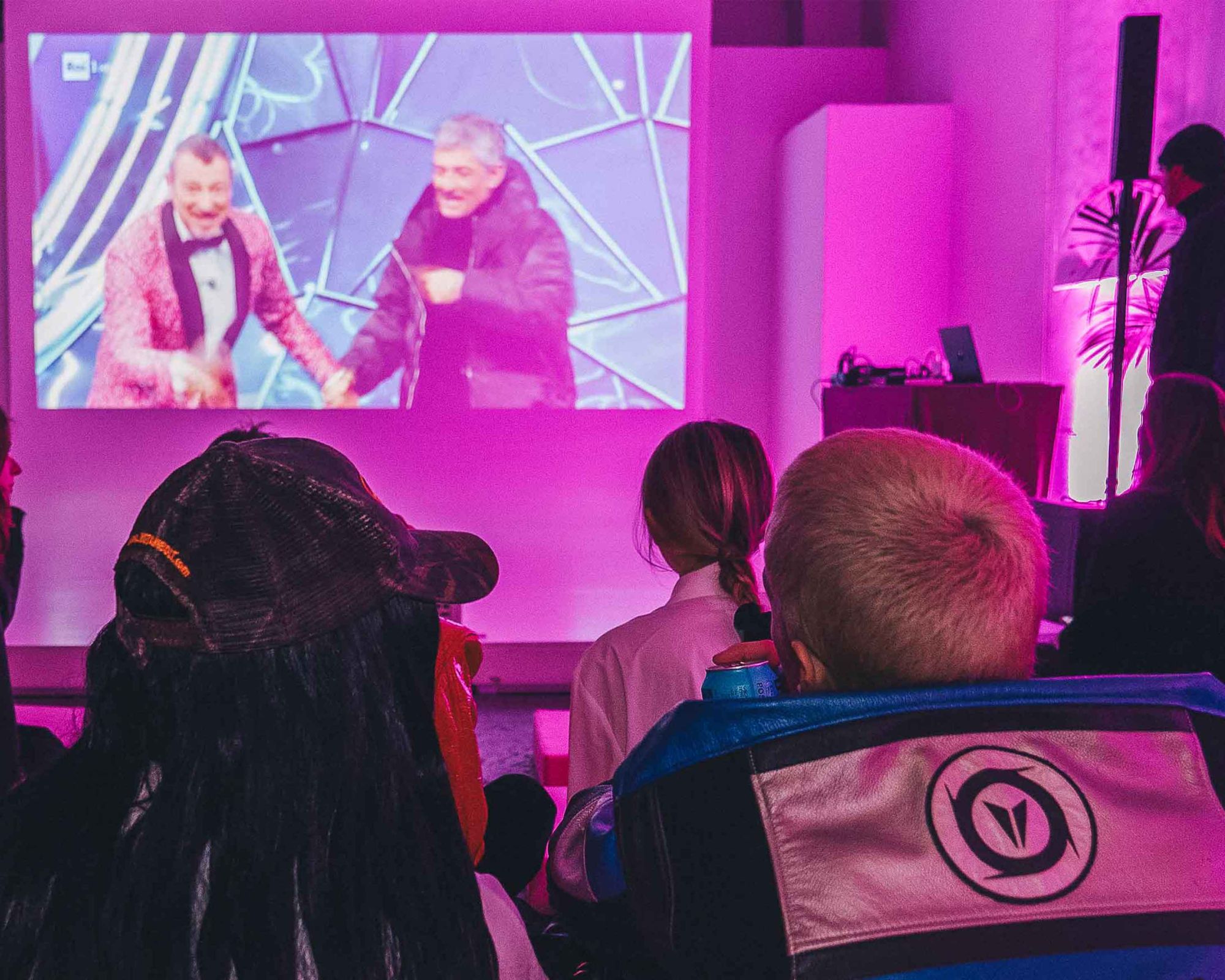 The event focused on the live broadcast of the fourth night of the 2024 Sanremo Festival, allowing everyone to follow the performances of their favorite artists in the company of fellow enthusiasts. Among strangers, the magic of music, hands reaching into a bowl of gummy candies, and sharing pink cushions created sudden bonds, turning the evening into an unforgettable experience of connection and fun.