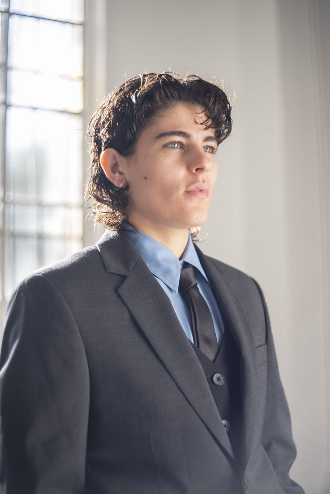 Shirt AURALEE, tie stylist's own, suit SANDRO PARIS, shoes GIULIA TADDEUCCI.