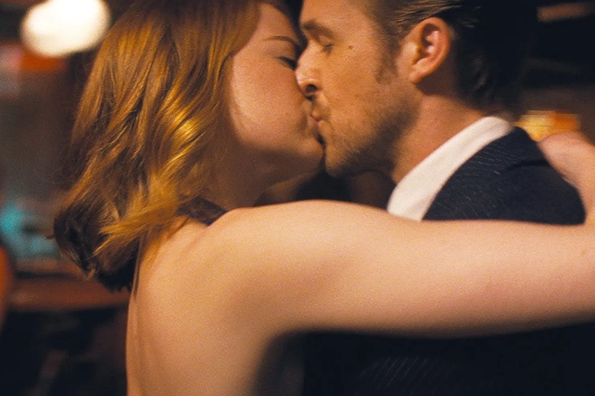 Imaginatively back in the same restaurant where Mia first saw Sebastian, he doesn't walk past her after talking to his boss. Instead, he kisses her passionately in Damien Chazelle's acclaimed musical love story La La Land.