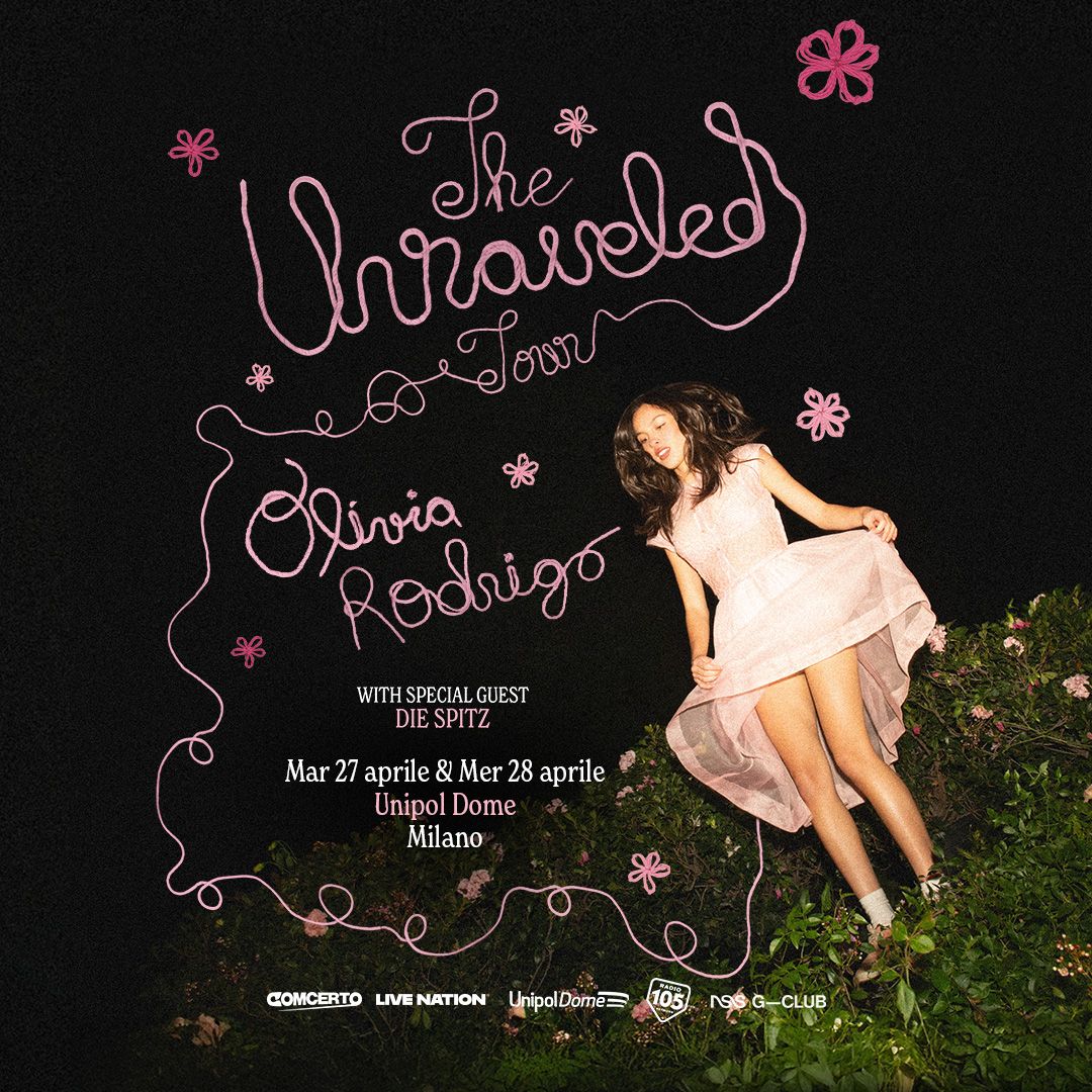 Today, multi-platinum artist and three-time GRAMMY Award winner Olivia Rodrigo has announced The Unraveled Tour, a massive 65-date run across North America, Europe, and the United Kingdom. The tour supports her third studio album, you seem pretty sad for a girl so in love, set for release on June 12, 2026 via Geffen Records. Produced by Live Nation, the global tour will arrive in Italy at Milan’s Unipol Dome for two shows on April 27 and 28, 2027. Special guests for the Italian dates will be Die Spitz. American Express presale tickets will be available from Tuesday, May 5 at 12:00 PM. General sale starts on Thursday, May 7 at 12:00 PM on Comcerto.it and Livenation.it.