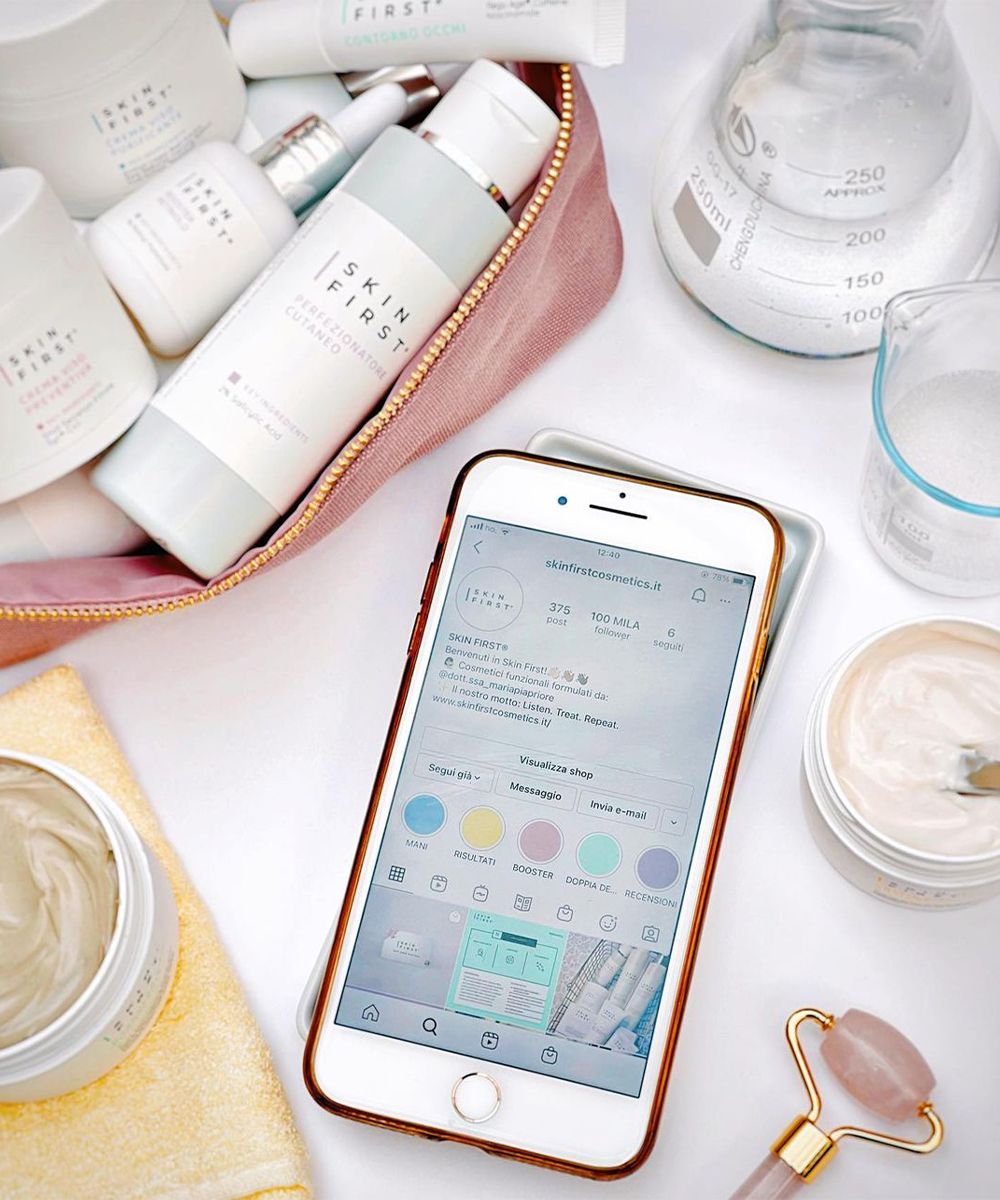 The actual launch of Skin First takes place in June 2019, through the online shop and the Instagram page @skinfirstcosmetics.it, that reached 108K followers in just over a year: the continuous exchange and discussions that arise from the community led the brand to offer today a wide range of products that meet the needs of different types (and problems) of the skin. Skin First is a functional skincare line, Made in Italy and close to people: the attention to their community and the word of mouth, in addition to the actual results, are in fact the greatest success of Skin First.