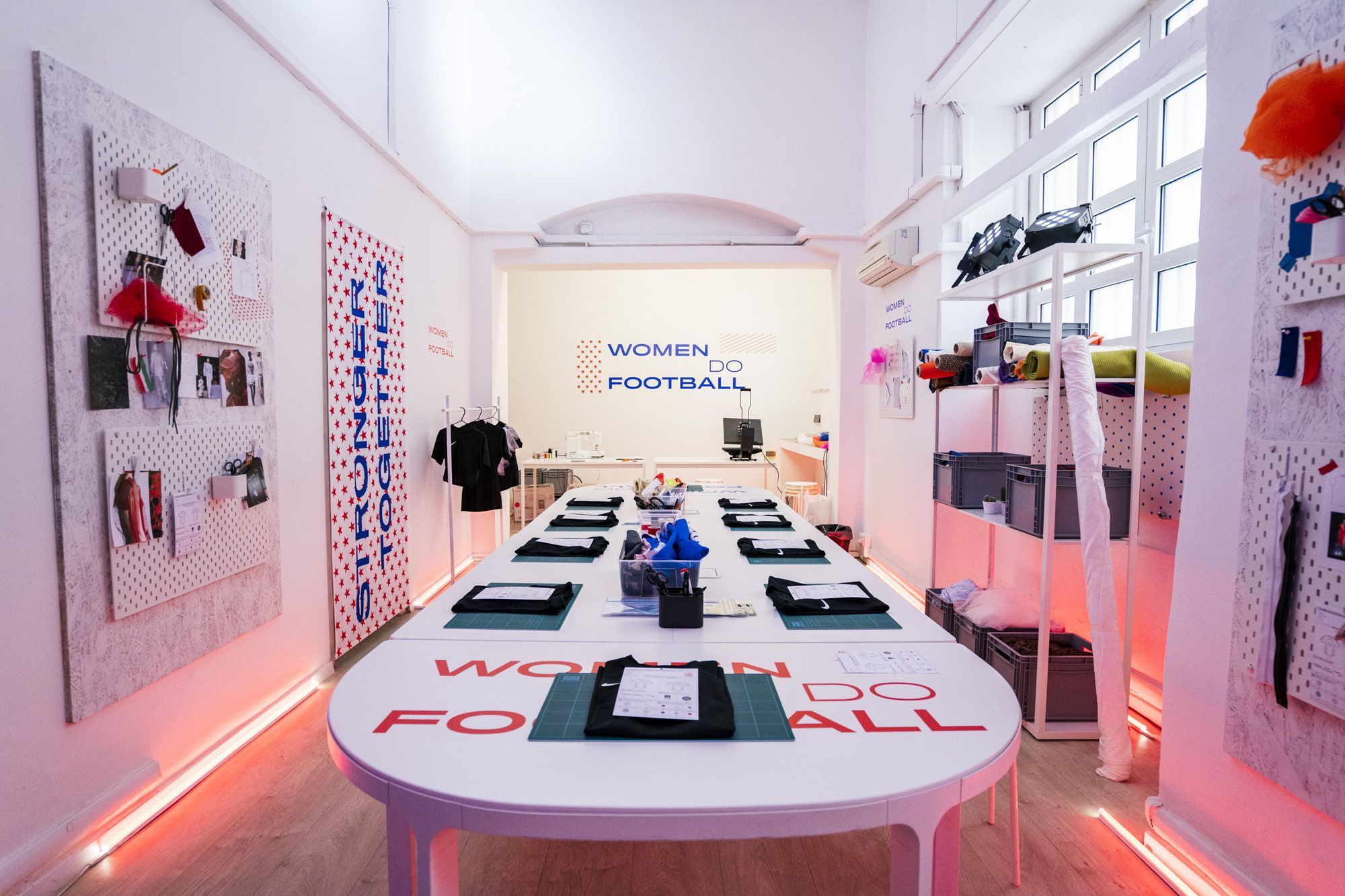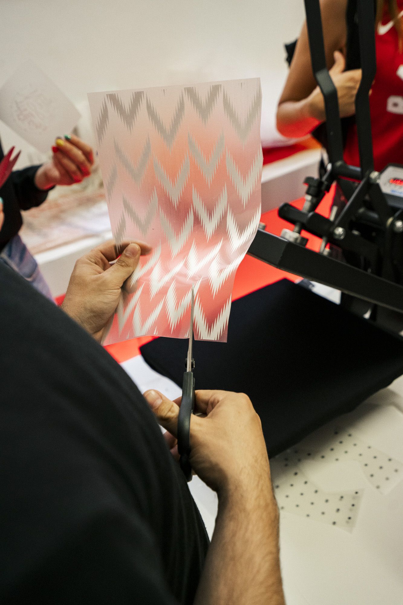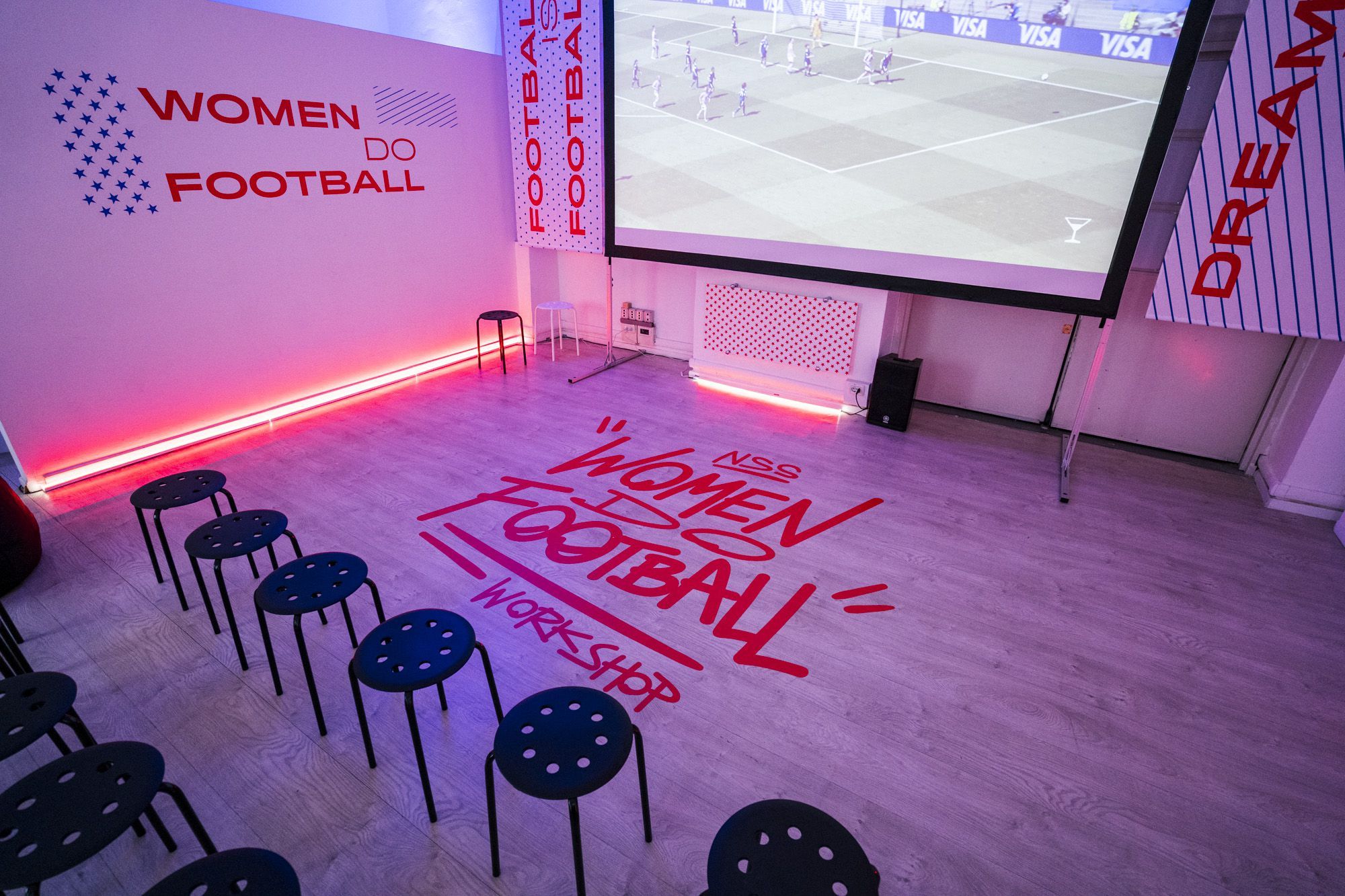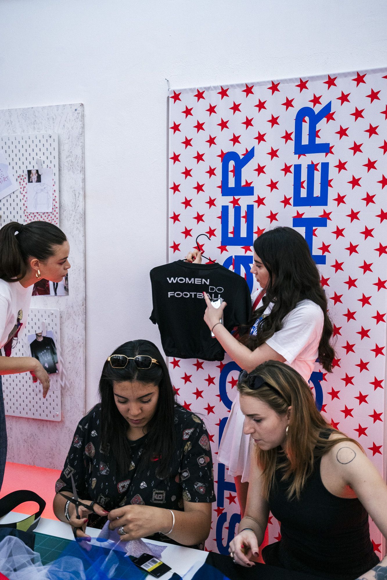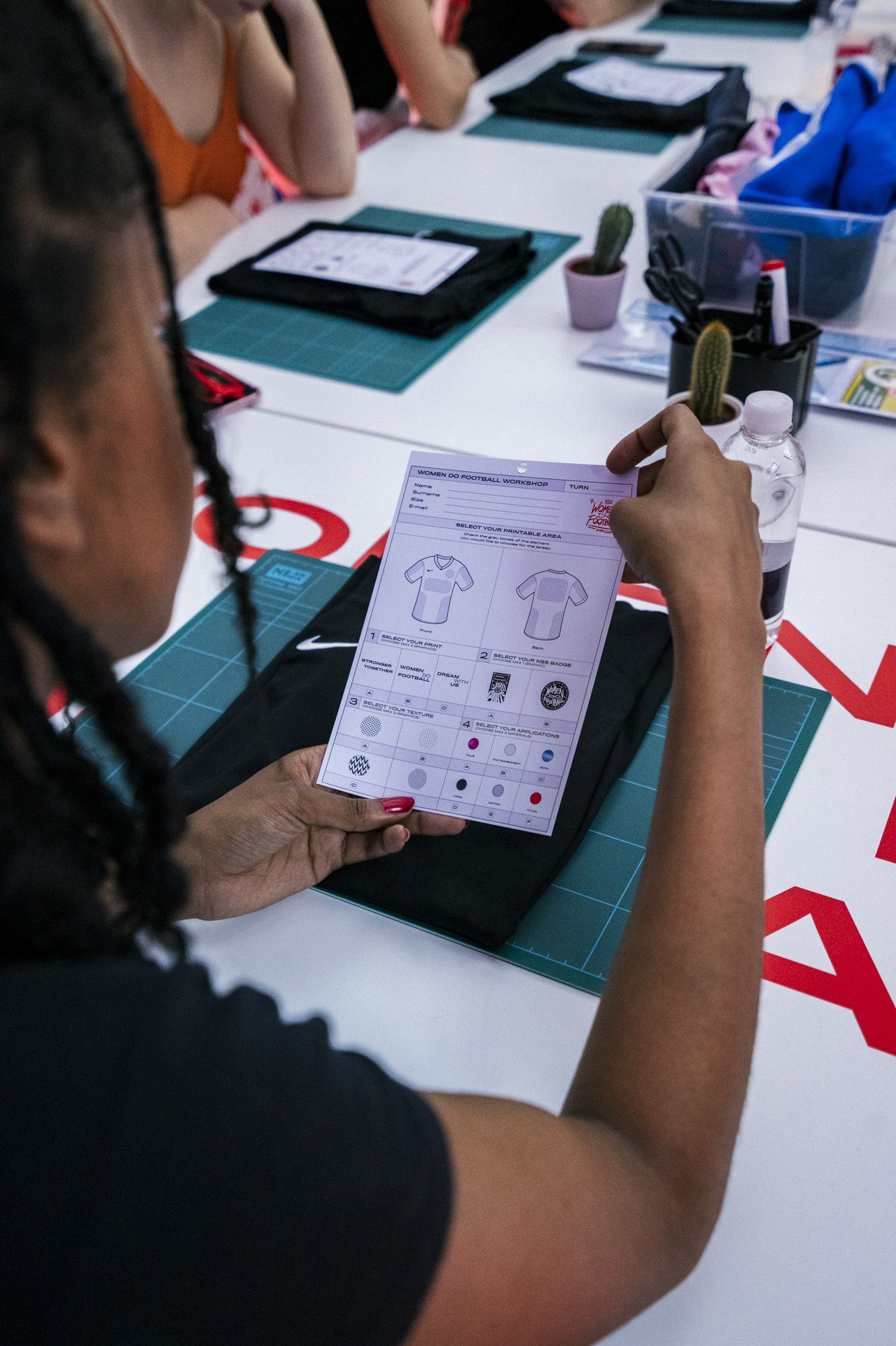 Women Do Football Workshop A football jersey customization session during the Women's Football match