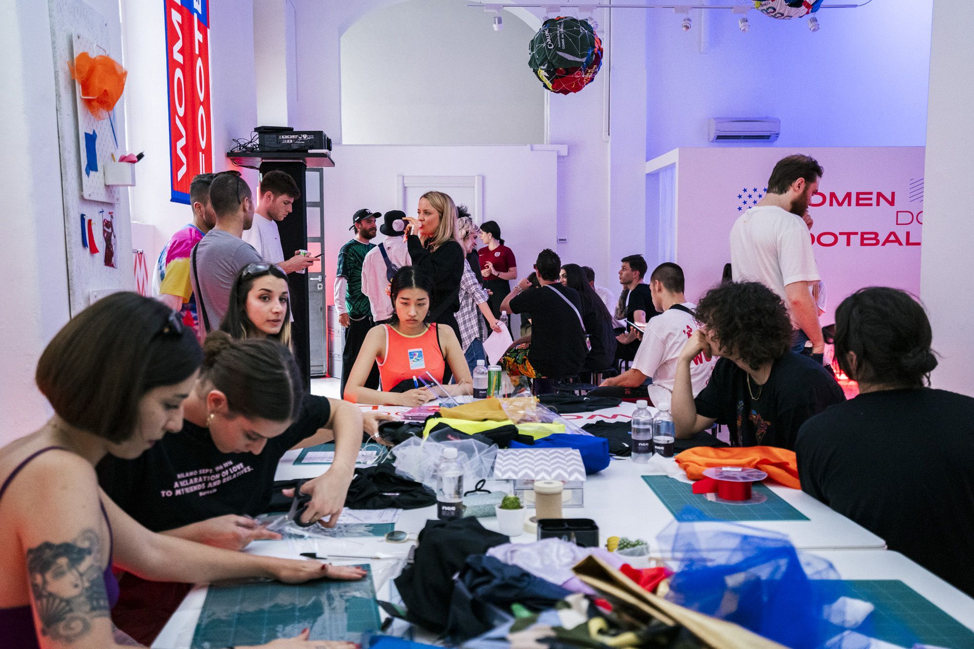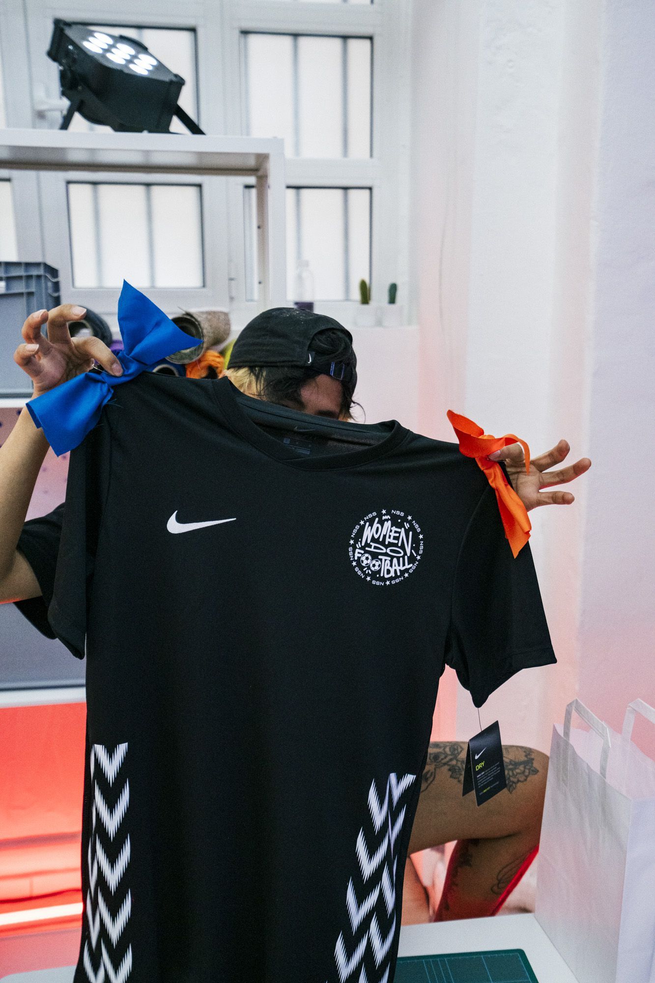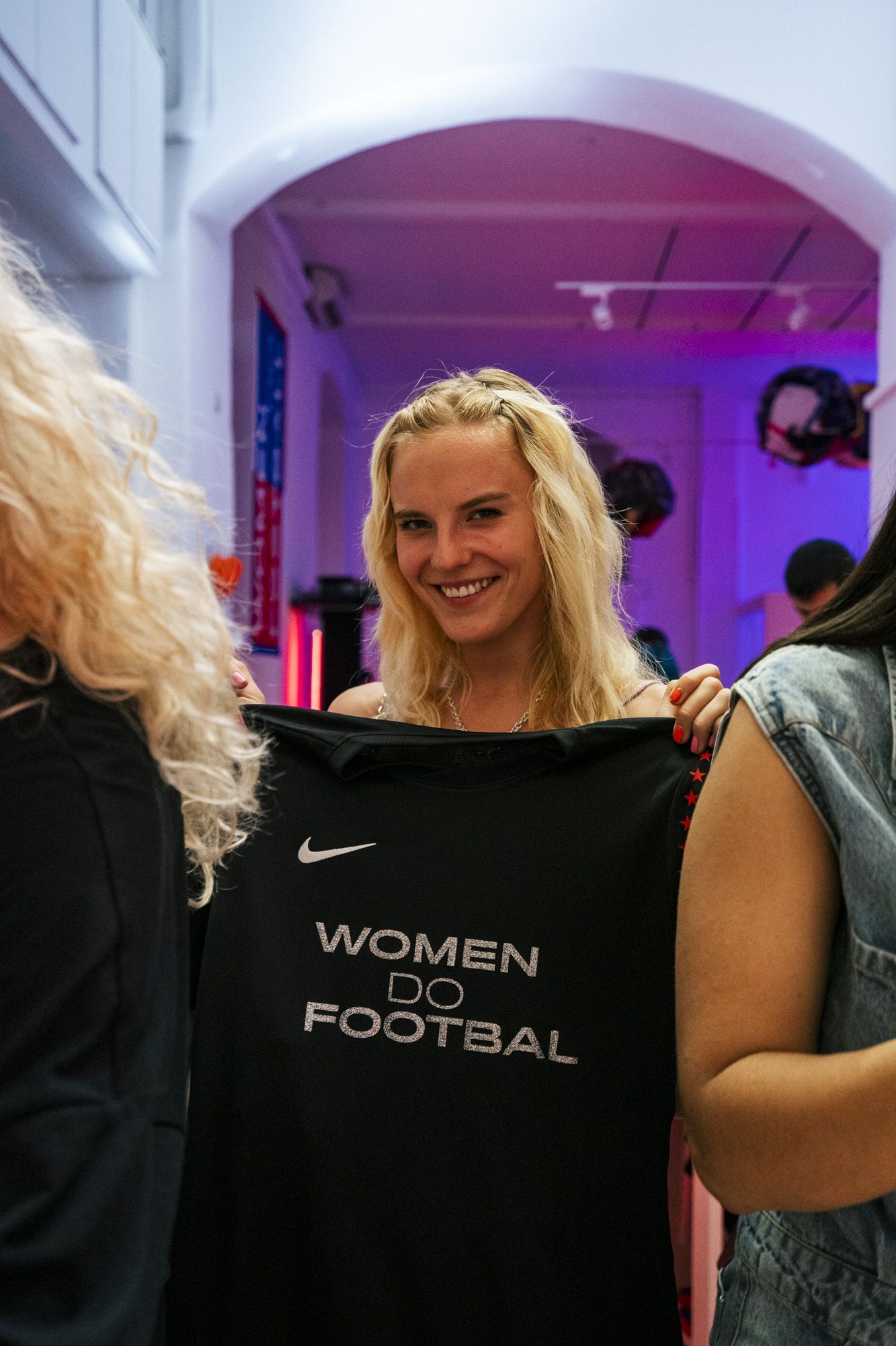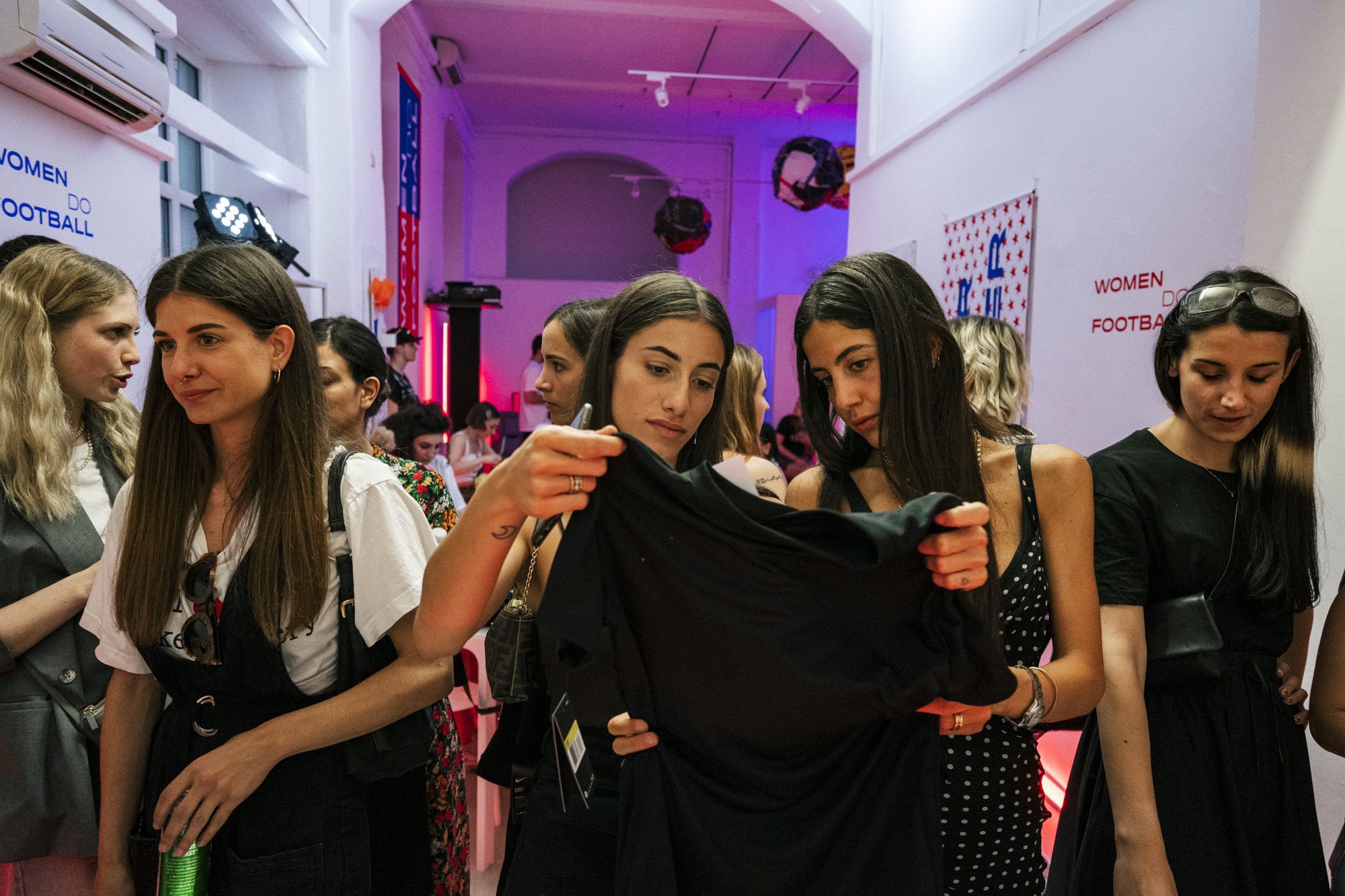 The match was not the only attraction of the night though. The community of football enthusiasts gathered for a workshop of jersey customizations. The Nike training shirts became the perfect canvas to express their creativity thanks to inserts of different fabrics, details, cut-outs and decorations. The item symbol of the football aesthetic is enriched by an unprecedented feminine vision, becoming the perfect expression of the claim Women Do Football.