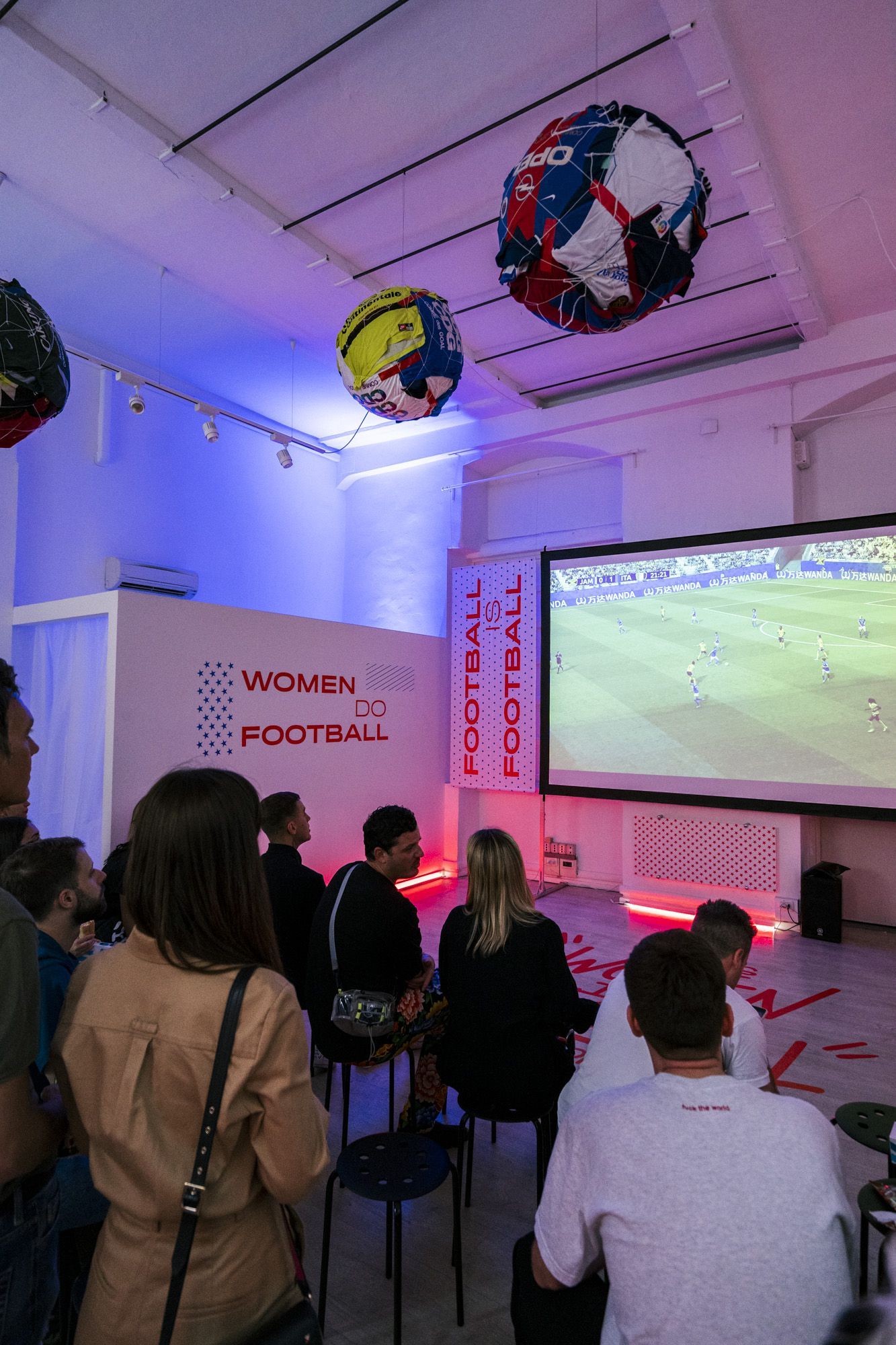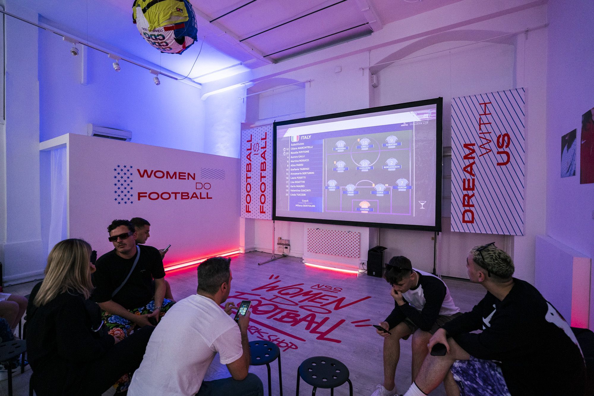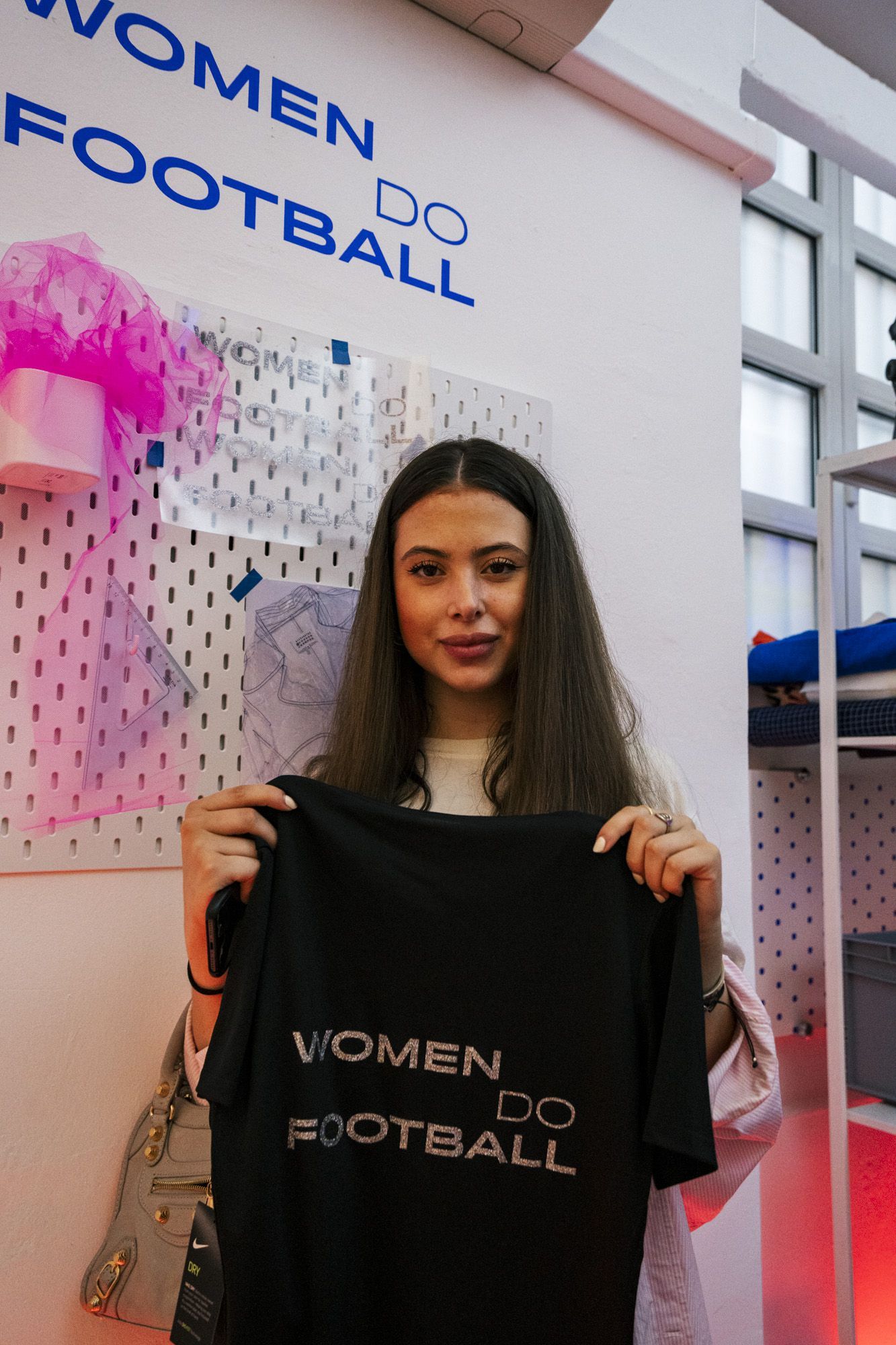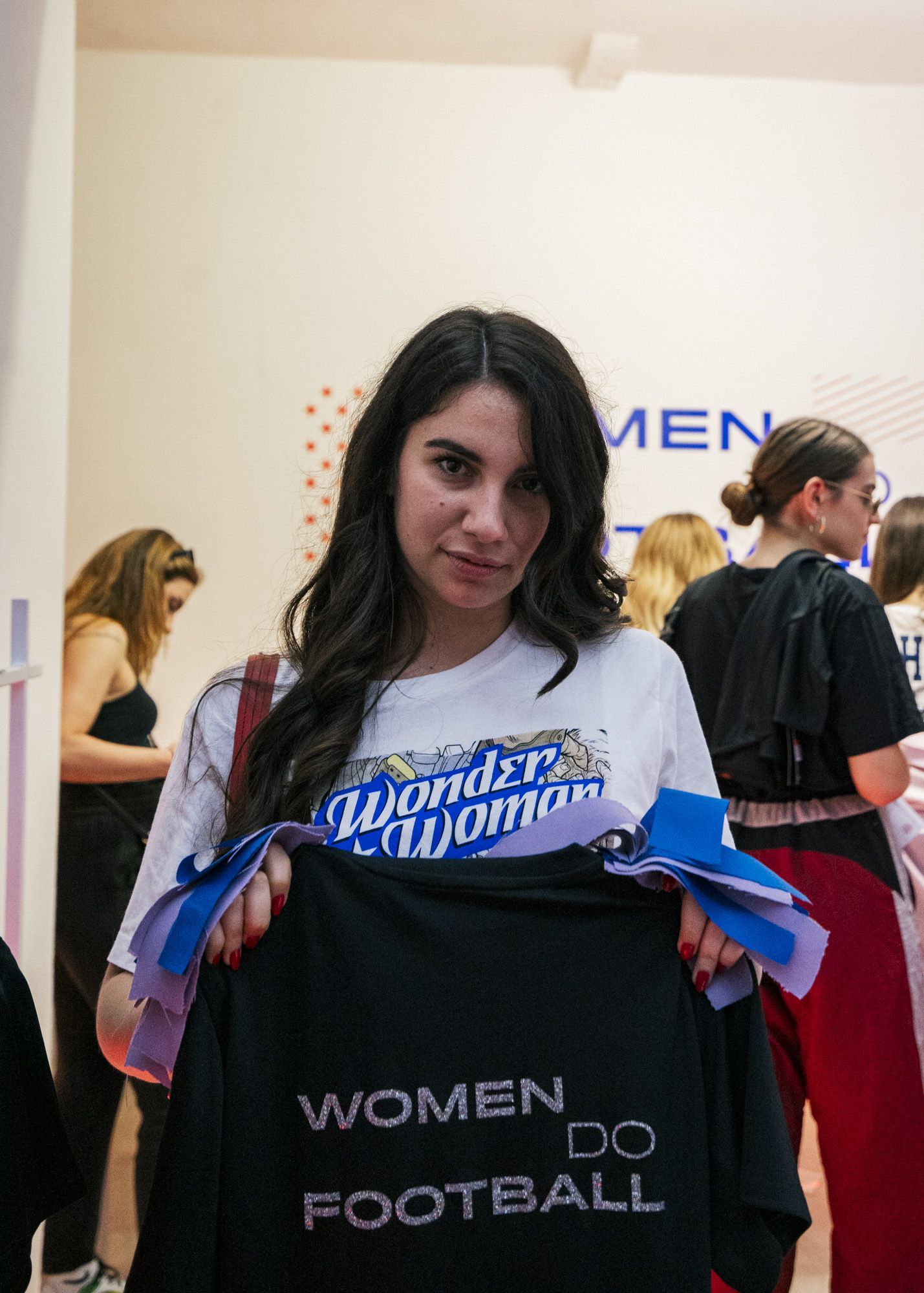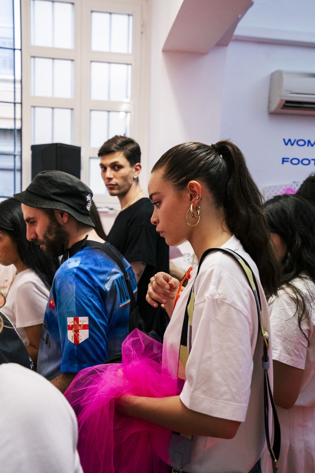 The match was not the only attraction of the night though. The community of football enthusiasts gathered for a workshop of jersey customizations. The Nike training shirts became the perfect canvas to express their creativity thanks to inserts of different fabrics, details, cut-outs and decorations. The item symbol of the football aesthetic is enriched by an unprecedented feminine vision, becoming the perfect expression of the claim Women Do Football.