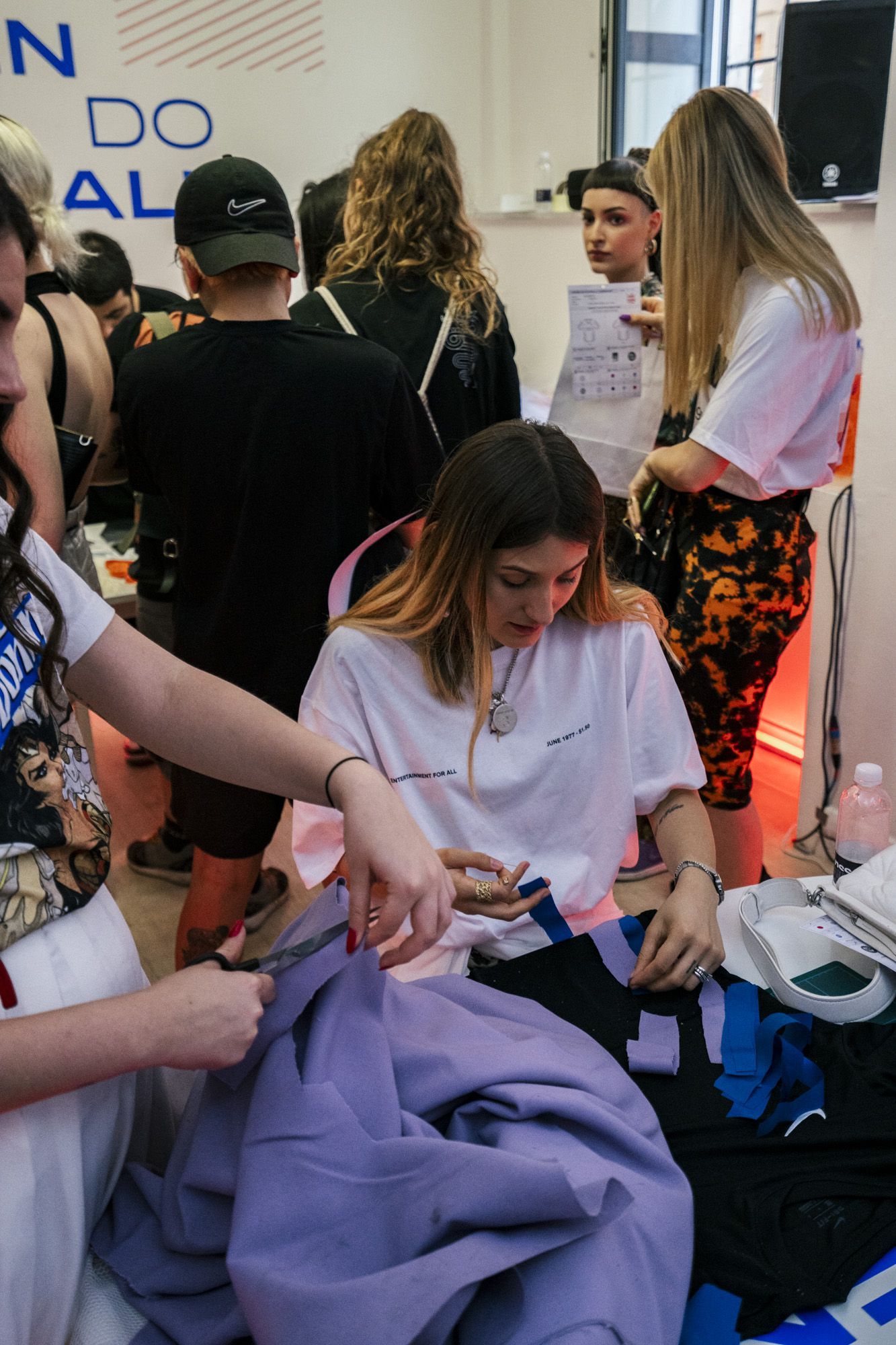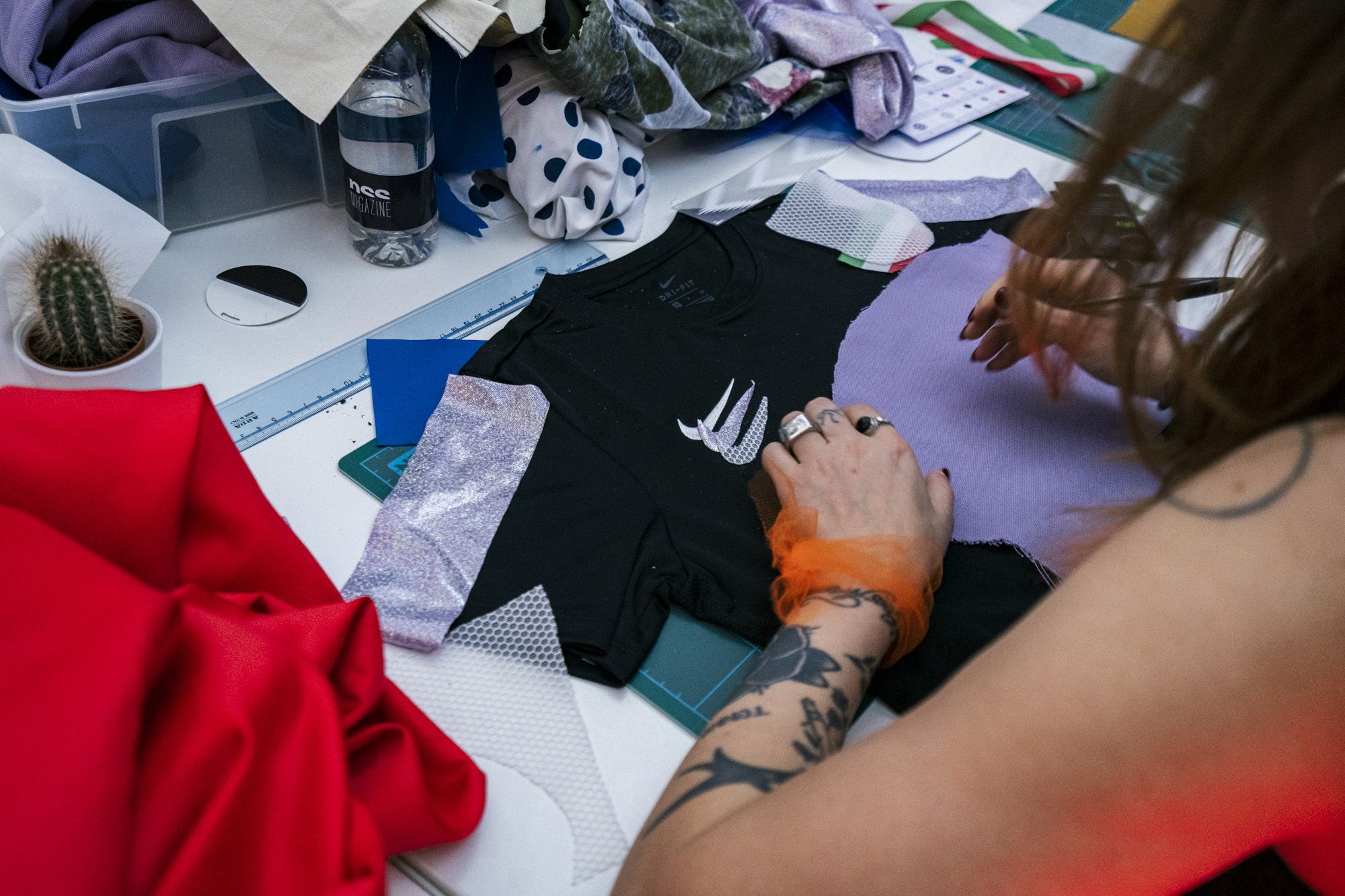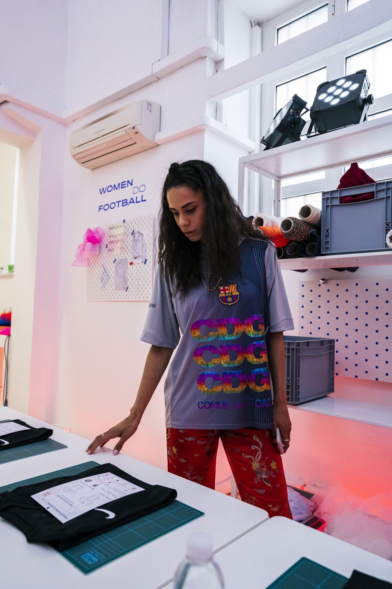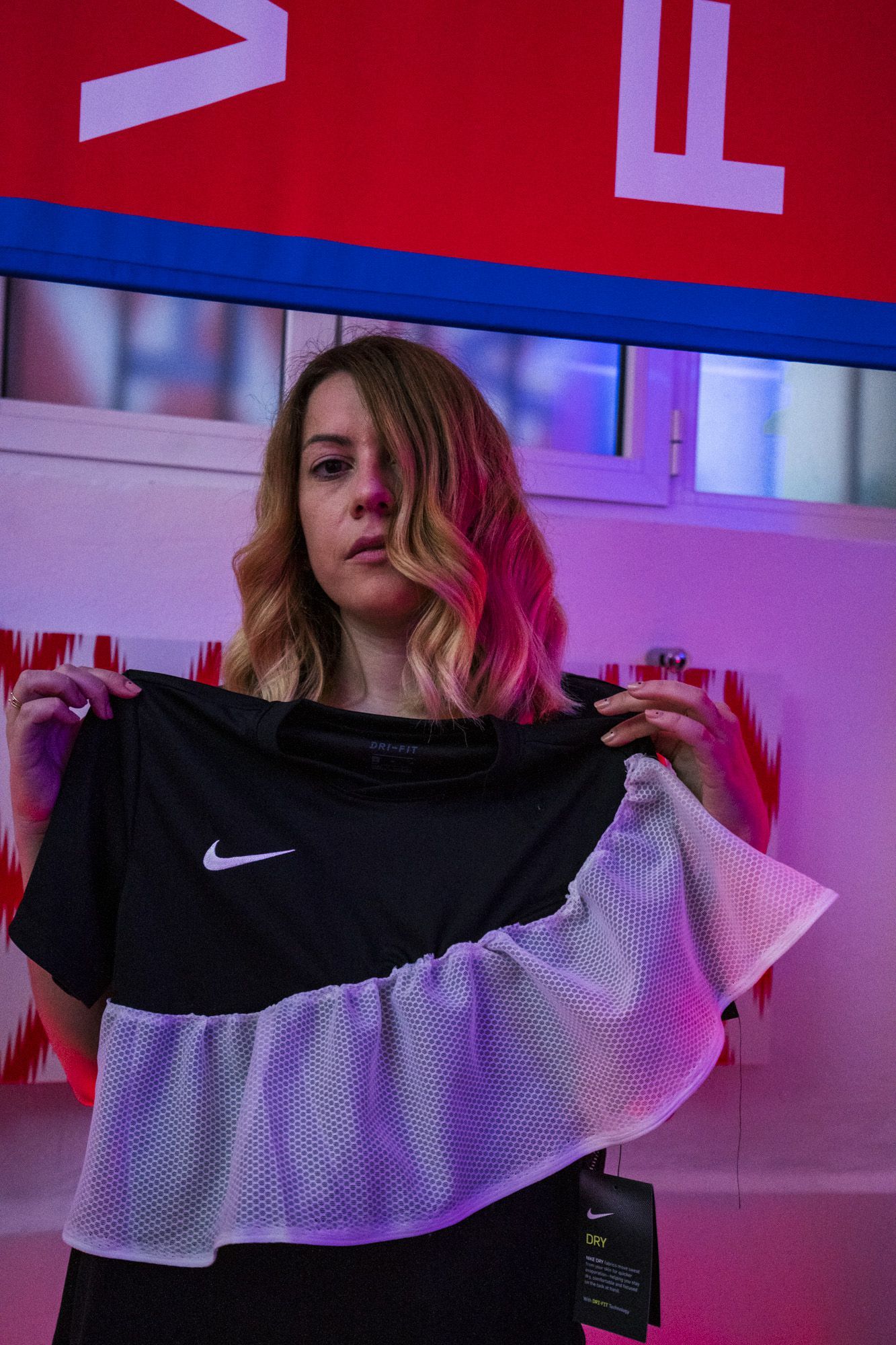 The match was not the only attraction of the night though. The community of football enthusiasts gathered for a workshop of jersey customizations. The Nike training shirts became the perfect canvas to express their creativity thanks to inserts of different fabrics, details, cut-outs and decorations. The item symbol of the football aesthetic is enriched by an unprecedented feminine vision, becoming the perfect expression of the claim Women Do Football.