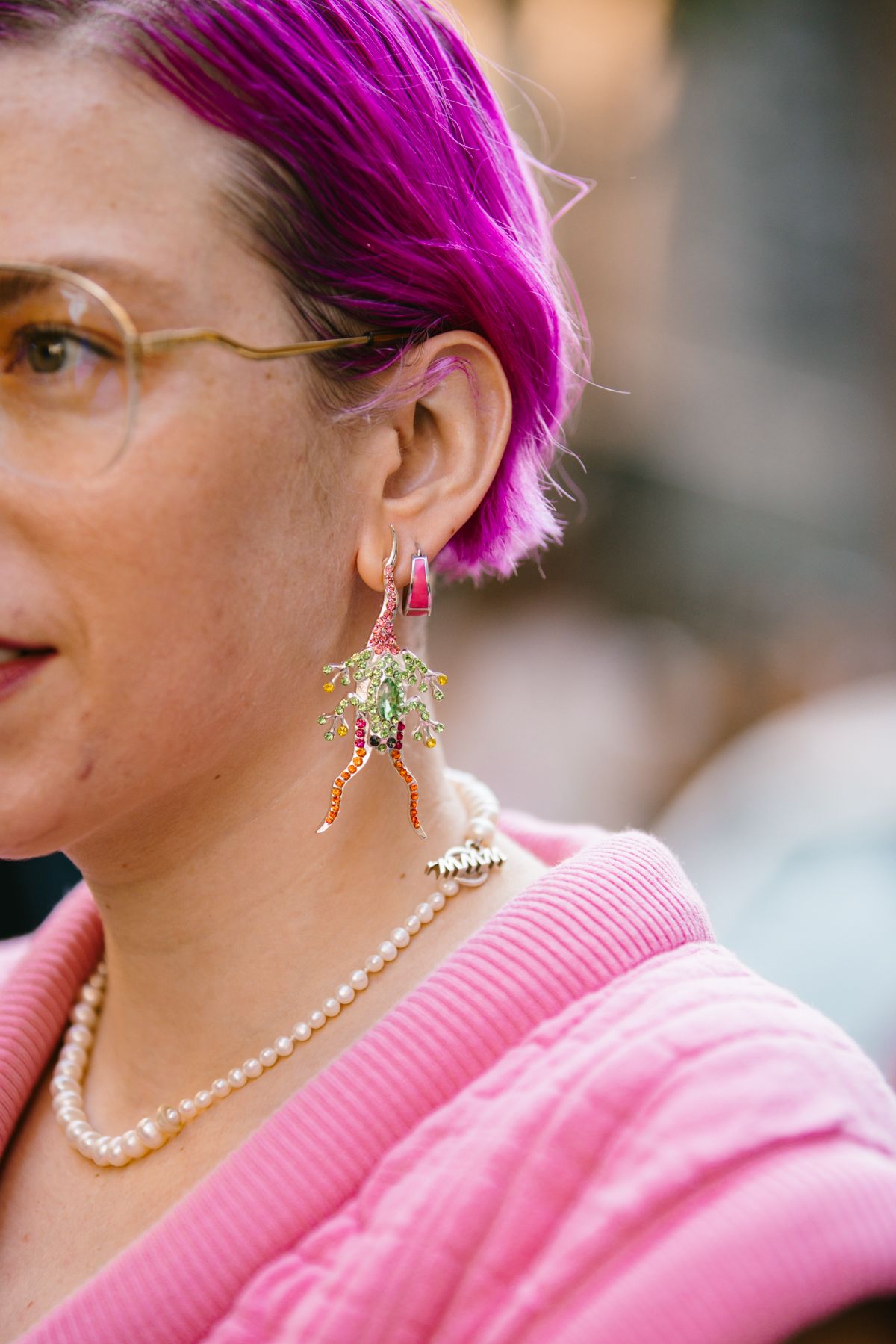 The opening ceremony of the begun fashion month is New York Fashion Week, where the streets were filled with color again thanks to the returned opportunities to sport make-up looks that do not go unnoticed. The faces of attendees at runway shows, presentations, cocktail parties or simply impromptu red carpets on the streets of the metropolis for SS23 came back to extraorinarily glow with dense, textured hues, often matching the selected outfits. Other protagonists to spot around The City were accessories, used as communicative tools of a mood or as a symbol of belonging to an aesthetic group.
