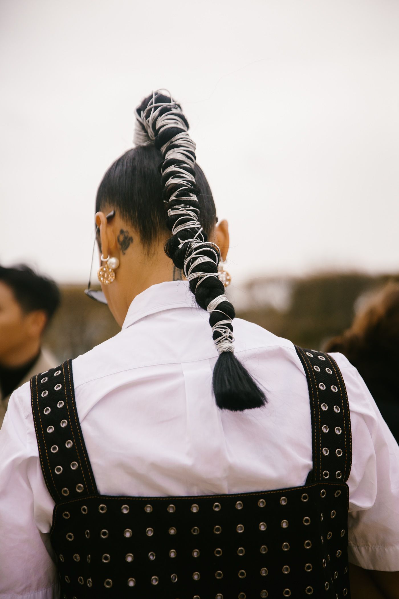 In the French location, Fashion Week always has a different flavor. Thanks to the shows of the most emblazoned international brands such as Louis Vuitton, MiuMiu, Balenciaga and Chanel there are so many personalities in the industry such as Emma Chamberlain, Karoline Daur, Gabriela Karefa-Johnson and Adwoah Aboah have flocked to the Ville Lumiére to attend in the front-row. The common thread among them was the cold weather, which did not prevent the guests from showing off the pop outfits signed by the maisons combined with maxy and colorful accessories. Soft 90s make-up and hairstyles proved to be a decisive aesthetic plus to the various "red carpet like" appearances: hair accessories and gathered hairstyles this season get a special mention, especially the silver clips that supported the platinum blond bob of the American Youtuber and the long auburn braids of the British model. These beauty looks stood out for their flair and visual impact, but also for their practicality and functionality in the total chaos of Paris fashion week, and thus became details to absolutely take inspiration from for the everyday frenzy.