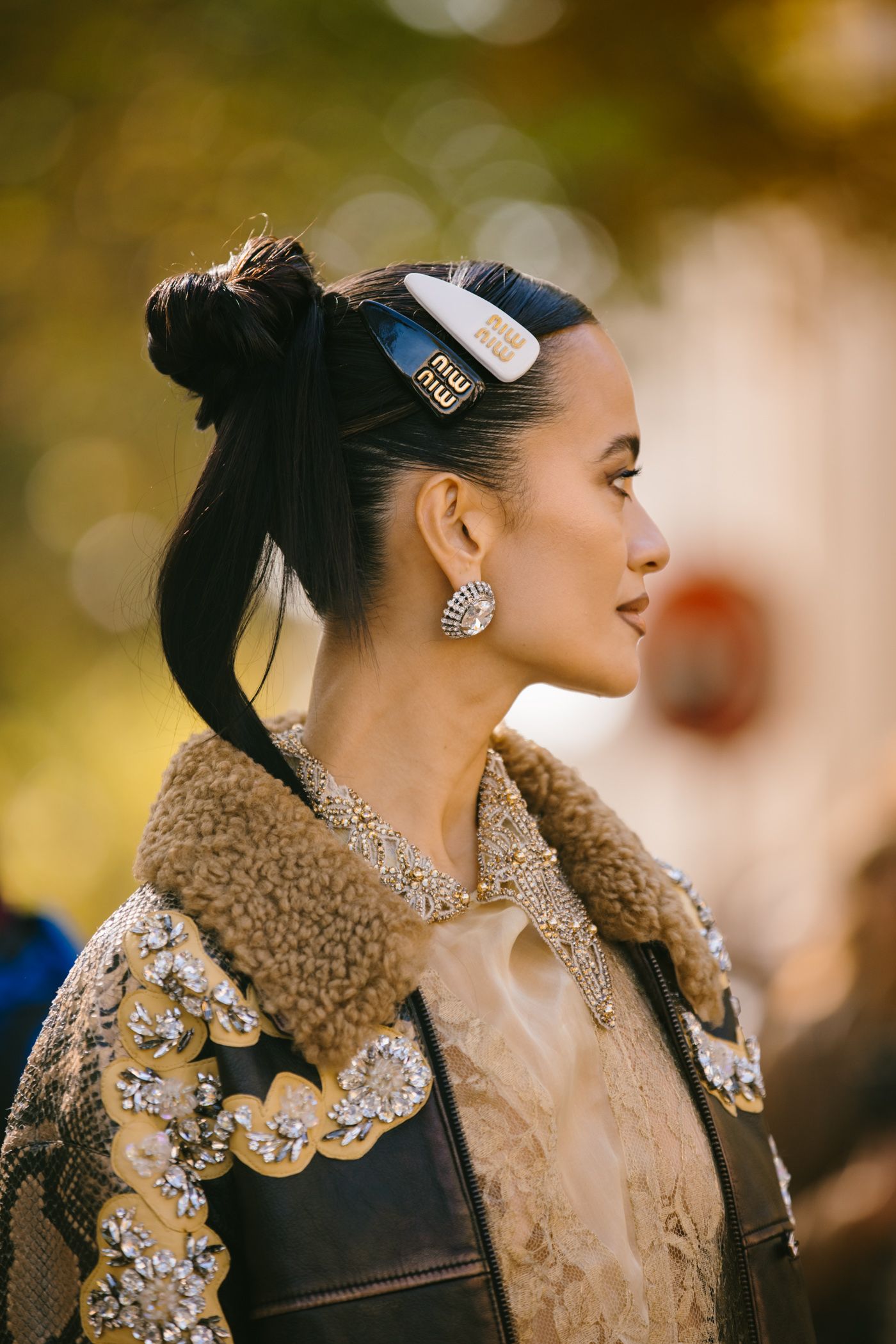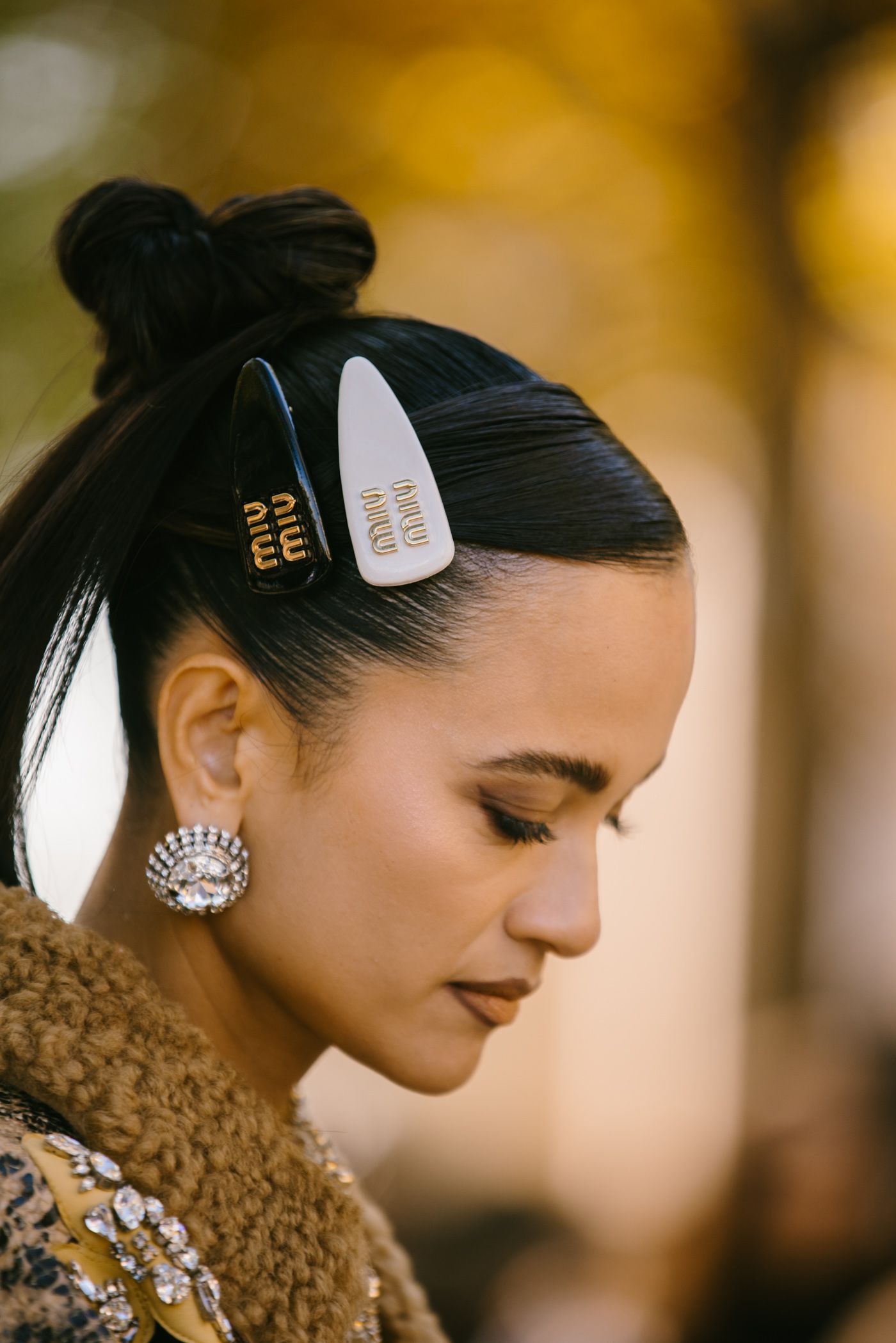 The best beauty looks and accessories from Paris Fashion Week Women's SS23 Spot on sleek hairdos and hair accessories along 90s basic beauty looks