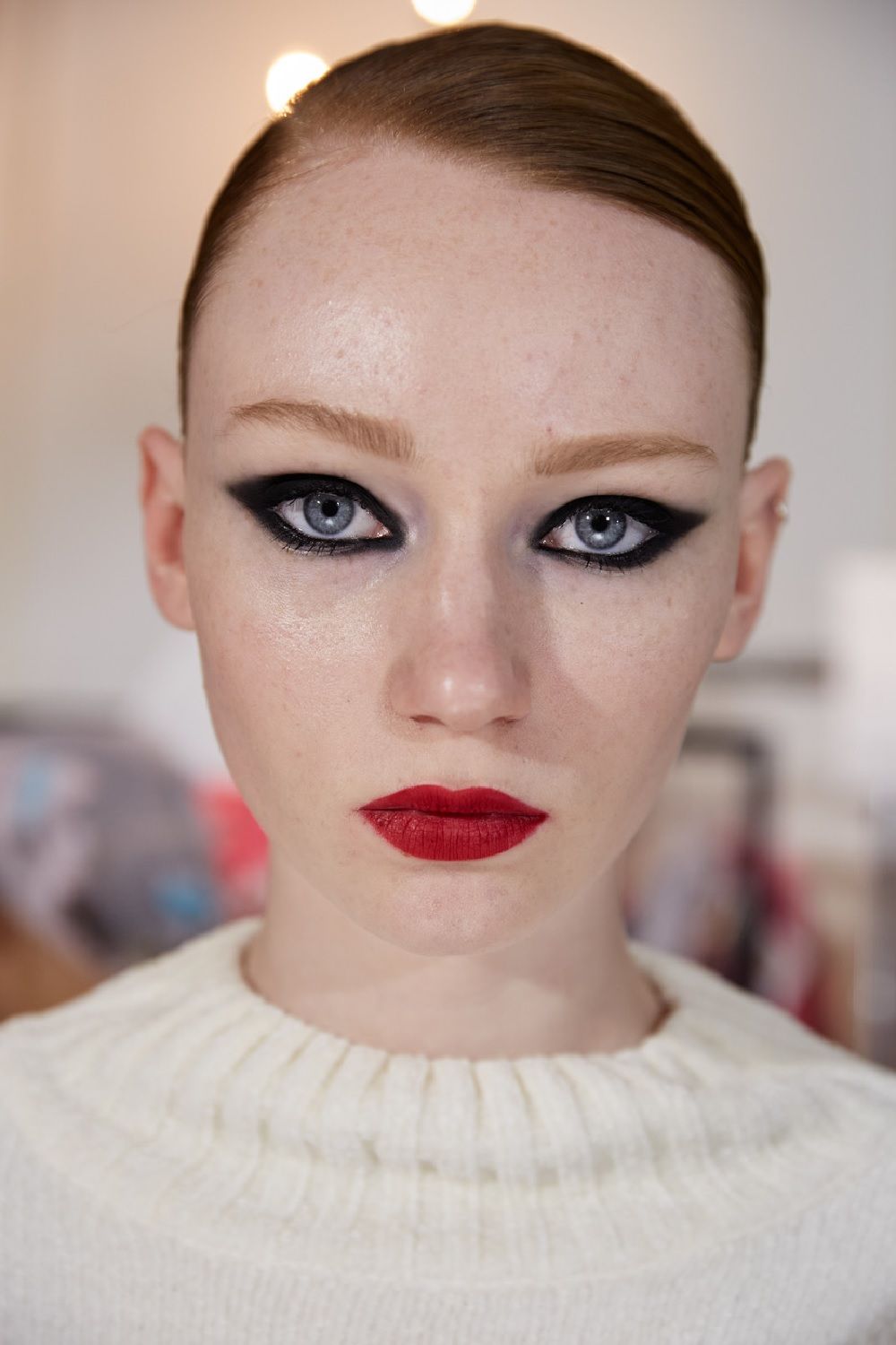 Ulyana Sergeenko omaggia il personaggio di Shirley MacLaine nel film What a way to go, che a sua volta era ispirato alla contessa Mona von Bismarck. Le acconciature, beehive anni ’60, impreziosite da enormi fiocchi e diademi luccicanti, ma anche il make-up, riproducono i look del film. Indispensabile è l’eyeliner, bianco o nero, per creare doll eyes dal grande effetto scenico. Sulle labbra si alternano rosso laccato e rosa antico.