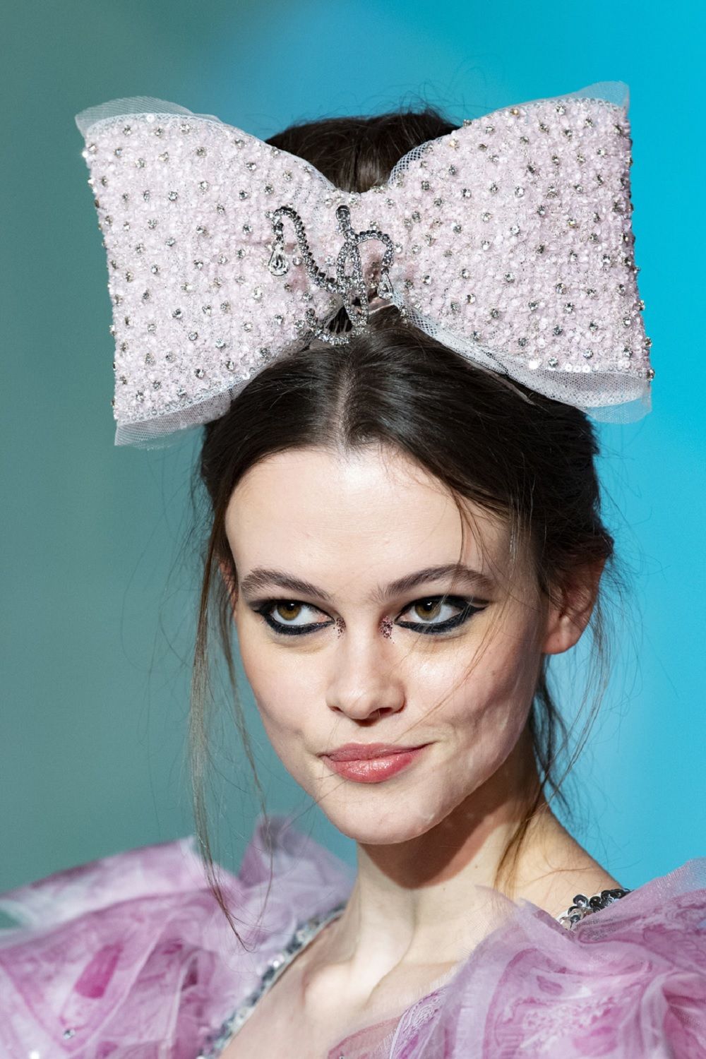 I beauty look della Paris Couture Week? Visi puliti e luminosi, enfatizzati da un hairstyle ultra piatto o naturale, reso speciale da accessori come maxi fiocchi e diademi. Da Chanel a Dior, da Givenchy a Iris Van Herpen il trend è un minimalismo sofisticato, ma c’è anche chi osa col colore. Maison Margiela porta in passerella labbra neon e headwear bizzarri fatti di verdure, mentre Schiaparelli evoca lo spirito surrealista della sua fondatrice, Elsa Schiaparelli, con gioielli scultorei usati come fossero ombretti e decorazioni per la pelle. Interessanti anche le reinterpretazioni di cat eye e beehive anni ’60 viste da Ulyana Sergeenko e Ralph & Russo.