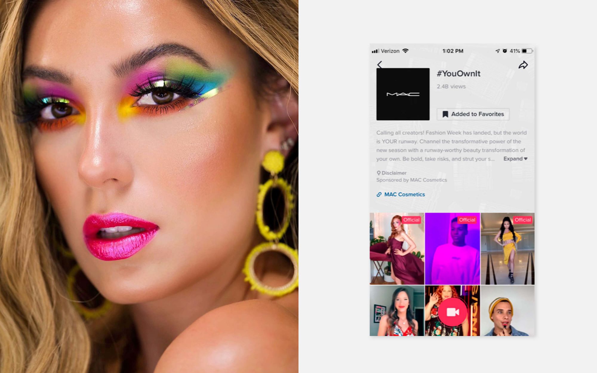 Il beauty non è nuovo a questo mondo, che fin da subito si è mostrato adatto a raccogliere l'eredità dei tutorial di make-up che spopolavano su YouTube. Niente di più dei cosiddetti user-generated contents (i contenuti elaborati “dal basso”), che però hanno attirato l’attenzione delle grandi aziende. Mac Cosmetics è stata fra le prime: in occasione della Fashion Week di New York SS20 ha lanciato su TikTok la #YouOwnIt challenge, che in 6 giorni ha generato quasi 700 mila video e ottenuto un miliardo e mezzo di views. Prima di lei, la Marc Anthony True Professional aveva promosso un prodotto per ricci perfetti con l’hashtag #strictlycurls (rilevando il 60% d’incremento nelle vendite).