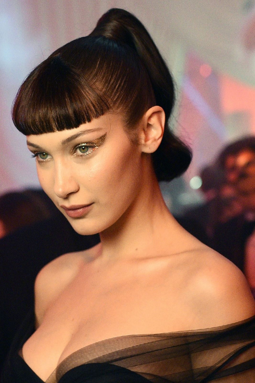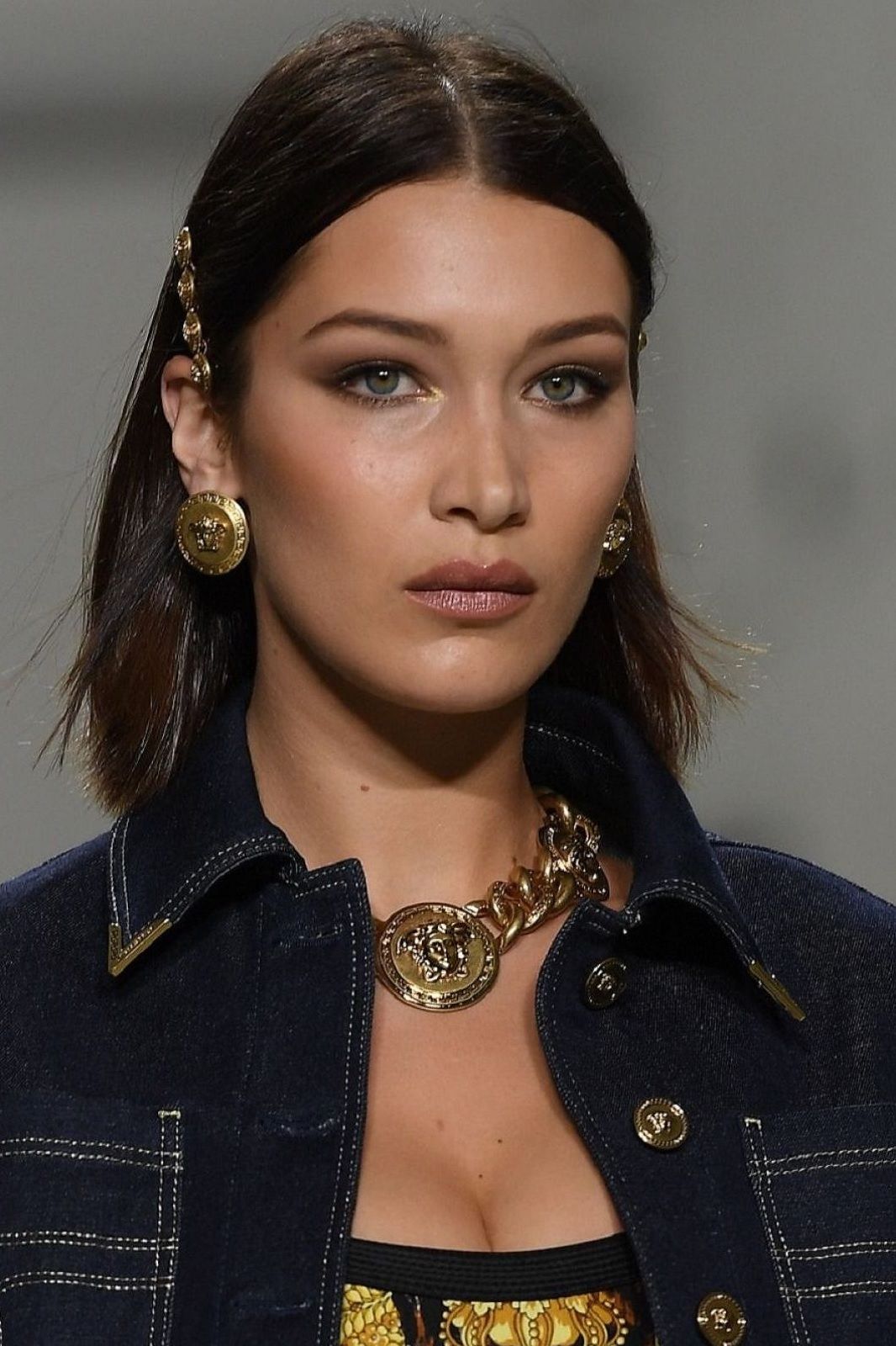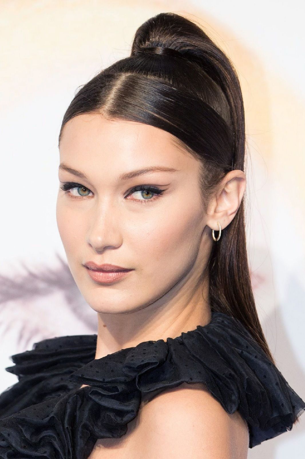 Con un viso come il suo, che, per un noto chirurgo plastico londinese, si avvicina per il 94,35% alle misure perfette della sezione aurea, risultare impeccabile è fin troppo facile. Ignorando i rumours riguardo ai presunti ritocchi di chirurgia plastica ai quali si sarebbe sottoposta, Bella ha imparato a valorizzare al meglio i suoi lineamenti. Da sempre il suo vero marchio di fabbrica sono i cat-eyes. La sorella di Gigi Hadid utilizza l’eyeliner per mettere in risalto lo sguardo, delineando un tratto sottile e preciso che si inspessisce e si allunga leggermente verso l’alto nella più esterna dell’occhio. Per gli eventi speciali, questa linea grafica può essere colorata, glitter, come per il ballo annuale del 2018 di Christian Dior, o può essere arricchita da un ombretto smokey nei toni del marrone e del prugna. Immancabile un tocco di mascara nero per rendere le ciglia voluminose e sensuali, così come un velo di gloss o, di tanto in tanto, di rossetto rosso.