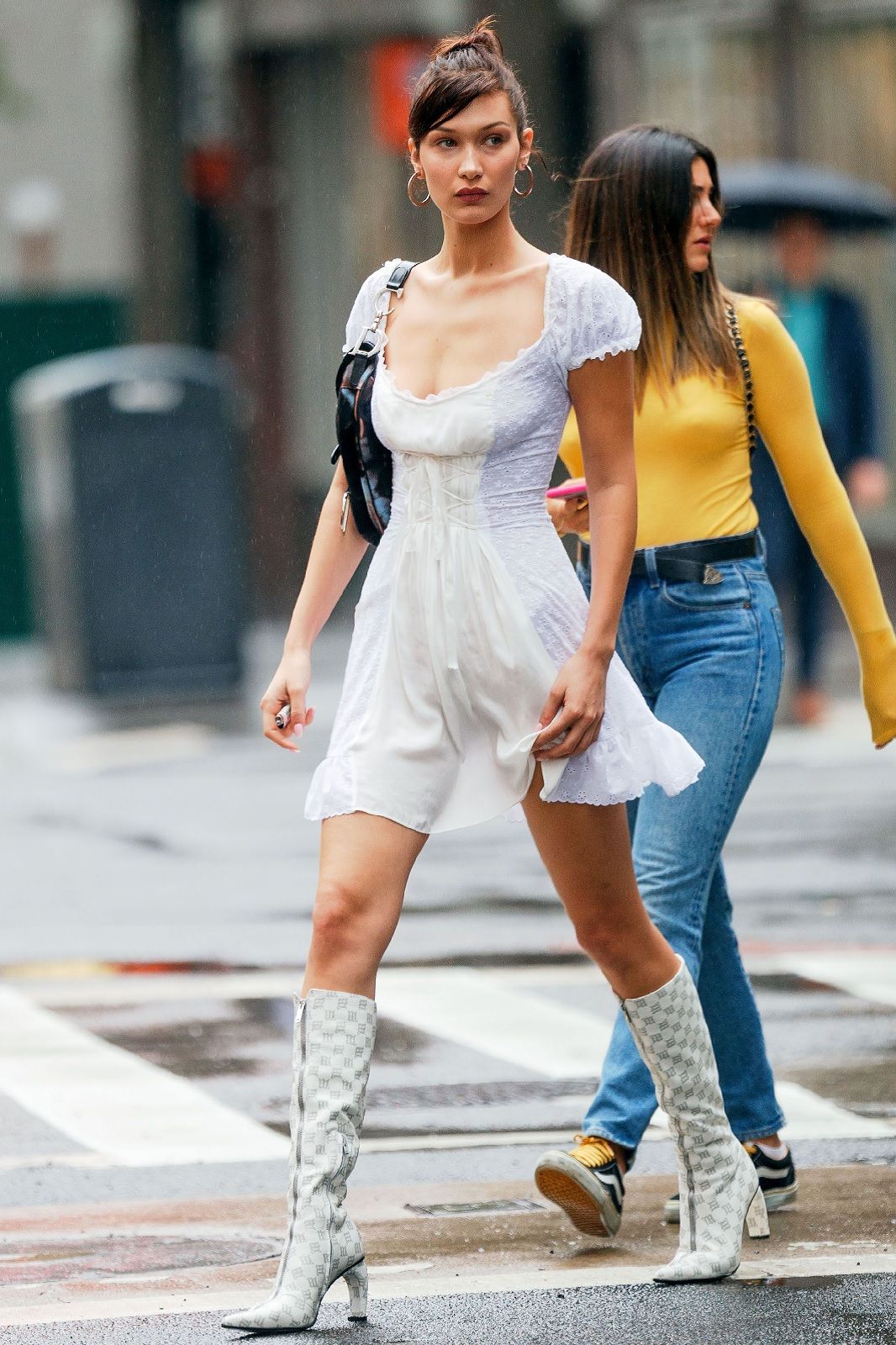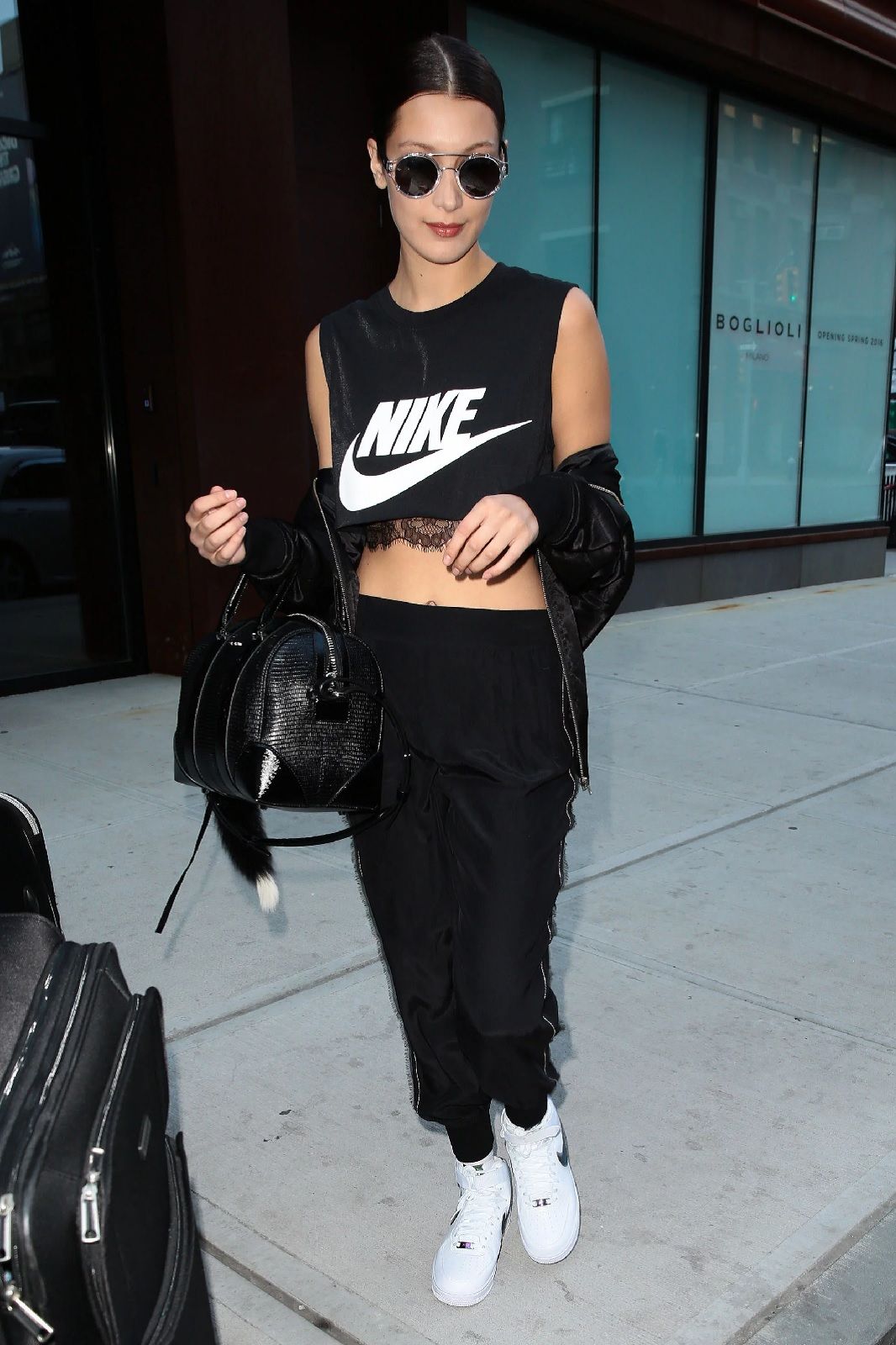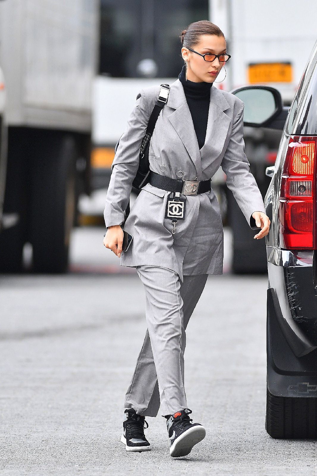 In passerella, Bella passa con disinvoltura dal look tomboy alla femme fatale, scambiando i completi maschili con mini dress aderenti, biker shorts con camicie trasparenti e pantaloni a vita con elegantissimi abiti da sera. La stessa versatilità caratterizza anche il suo stile quotidiano, anche se, in questo caso, domina un approccio streetwise che, negli anni, è diventato sempre più ricercato e influenzato dagli anni ’90. A diciotto anni era, come testimoniano gli scatti delle vecchie edizioni del Coachella, una tipica SoCal girls in shorts di denim e felpe, top boho e t-shirt basic. Crescendo ha attraversato, come ogni teenager, una fase dark nella quale vestiva sempre di nero, mentre nei primi anni da modella i suoi airport look erano un mix casual-sportivo di sneaker, leggings, tute adidas, felpe col cappuccio e joggers. Ora che è all’apice del successo la Hadid ha imparato ad osare con outfits sofisticati, che rispecchiano i suoi diversi mood ed enfatizzato le sue curve perfette. Bella alterna bodycon dress e completi mashili oversized, micro cardigan e gilet workwear, bustier e giacche in pile, ma anche grandi brand e giovani designer come Charlotte Knowles, Bode, My Mum Made e Juliet Johnstone.
