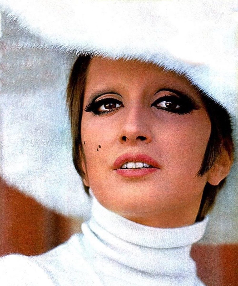 Quando Mina apparve sullo schermo senza sopracciglia il risultato fu epocale e tutte la imitarono: da mia madre che era una semplice teenager della provincia siciliana alle modelle di Vogue e di Fendi, da David Bowie a Sophia Loren nel film C’era una volta, da Grace Jones a Elizabeth Arden.