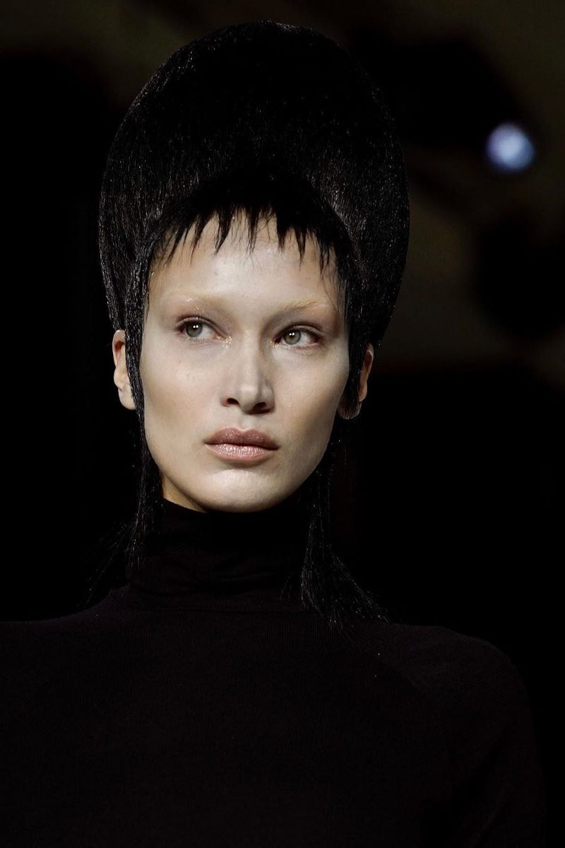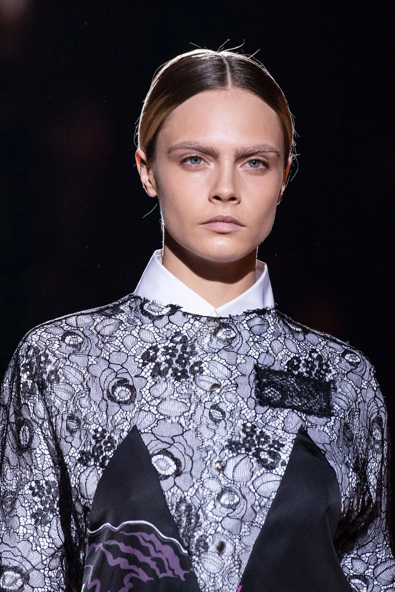 La bellezza audace, insolita, sperimentale e persino grottesca ha sempre trovato largo spazio sulle passerelle, come anche le bleached brows. È quasi impossibile non ricordare Bella Hadid in versione aliena chic per Haider Ackermann, con parrucca a uovo nera, pelle bianchissima e archi invisibili, o sua sorella Gigi nella sfilata FW19 di Prada. Durante lo show SS19 Alexander Wang le ha volute su tutte le 42 modelle, comprese Irina Shayk e Kendall Jenner che le aveva già sperimentate per la Fall 2016 di Marc Jacobs e per la stagione FW14 di Givenchy. Tra gli ultimi ad optare questo particolare beauty trend c’è stato Valentino. Per la collezione FW19 Pat McGrath ha scelto brows invisibili, lasciando come protagoniste grandi macchie di ombretto viola, rosa e verde acqua.