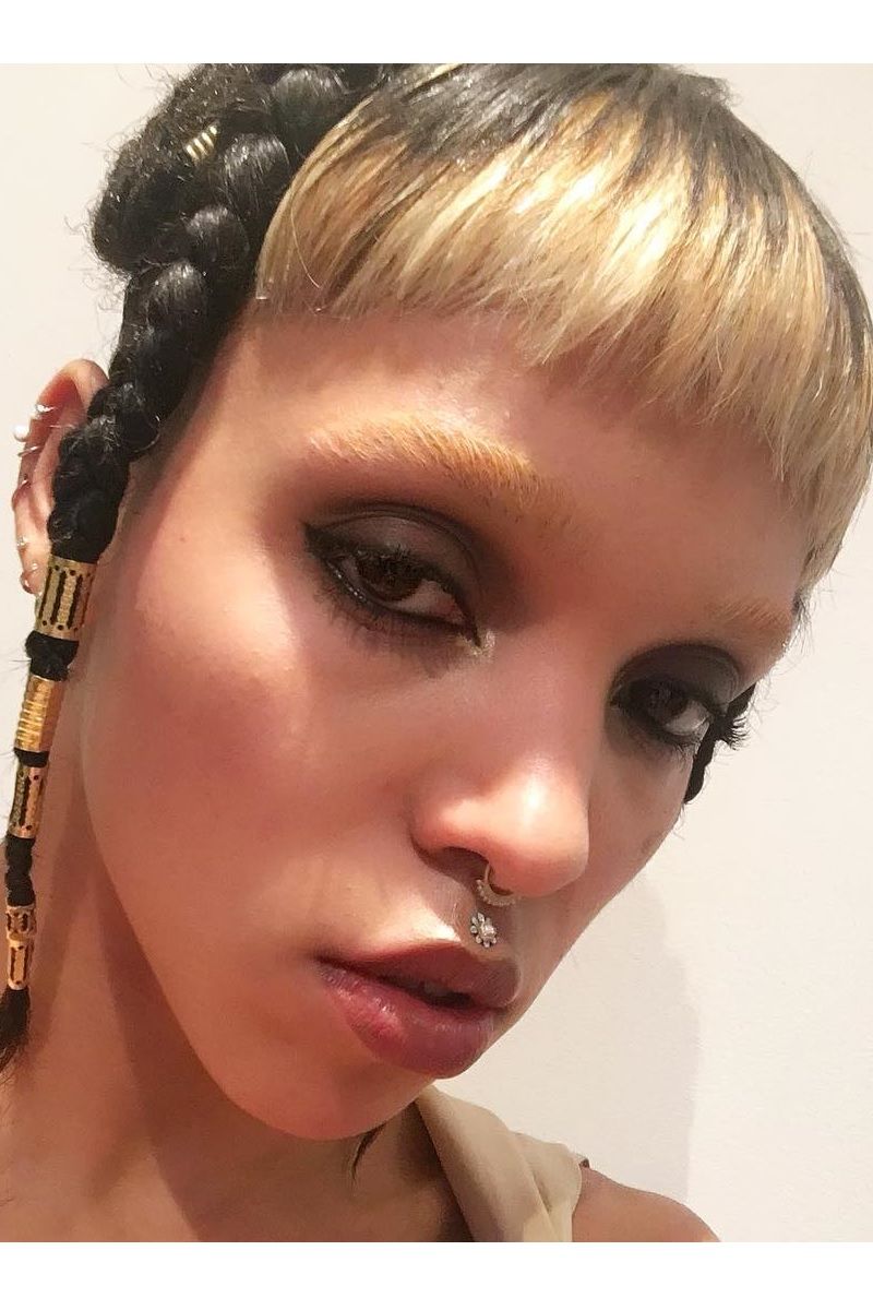 Un trend non è affermato se non c’è una schiera di celebrities e influencers che lo sfoggiano. Oltre a Kim Kardashian, una delle ultime star americane a osare con le bleached brows è stata Katy Perry che ha mostrato il suo nuovo look nella puntata di American Idol dedicata all’universo Disney nella quale si è travestita da Campanellino. Questo, però, non è il primo esperimenti della cantante col le sopracciglia invisibili, scelte spesso anche da Lady Gaga, Kristen Stewart e FKA twigs. Complice il lockdown che ha costretto molte di noi a provare la tinta DIY o esigenze di set e passerella, alla schiera di fan del beauty trend più audace del 2021 si sono recentemente aggiunte anche Hailey Baldwin, Victoria Pedretti e la make-up artist londinese Isamaya Ffrench.