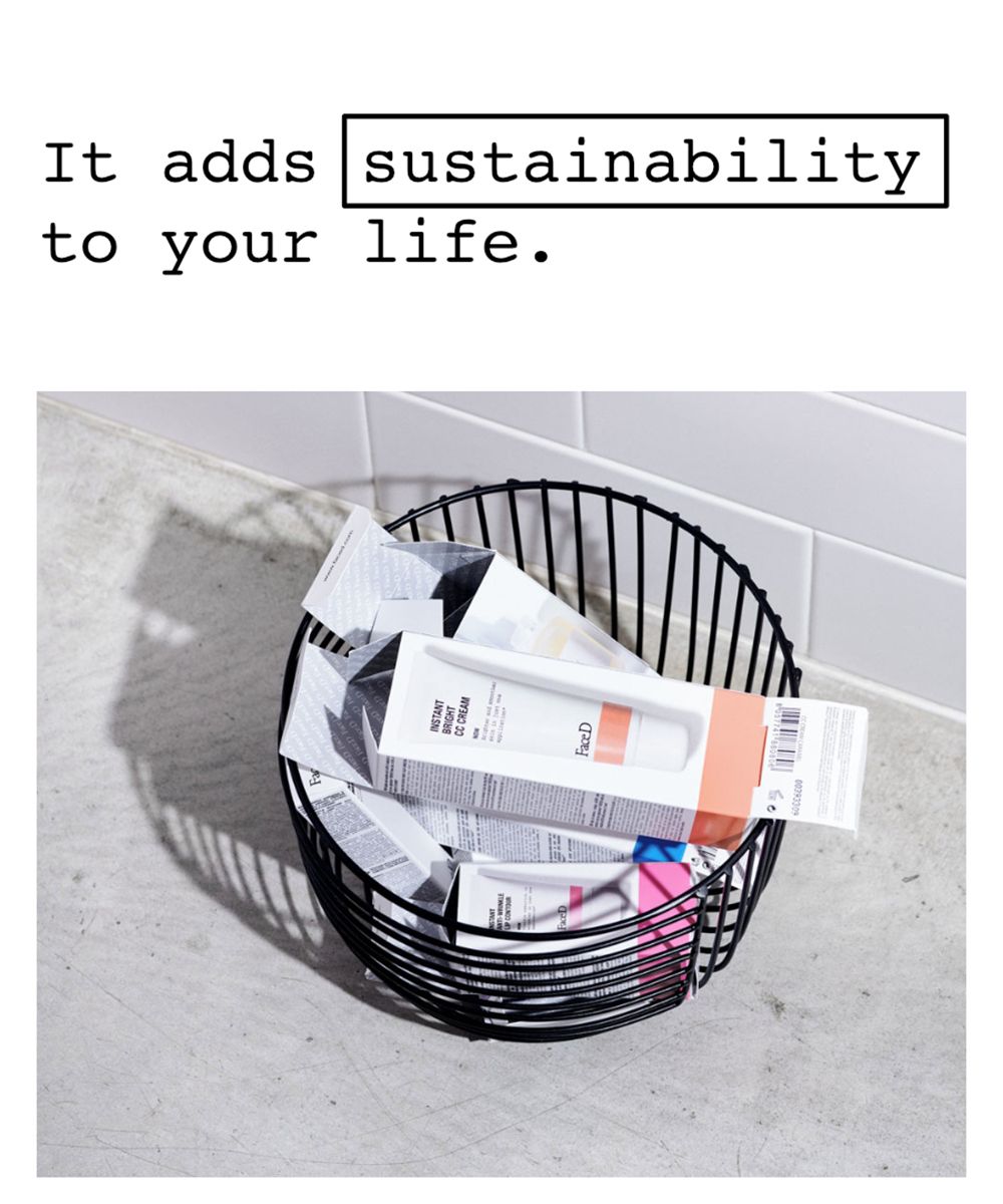 Il famoso brand FaceD, da poco sbarcato anche in Italia, ha creato l’opzione pack free sul proprio e-commerce: oltre a permettere di risparmiare 1 euro, vi eviterà di dover buttare la confezione e il foglietto delle istruzioni.