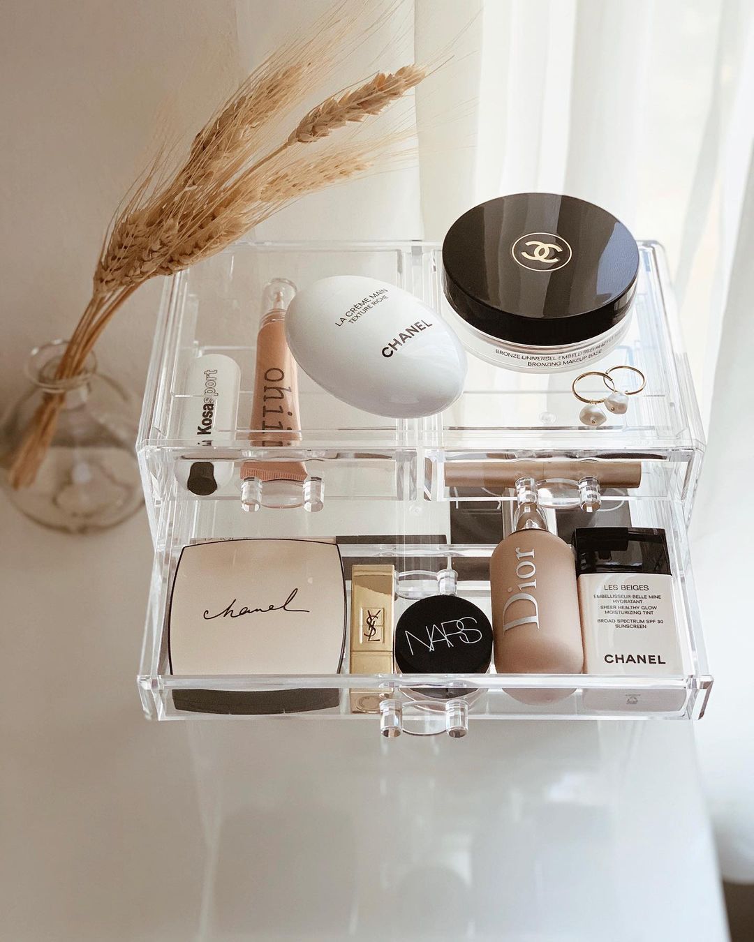 Come conservare, dunque, i nostri cosmetici? Meglio tenerli lontano da fonti di luce e calore, e possibilmente non toccarli con le dita. Per farlo, possiamo o scegliere di utilizzare una spatolina oppure optare per prodotti con packaging airless, ovvero quelli che non consentono al prodotto di venire a contatto con gli agenti esterni, come i flaconcini con erogazione a pompa. Inoltre, è importante non condividere con nessun altro i prodotti cosmetici per evitare contaminazioni con una flora batterica diversa dalla nostra. Può essere utile anche riporre i cosmetici in frigorifero, o addirittura acquistare un apposito mini fridge. Attenzione però, la conservazione in frigorifero non è indicata per i cosmetici a lunga scadenza, perché sono già bilanciati con principi attivi di conservazione. Per il piacere sensoriale possiamo tenere in frigorifero quei cosmetici rinfrescanti o quelli più facilmente deteriorabili, con tempi di conservazione inferiori a un mese.