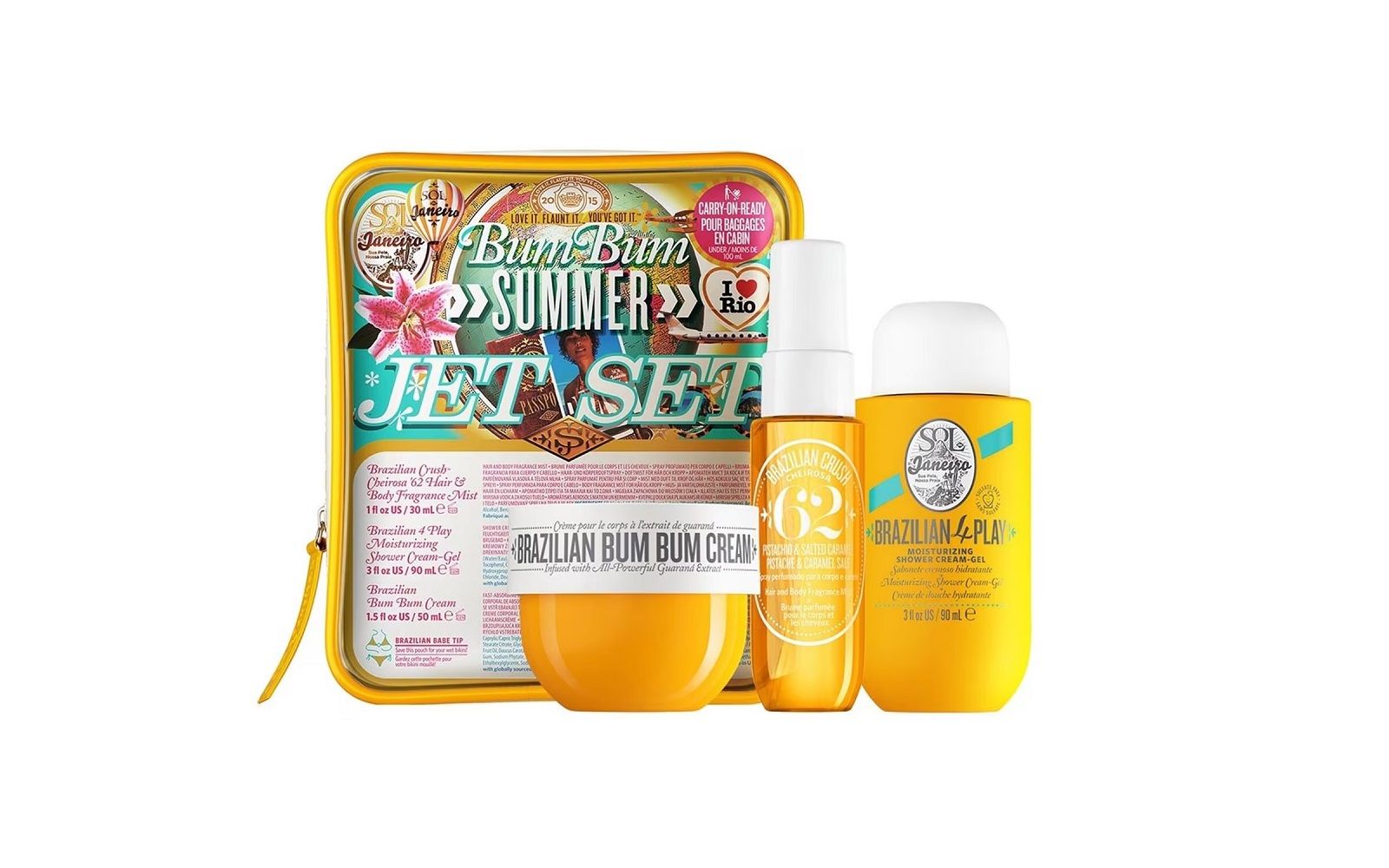 Il set di Sol de Janeiro si distingue per le note inebrianti di pistacchio e caramello salato. Bastano tre prodotti che lavorano in sinergia fra loro per una pelle morbida e profumatissima: la crema per il corpo Bum Bum, il gel doccia Brazilian 4 Play e lo spray profumato Brazilian Crush. Tutti racchiusi in una bag jelly da portare anche in spiaggia.