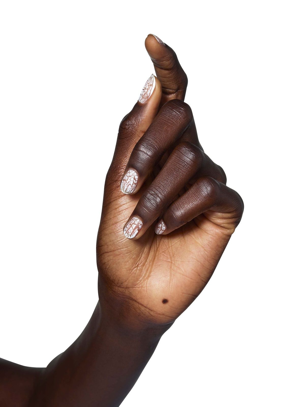 Off-White™ Beauty pensa anche alla nostra manicure con gli smalti Color Matter. La categoria include un Top Coat, uno smalto trasparente con estratto di cristalli di ametista, e quattro smalti di lunga durata, Flashback (fucsia traslucido), Digital (blu elettrico opaco), Cement (indaco opaco), Seismic (nero opaco). Infine c’è Decode che, grazie ad un solvente ad asciugatura rapida, fa sì che lo smalto bianco si screpoli mentre si asciuga per una finitura crackled. Chi cerca un look più particolare, ma facile da realizzare, può usare gli adesivi per unghie con disegni grafici di Off-White™.