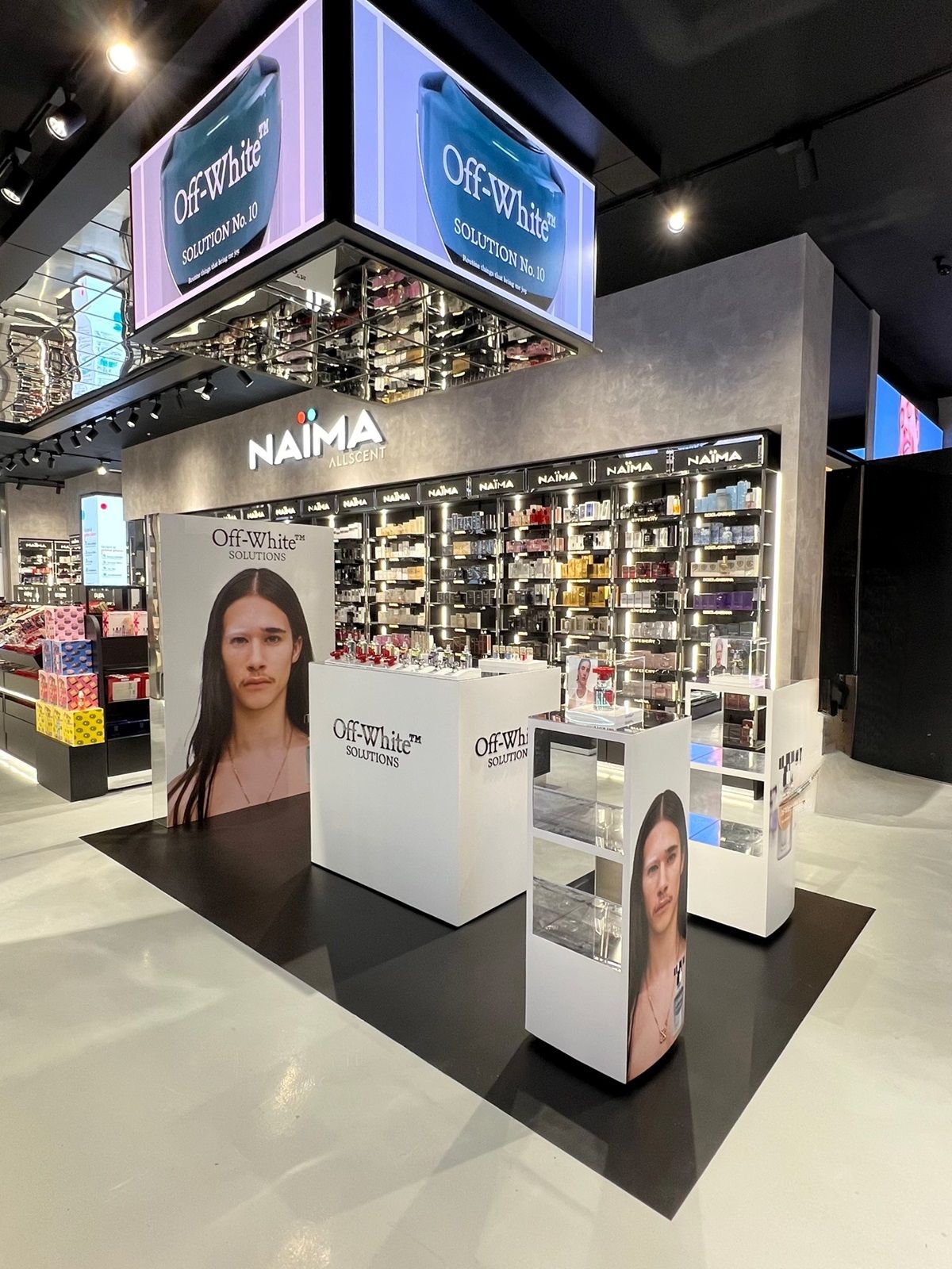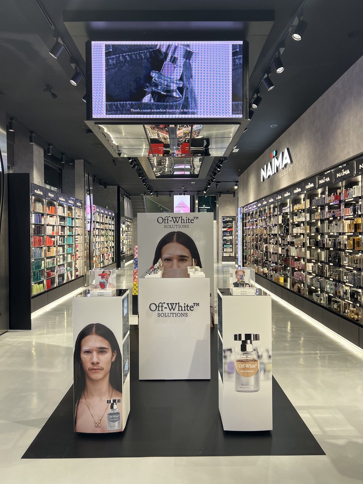 Off-White™ Beauty arriva da Naïma AllScent. Dal 26 febbraio al 10 marzo la nuova area podio del prestigioso flagship store Naïma AllScent di Milano, situato in Corso Buenos Aires, cambierà look e verrà personalizzata per presentare il lancio di Off-White™ Beauty, una collezione di fragranze e make-up unica, genderless e intergenerazionale, che nel pomeriggio del 1 marzo verrà celebrata anche con un cocktail event in-store. Si tratta di un’occasione speciale per scoprire le fragranze, i prodotti per il viso e per il corpo, ma anche per interagire con make-up artist, approfittare del servizio gratuito di serigrafia, assaggiare qualche stuzzichino, godere della musica e di tanto altro.