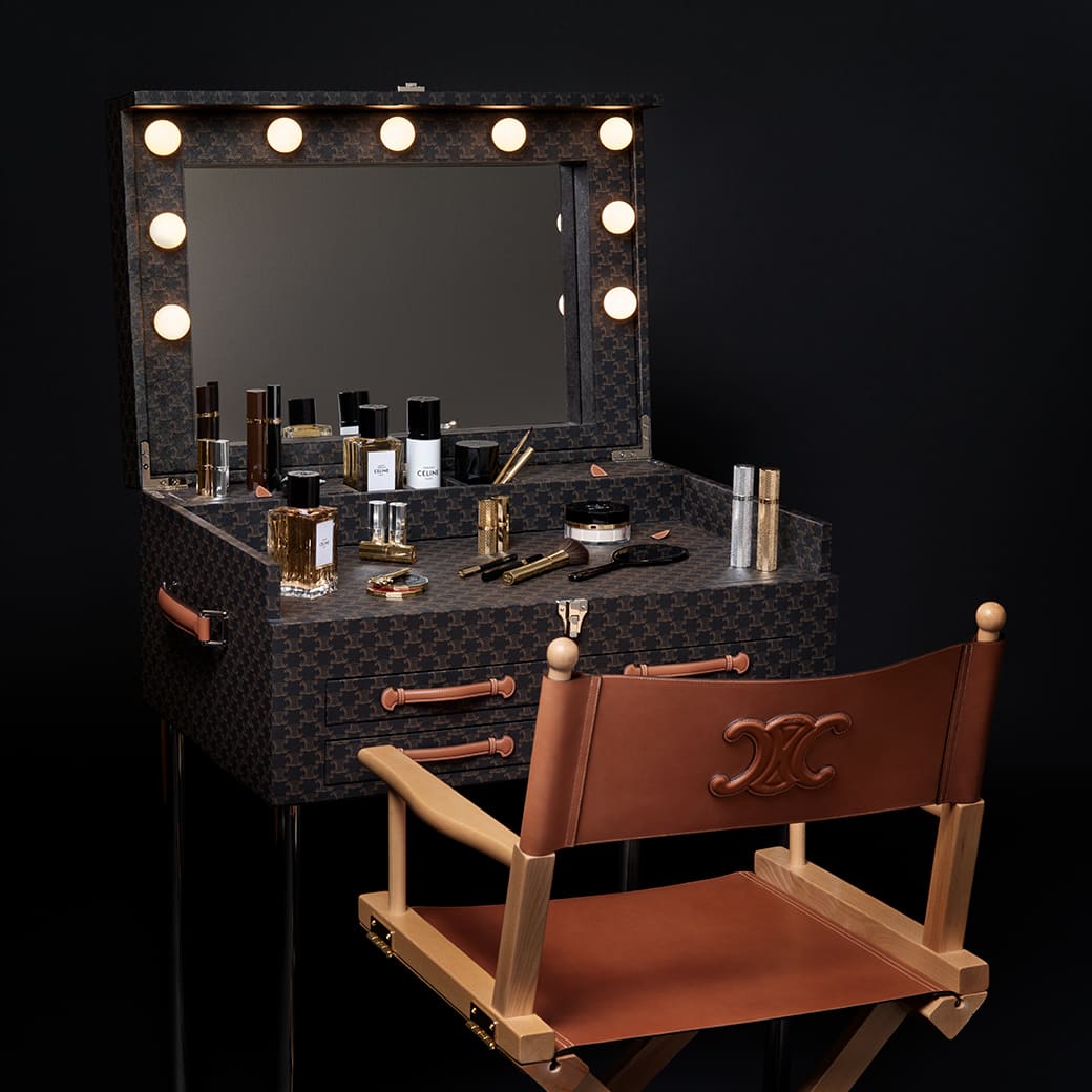 Il rossetto è solo l'inizio, l'inaugurazione ufficiale del rituale di bellezza Celine di Hedi Slimane, che vedrà la luce nella sua completezza nell'autunno del 2024. Ad arricchire il quadro e l'esperienza di lusso di alta gamma ci pensa una make-up station made to order, una toeletta monogrammata con sedia in cui riporre tutti i prodotti e in cui dedicarsi alla propria routine sentendosi delle dive della old Hollywood.