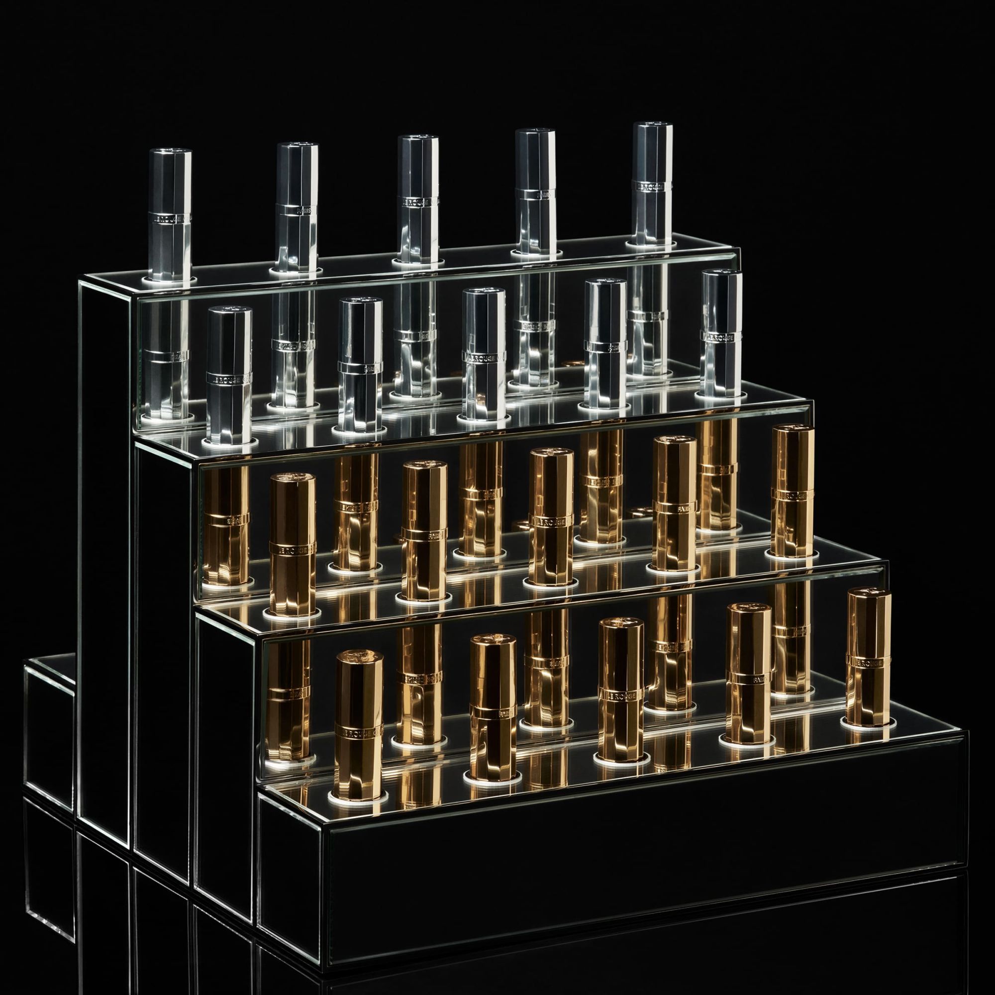 I nuovi codici istituzionali di Celine si cristallizzano nei colori e nel packaging di rossetti, blush, mascara, pennelli, specchi da borsetta, eye-liner, smalti e ciprie in polvere libera, che sono preziosi, nelle tinte oro, argento e nero e anche in pelle di coccodrillo. Il primo prodotto disponibile è il rossetto Rouge Triomphe, dal finish satinato, classico ed essenziale, racchiuso in un astuccio che porta inciso il monogramma della maison. È disponibile a Celine Saint-Honoré, Le Bon Marché e Harrods a partire dal 30 agosto, e sullo store online da metà ottobre.