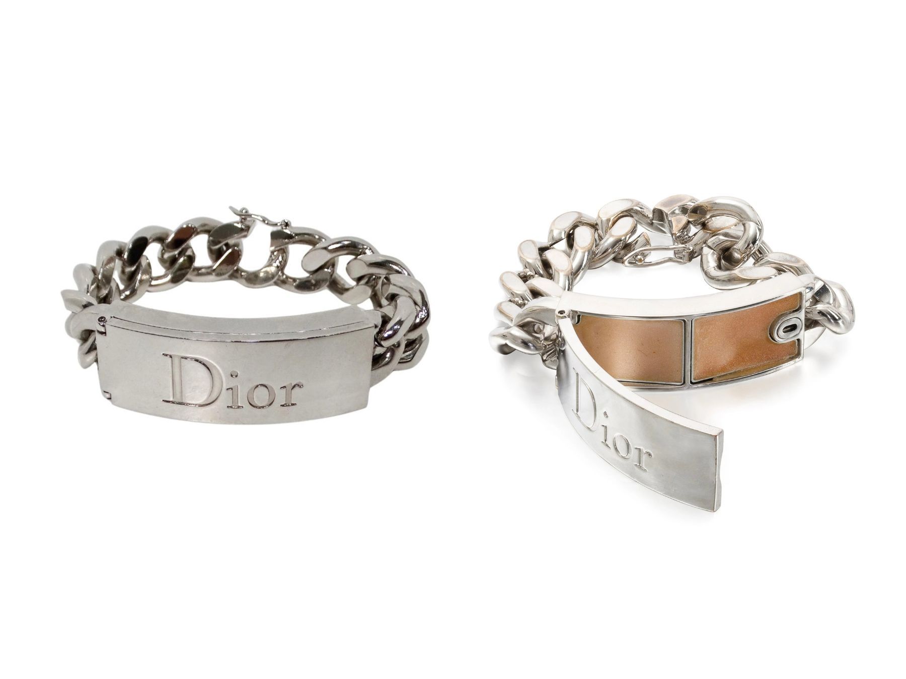 Forse il più iconico di tutti, l’OG dei gioielli beauty: il Dior Lip Gloss Duo Bracelet. Un bracciale rigido, argentato, con due lipgloss incastonati. Uscito nel 2006, l’idea era di portarlo al polso e con nonchalance darsi un ritocco senza nemmeno aprire la borsa. Il sogno di ogni multitasking queen.